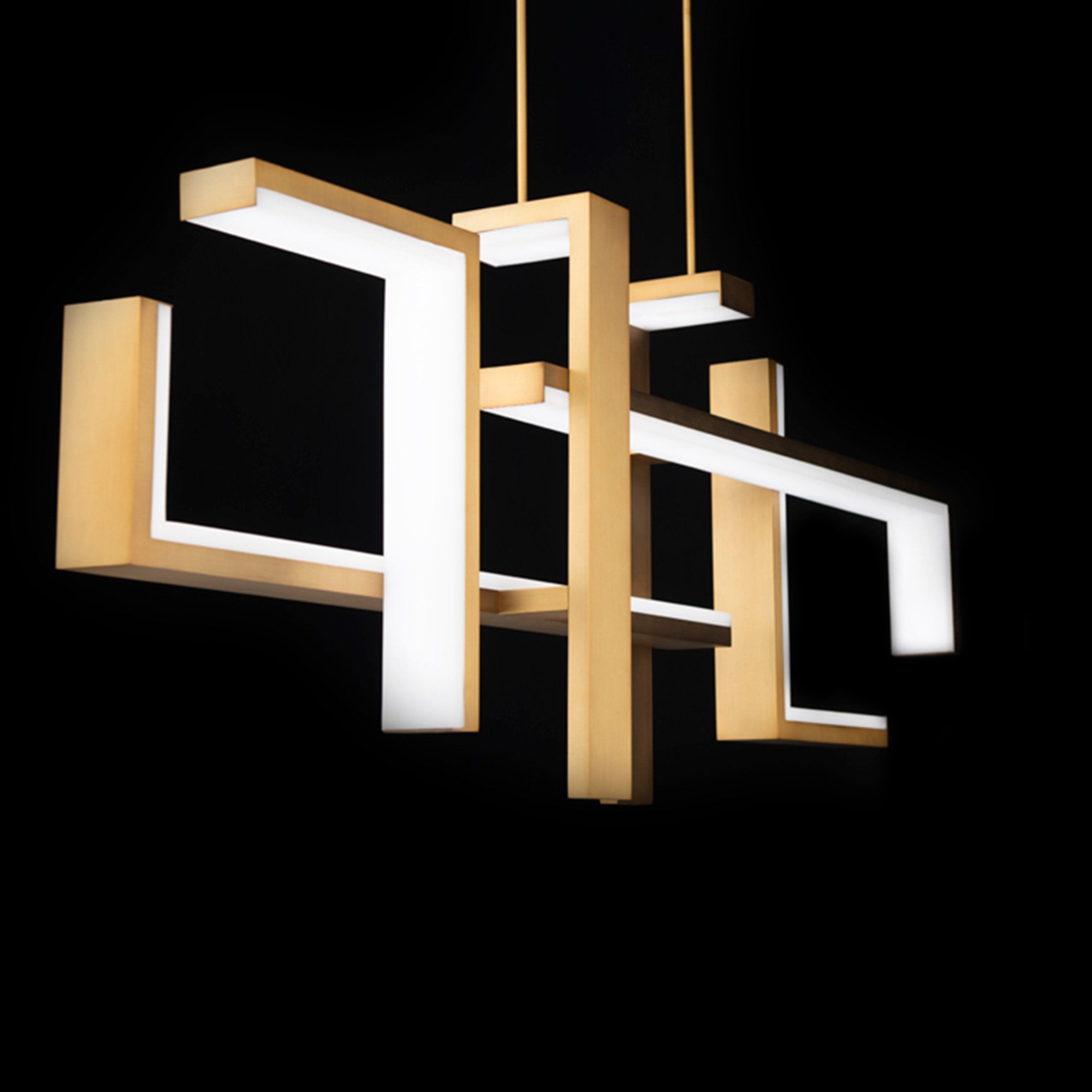 Like star-crossed lovers never to meet, parallels of finely-finished lines and light create the intriguing display. Beautiful in aged brass or black finishes.