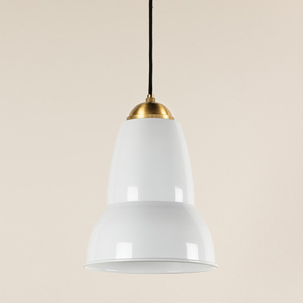 The Jamila Pendant Light from Mitzi offers a nod to country farmhouse style with an elegant upgrade that suits modern spaces. Light and airy, this fixture blends a shapely, glossy white bell shade with a petite aged brass metal holder to direct focus on tables, décor ensembles, and surrounding collections. This pendant features intricate knurling on its holder cap, expanding its intricate detail.
