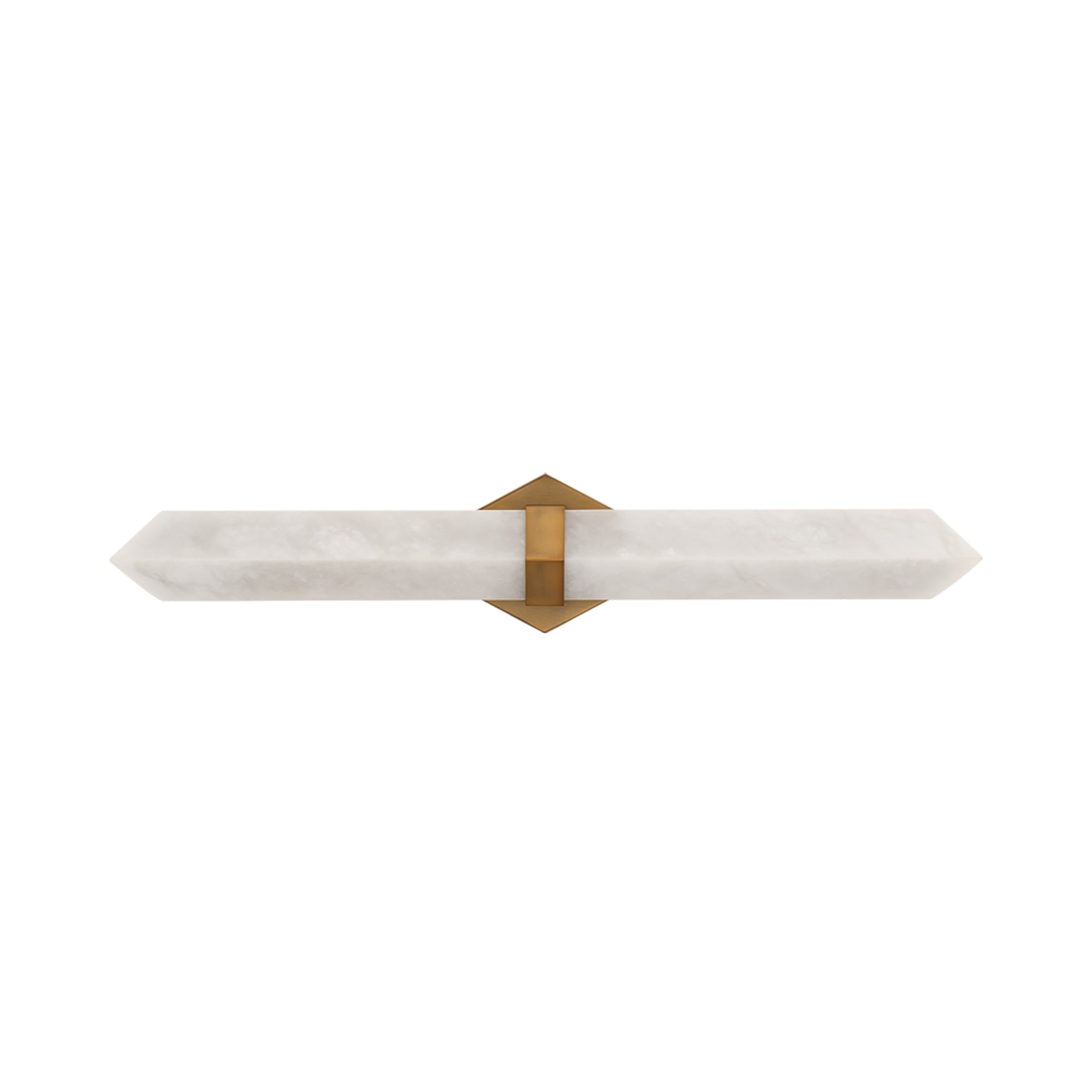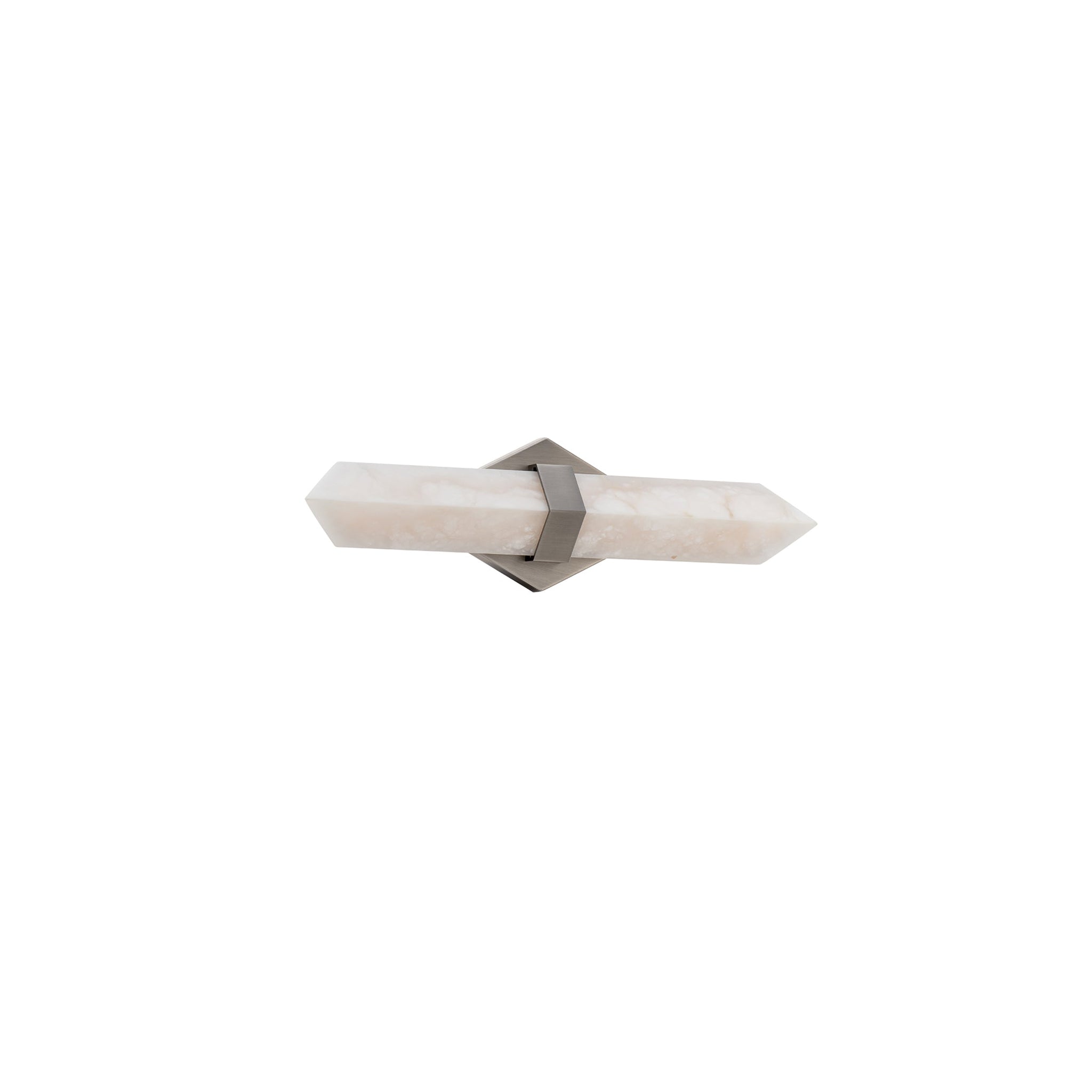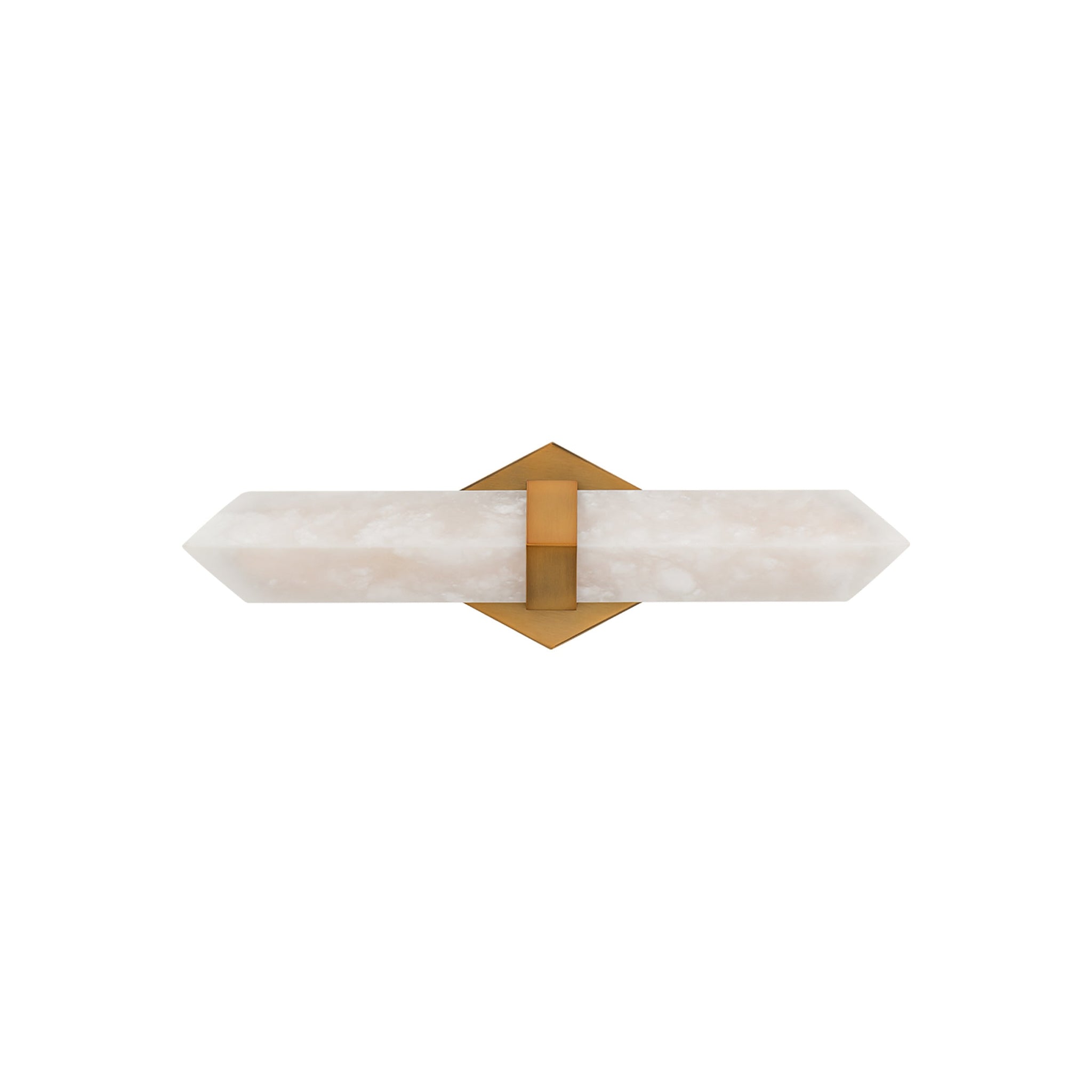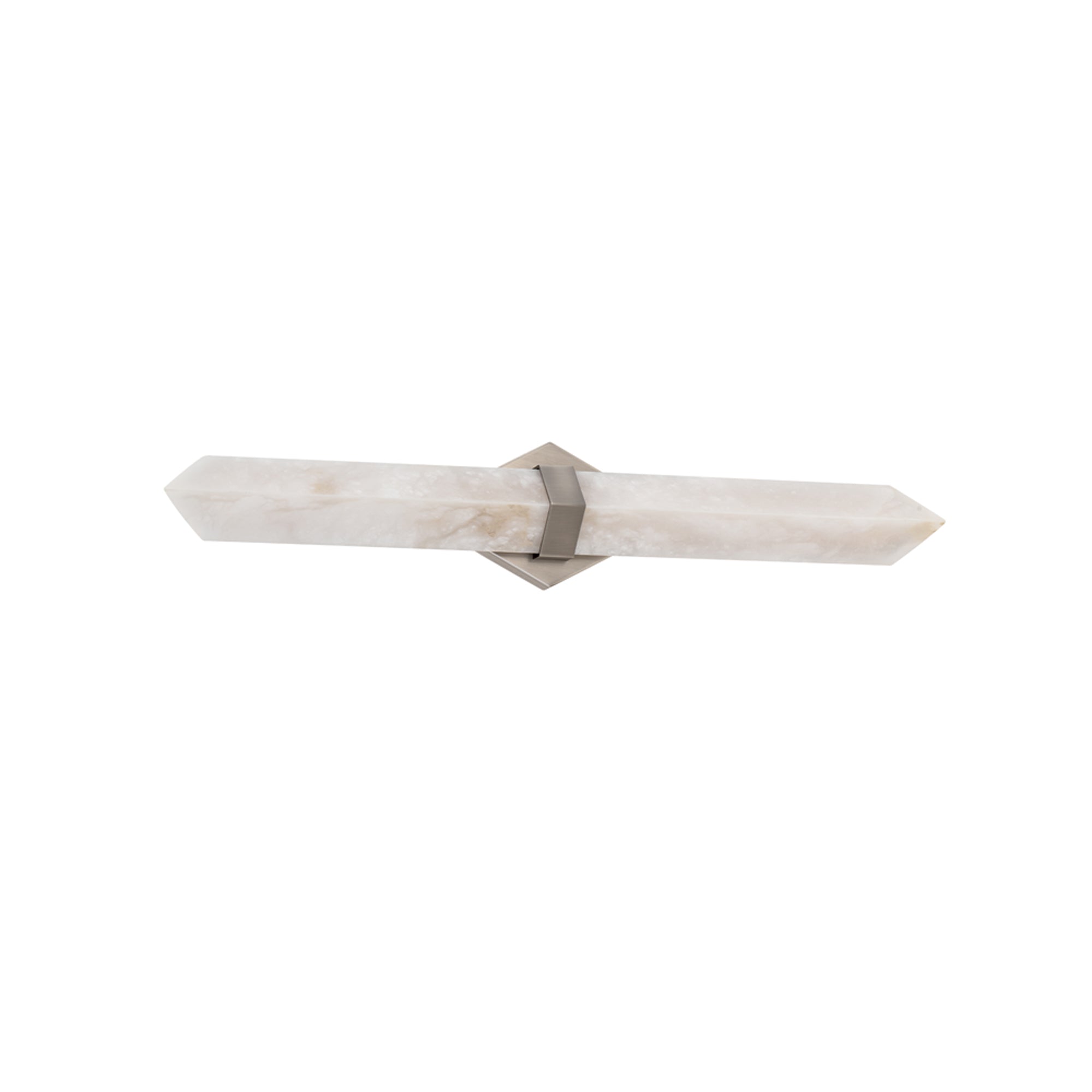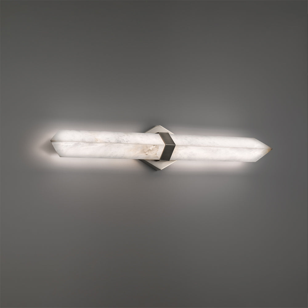 Precision highlights the strong, clean lines of the Javelin LED Bath Vanity Light from Modern Forms. A striking arrow of alabaster is illuminated from behind, creating a warm, inviting glow at your vanity. Natural veining and character enhance the piece, while a metal collar and diamond wall plate create a fresh, refined look and feel.