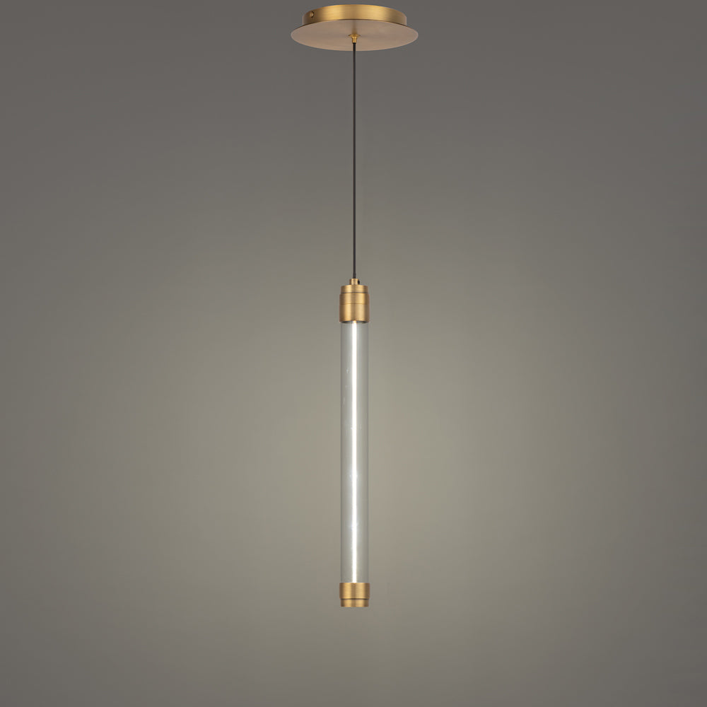 The tasteful appeal of slender silhouetting is on full display with the Jedi LED Mini Pendant Light from dweLED, playing a low-profile role with sleek sophistication. A glistening cylinder glass diffuser accented on both ends with metal caps delivers an extraordinary blend of low-key beauty and striking artistry. This energy-efficient pendant is well-suited to nooks and compact reading spaces.