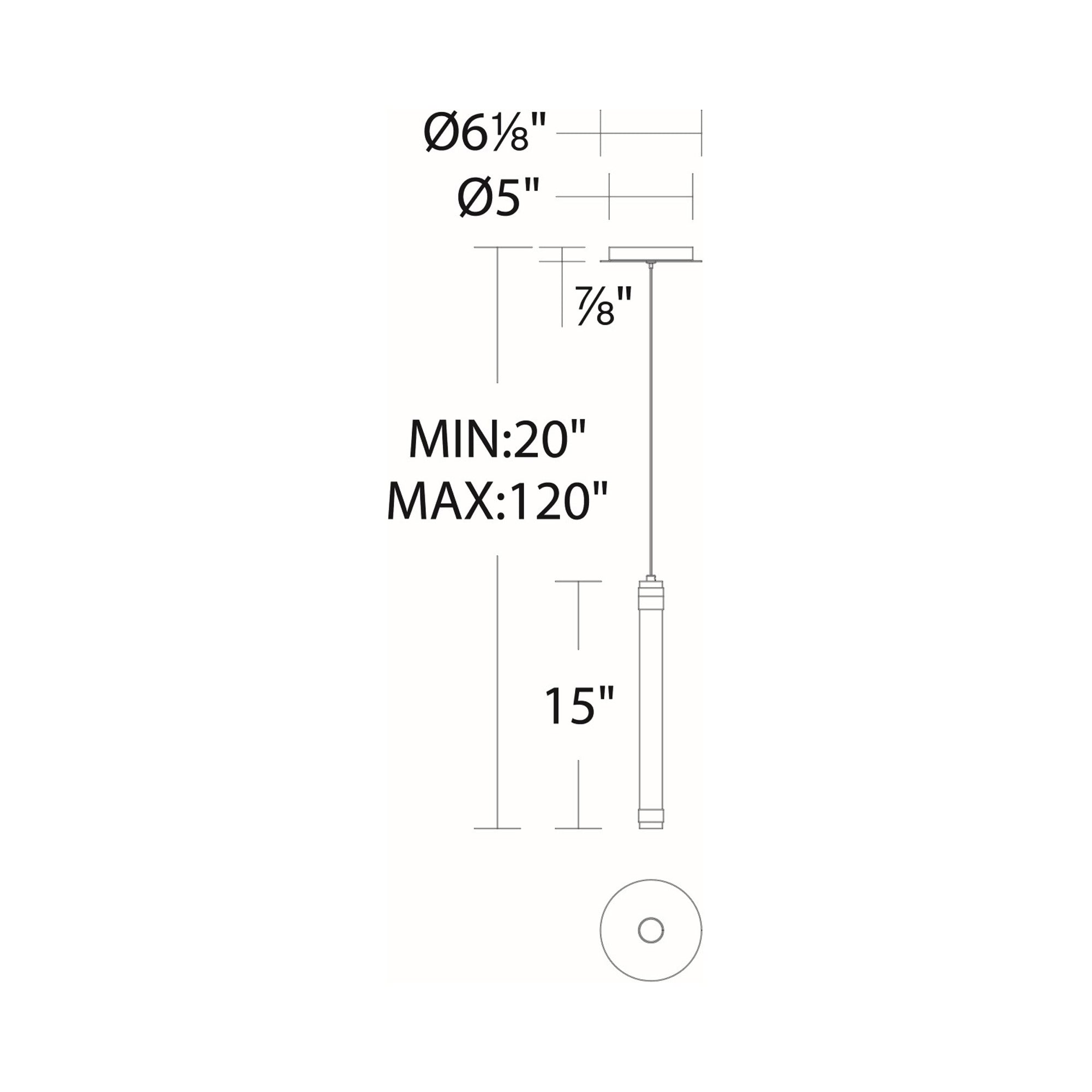 - 15-Inch: 6.13"D X 15"H; 120" max height