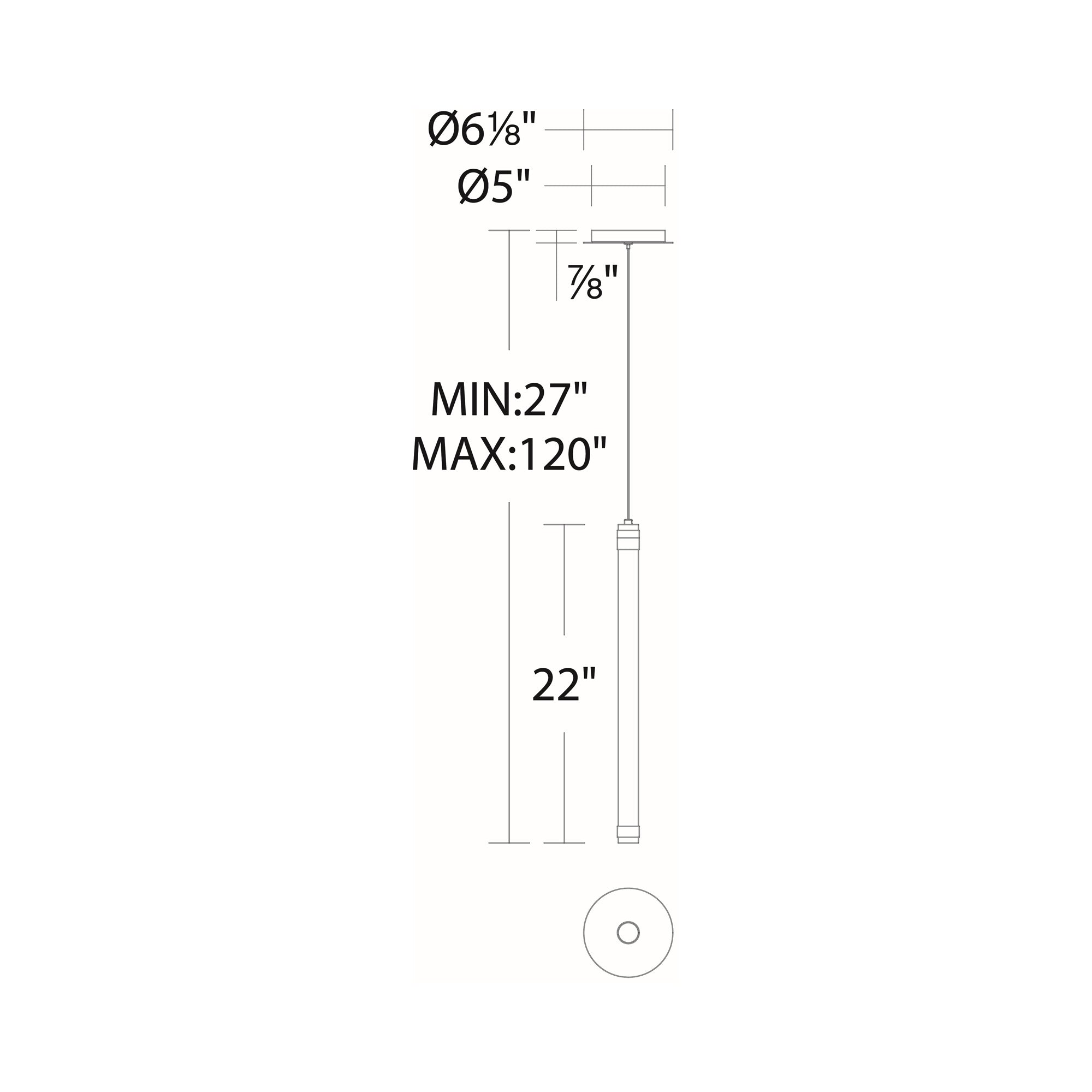 - 22-Inch: 6.13"D X 22"H; 120" max height