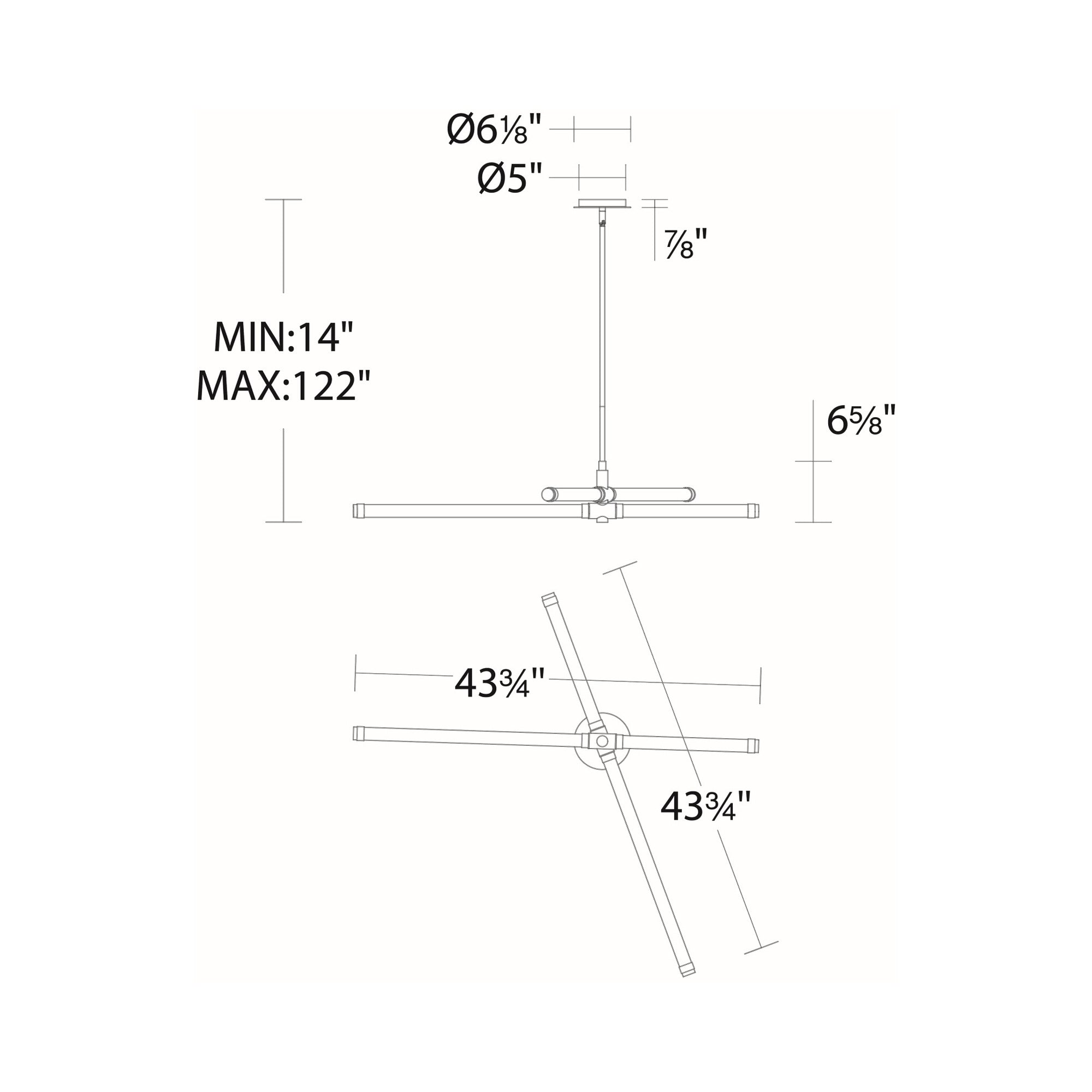 - 44-Inch: 44.75"D X 6.63"H; 122" max height