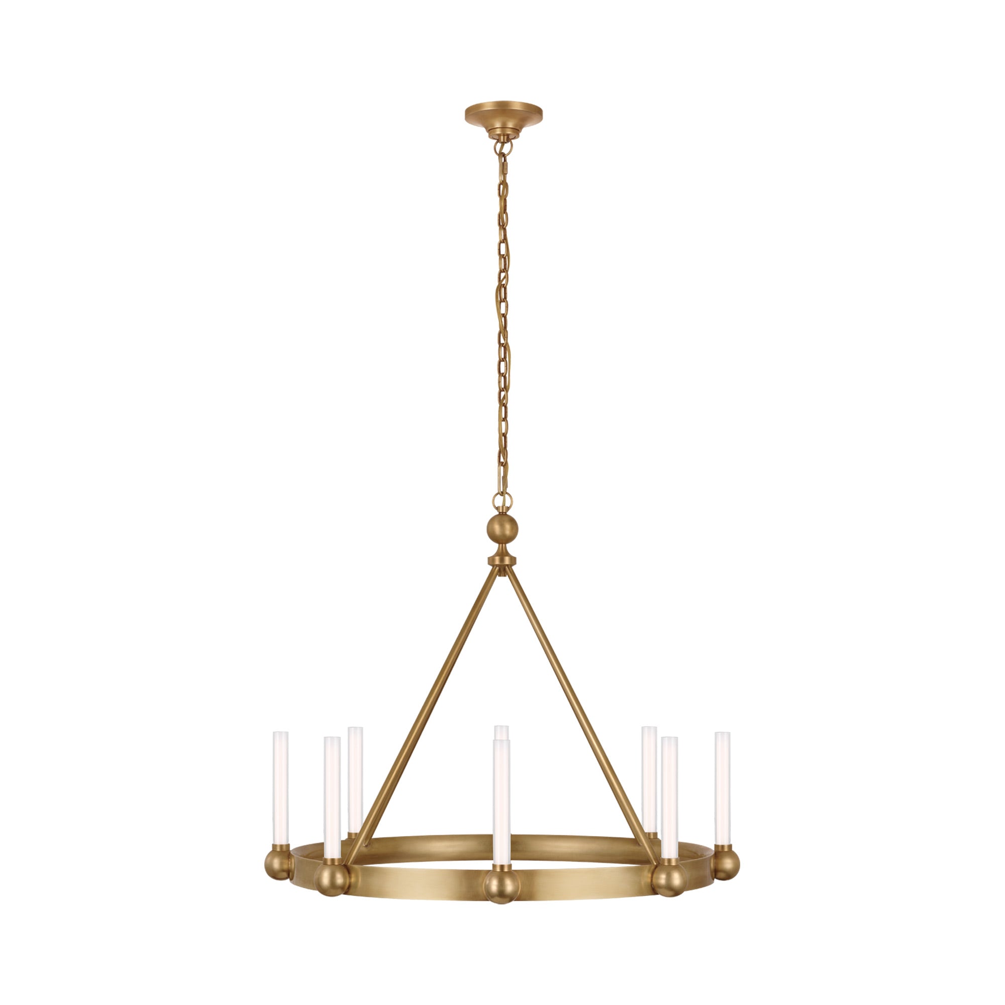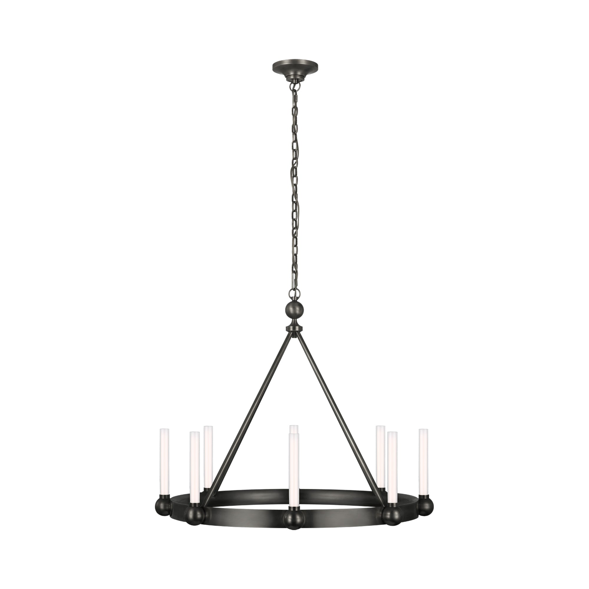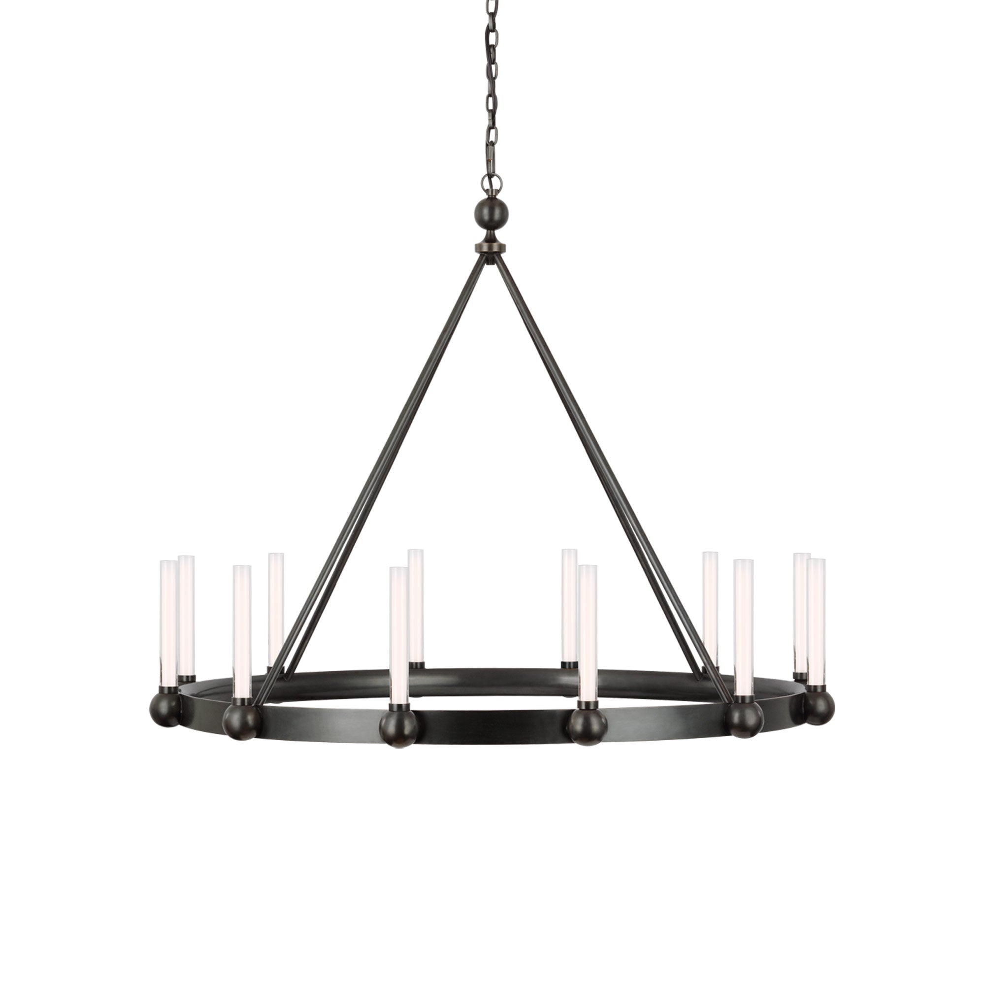 Take drama to a new level of simplicity with casual, elegant attitude. Made of iron with quaint accents, the Jeffery LED Ring Chandelier from Visual Comfort Signature offers a Euro castle motif with slender glass cylinder shades. Its round silhouette and cable suspension infuses theatrical personality ideal for a custom dining space or entryway.