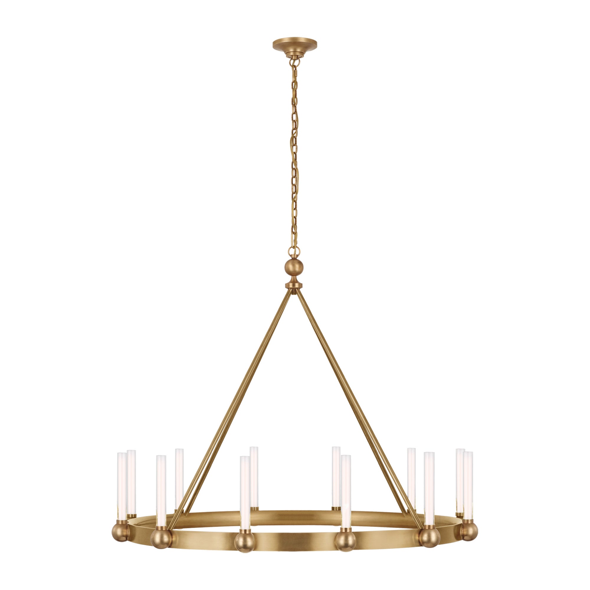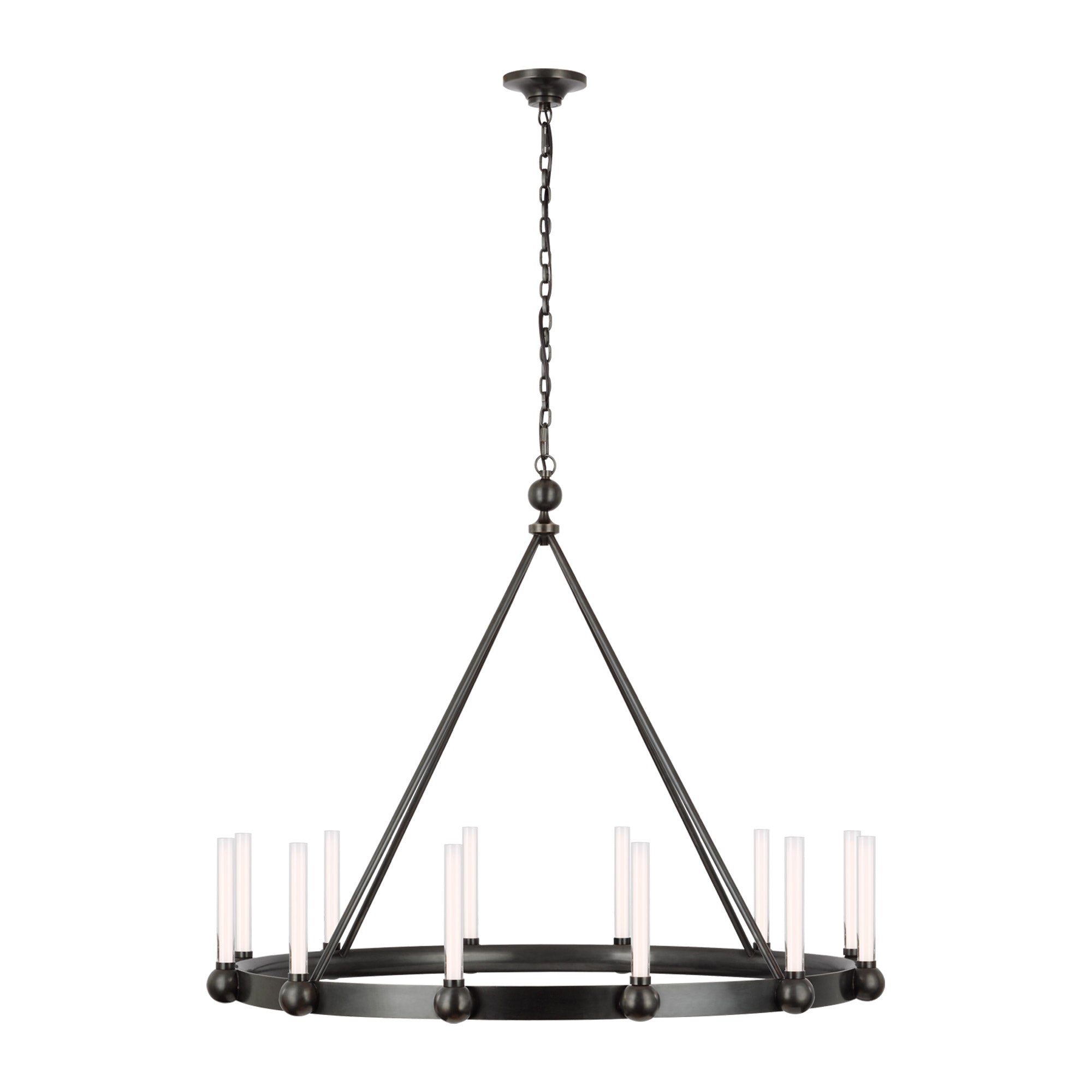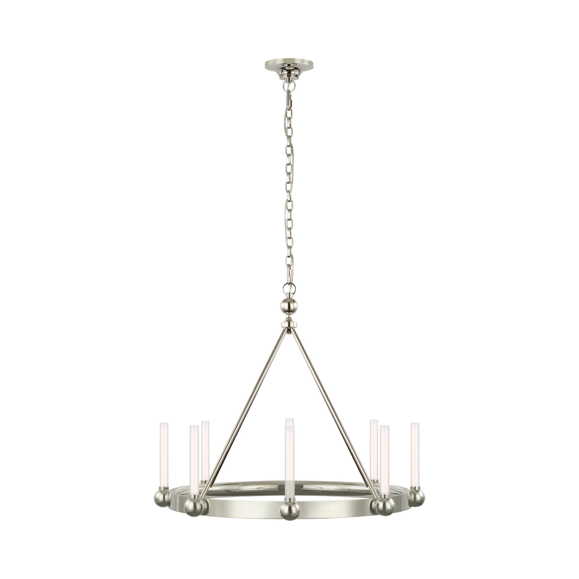 Take drama to a new level of simplicity with casual, elegant attitude. Made of iron with quaint accents, the Jeffery LED Ring Chandelier from Visual Comfort Signature offers a Euro castle motif with slender glass cylinder shades. Its round silhouette and cable suspension infuses theatrical personality ideal for a custom dining space or entryway.