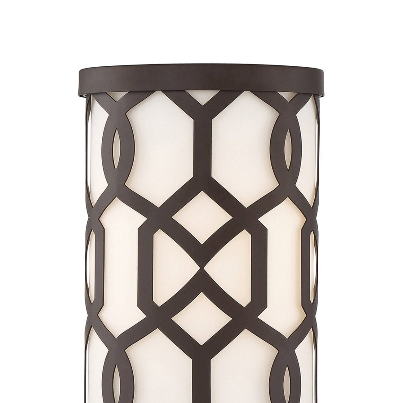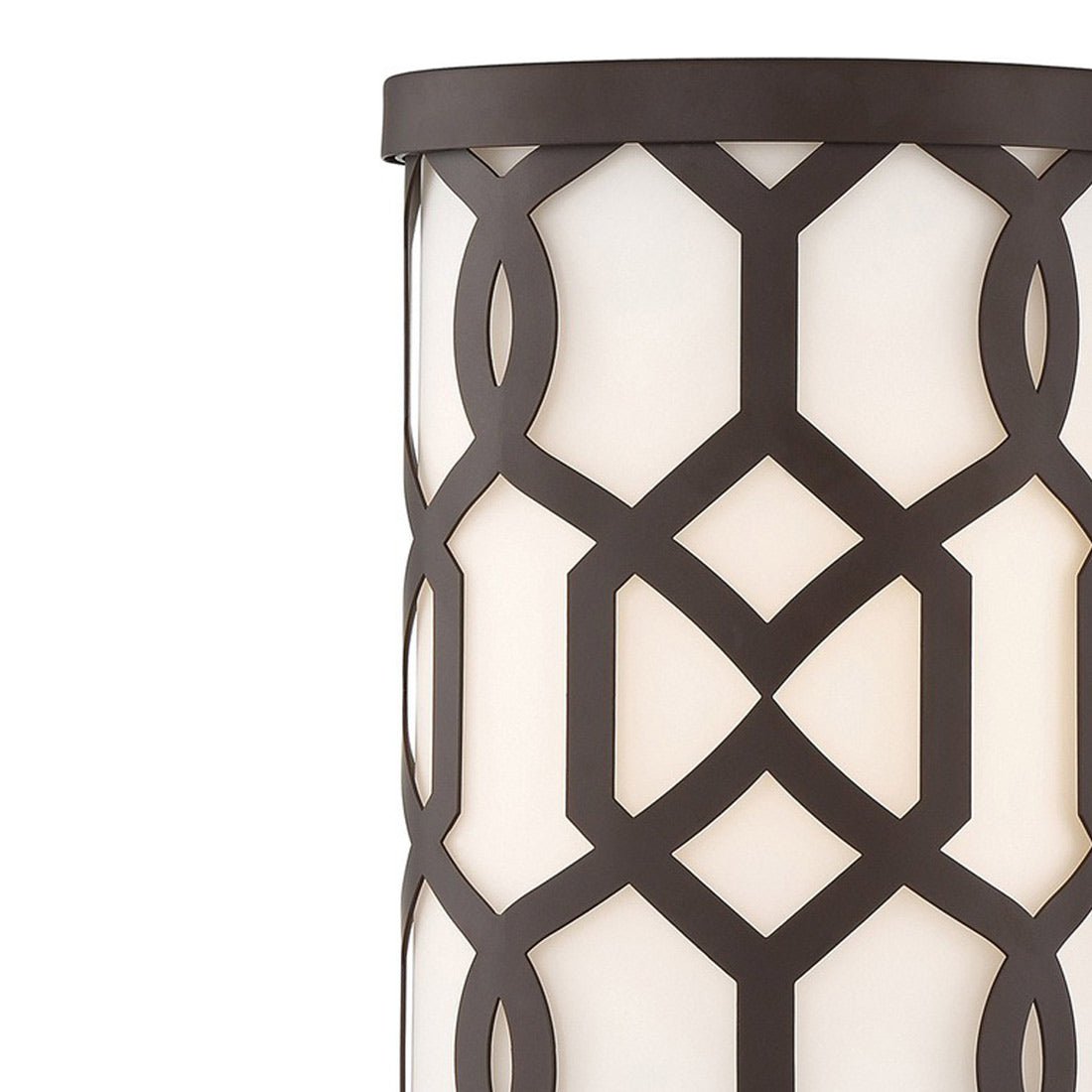 Unexpected artistry and geometric design offer a new twist to exterior lighting. The Jennings Outdoor Post Light from Crystorama offers a compelling look lifting the custom gardens and walkways to the level of sophistication you seek. With a lush dark bronze finish over metal framing, this fixture features a weather-resistant white shade and precision-cut geometric abstract style.