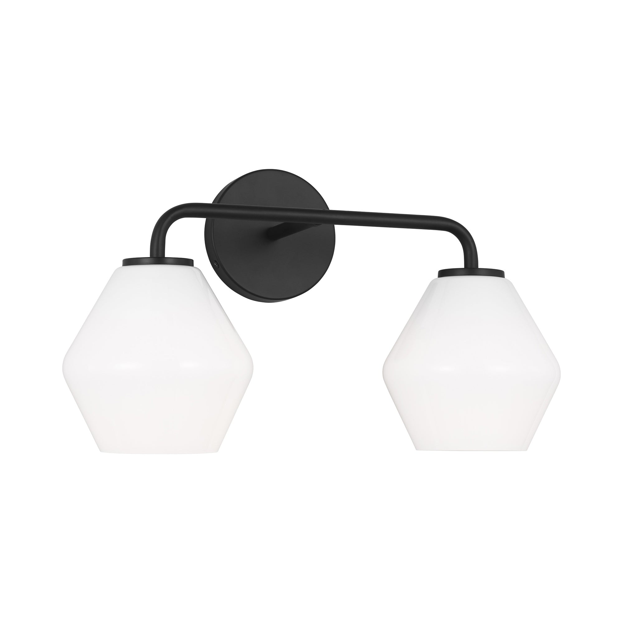Bath spaces come to life with a charming play on modern style and a light source perfect for providing suitable illumination. The Jett Bath Vanity Light from Generation Lighting employs simple silhouetting with metal framing and curved arms, with delicate glass shades taking on a fanciful angled shape.