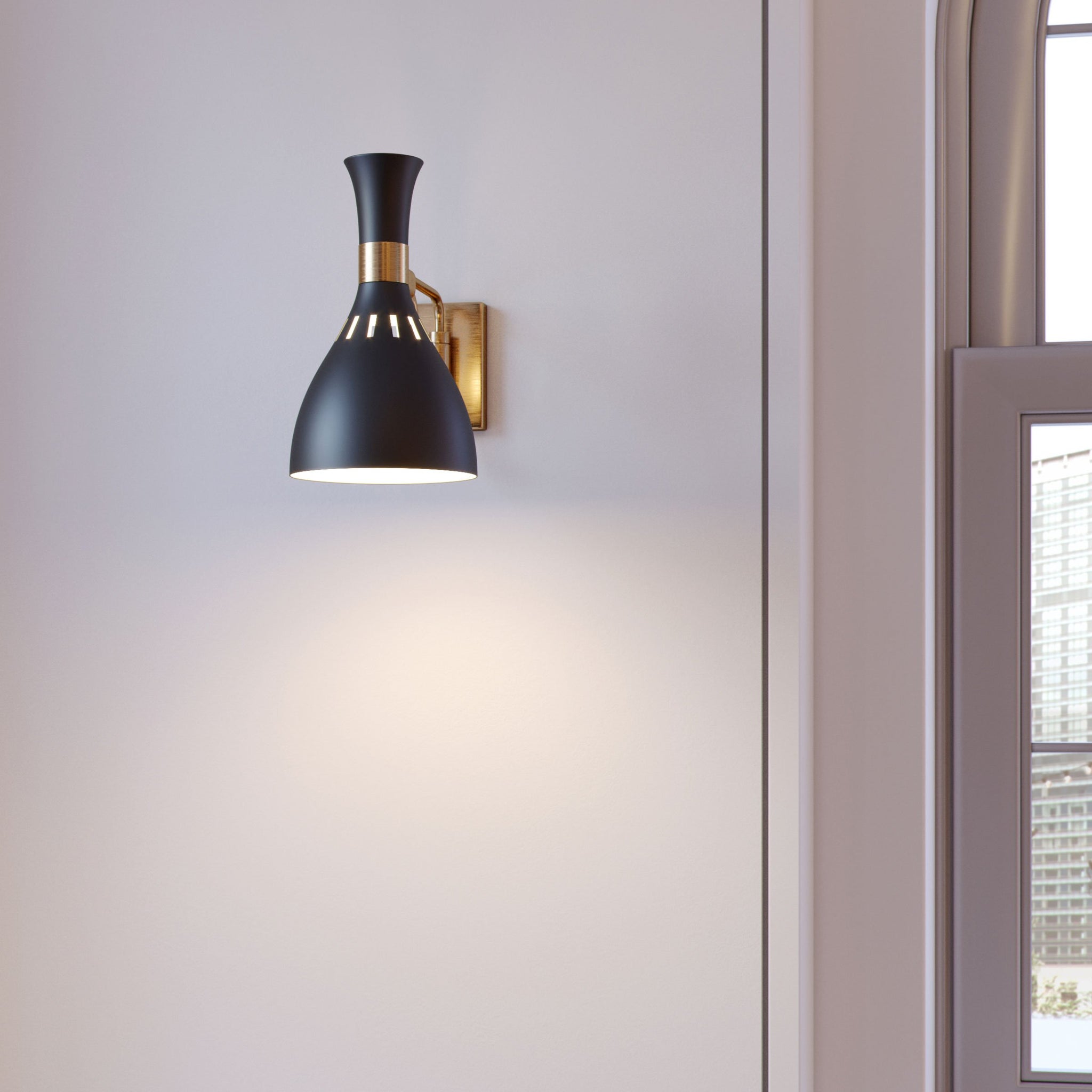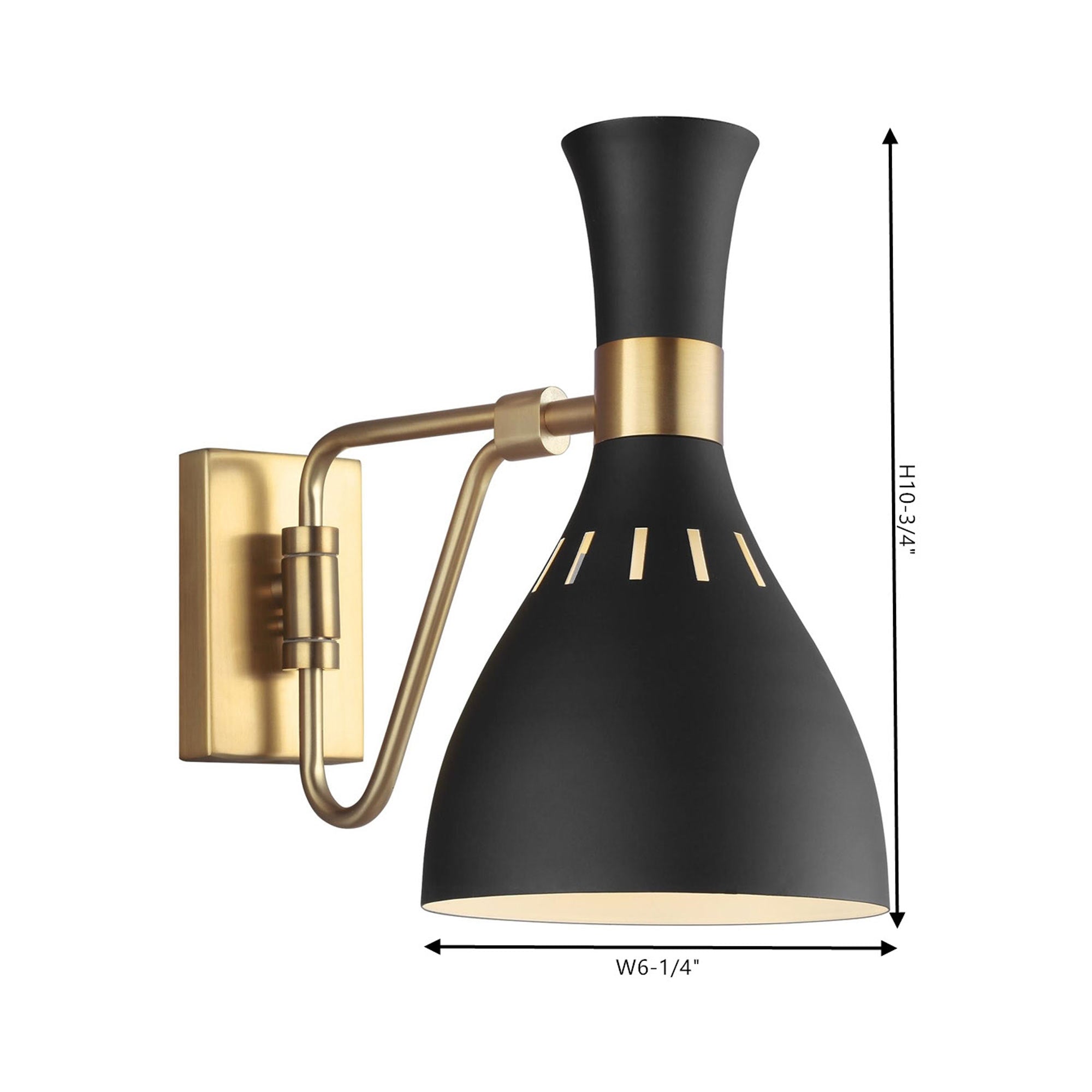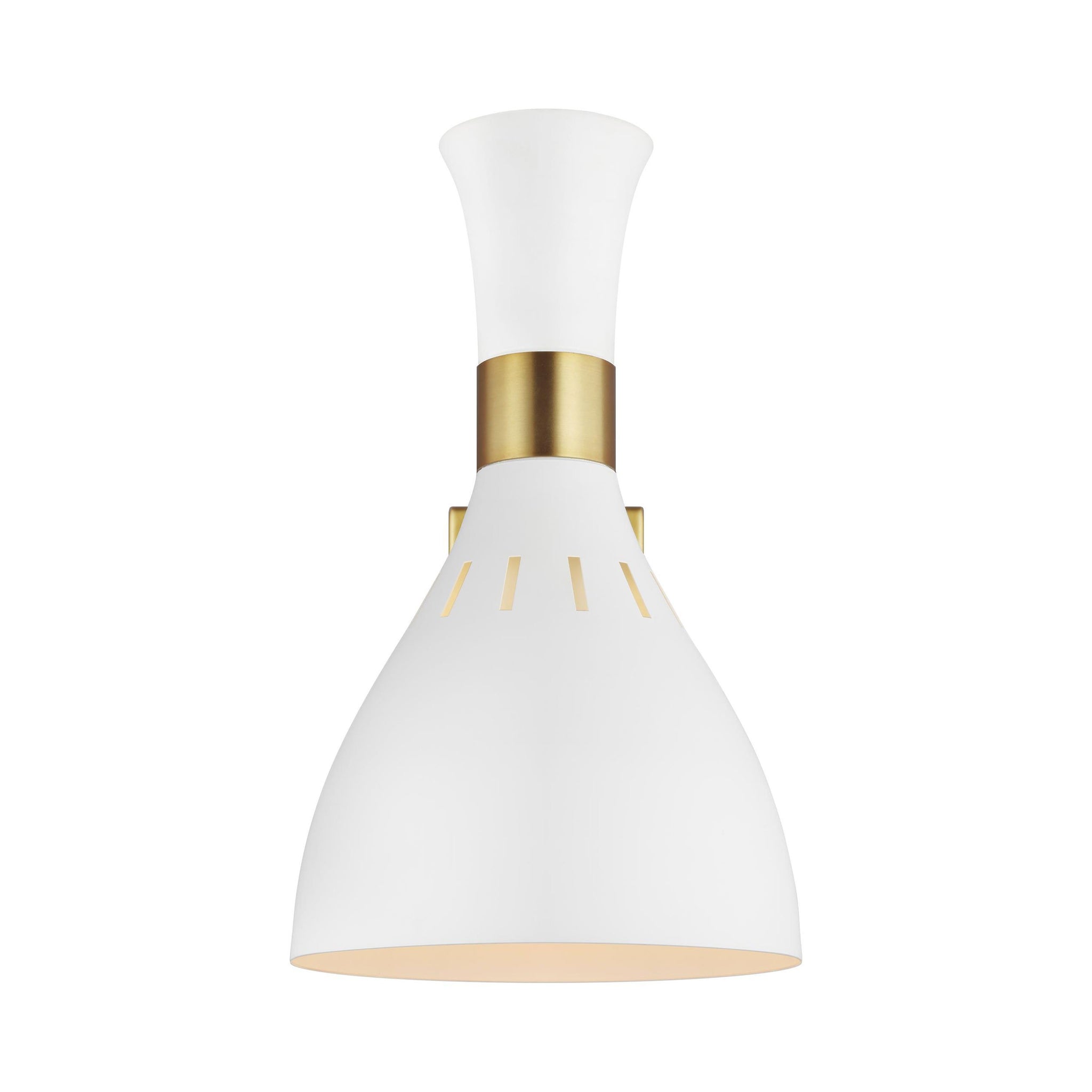 The Joan Bath Wall Light offers shadow-free lighting in your powder room, spa, or master bath room. Pairing a rich, two-tone finish with bold, geometric lines give Joan luxe appeal. Warm Burnished Brass joins with either Midnight Black or Matte White in a thoughtful juxtaposition of contrasting finishes on the 5-light chandeliers, the 1-light wall sconces and the 1-light table lamps. Each iconic, hourglass-inspired shade features small perforations towards its crown, allowing a soft glow to shine through, further articulating the distinctive details of this chic collection.