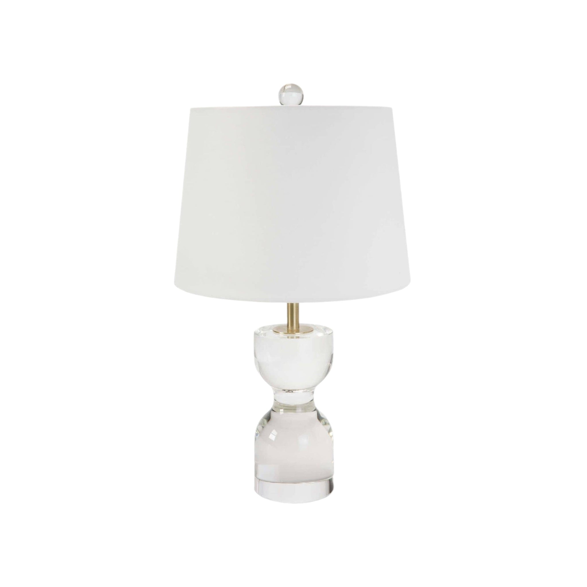 Meeting in the middle of elegance and conventional style, the Joan Table Lamp from Regina Andrew showcases the design power of color-less palette impacts. Solid crystal forms a shapely hourglass-inspired body, lush and impressive. Crowned with an oversized fabric shade, this lamp delivers a dose of decadence that works in a host of settings.