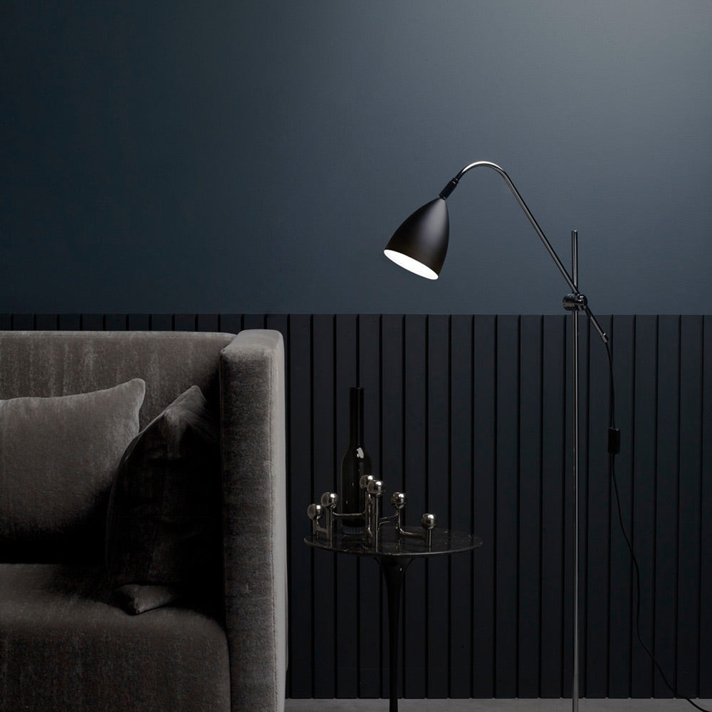 Keeping a low profile and sleek design aesthetic, the Joel Floor Lamp from Astro Lighting delivers on function and style. Send ambient lighting into a casual living area or workspace with a lamp adopting studio inspiration and offering the benefit of adjustability. Matte black metal creates a perfectly versatile finish.