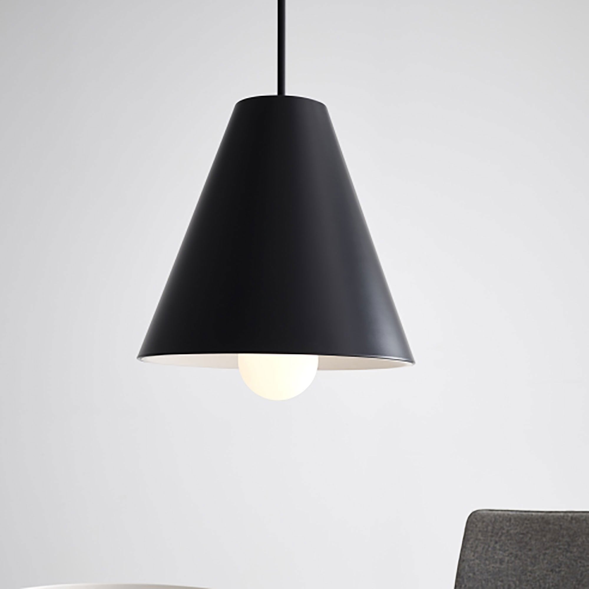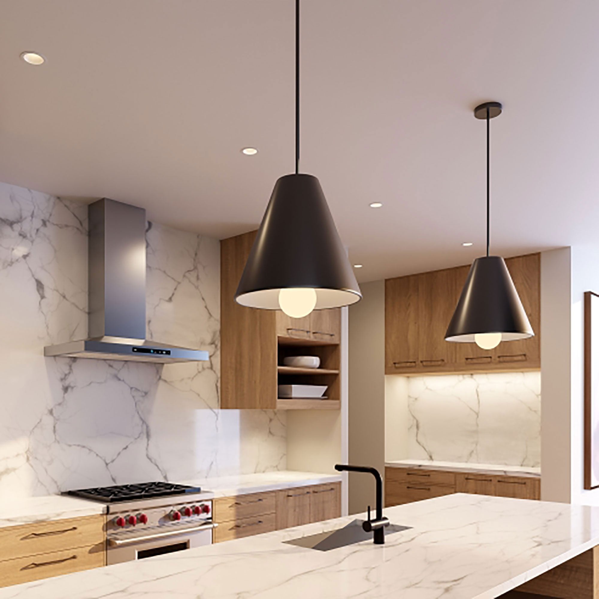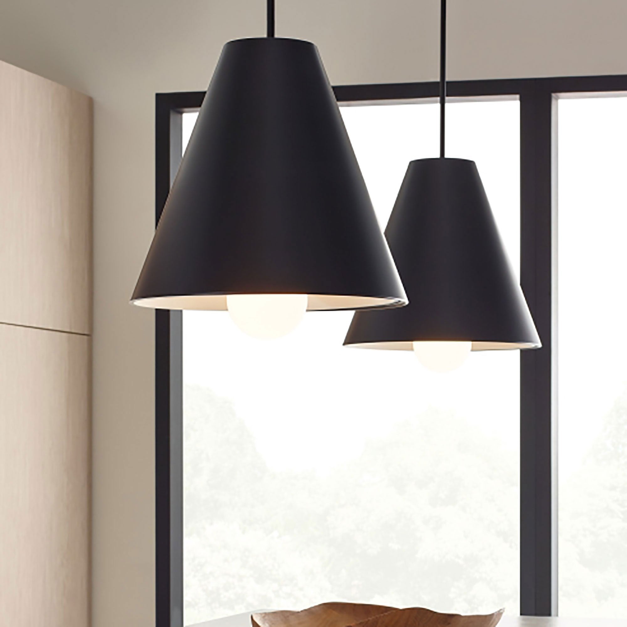 Joni LED Pendant Light by Sean Lavin from Visual Comfort Architectural features an integrated LED lamp suspended within a conical shade and creates a uniquely contemporary fixture. Designed for heightened visual interest with two-tone finish options, Joni is offered in three stylish finish combinations. Matte Black, Aged Brass, and Polished Nickel. All finishes have a Matte White inner reflector. At 17" in diameter, the Joni Pendant is a subtle contemporary statement piece great for your kitchen, living room, hallway and bedroom. Complete the look with the Joni Wall Sconce, Flush Mount and smaller scale Low-Voltage Pendant. Lamping options are compatible with most dimmers. Refer to the Dimming Chart for more information.
