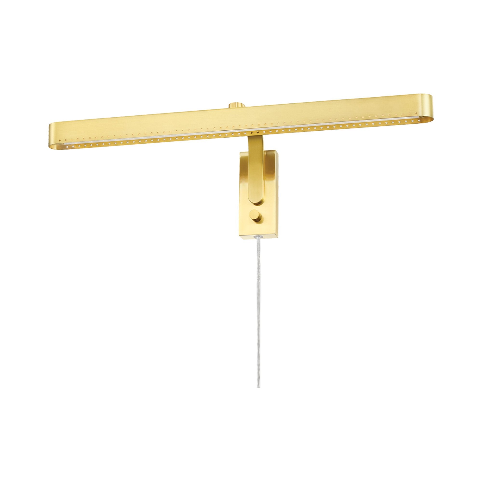 Picture this: a design-forward picture light that looks just as good as its subject. Julissa is a sleek, modern task light characterized by a slim profile and clean geometry. Perforations along the bottom edge add visual interest, dispersing light ever so softly. Available in two sizes and as a swing-arm sconce, the style also comes in aged brass or old bronze.