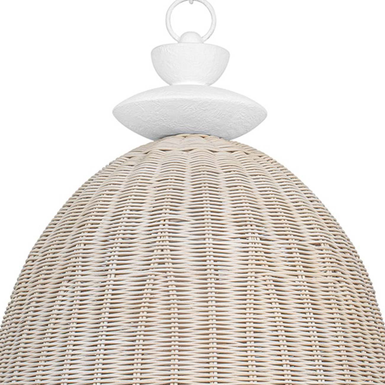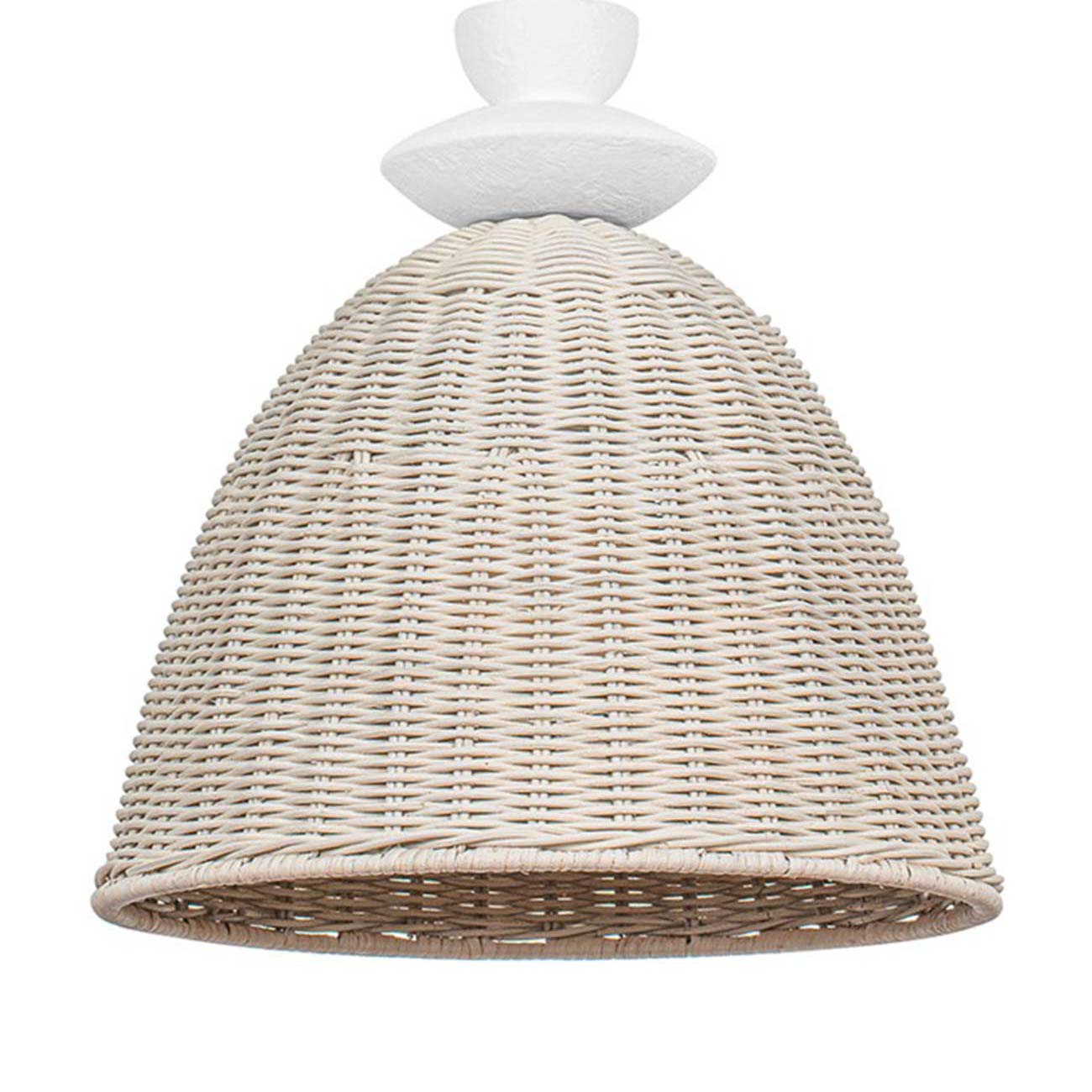 Impeccable and timeless style graces the Kahn Pendant Light from Troy Lighting, combining the earthy quality of coastal fare with an artful and charming attention to accent detail. Smooth a casual space with island-inspired white-washed wicker creating a dome shade, as stacked stone accents with white gesso finishes and intricate ring suspension changes up the raw aesthetic to create versatility.