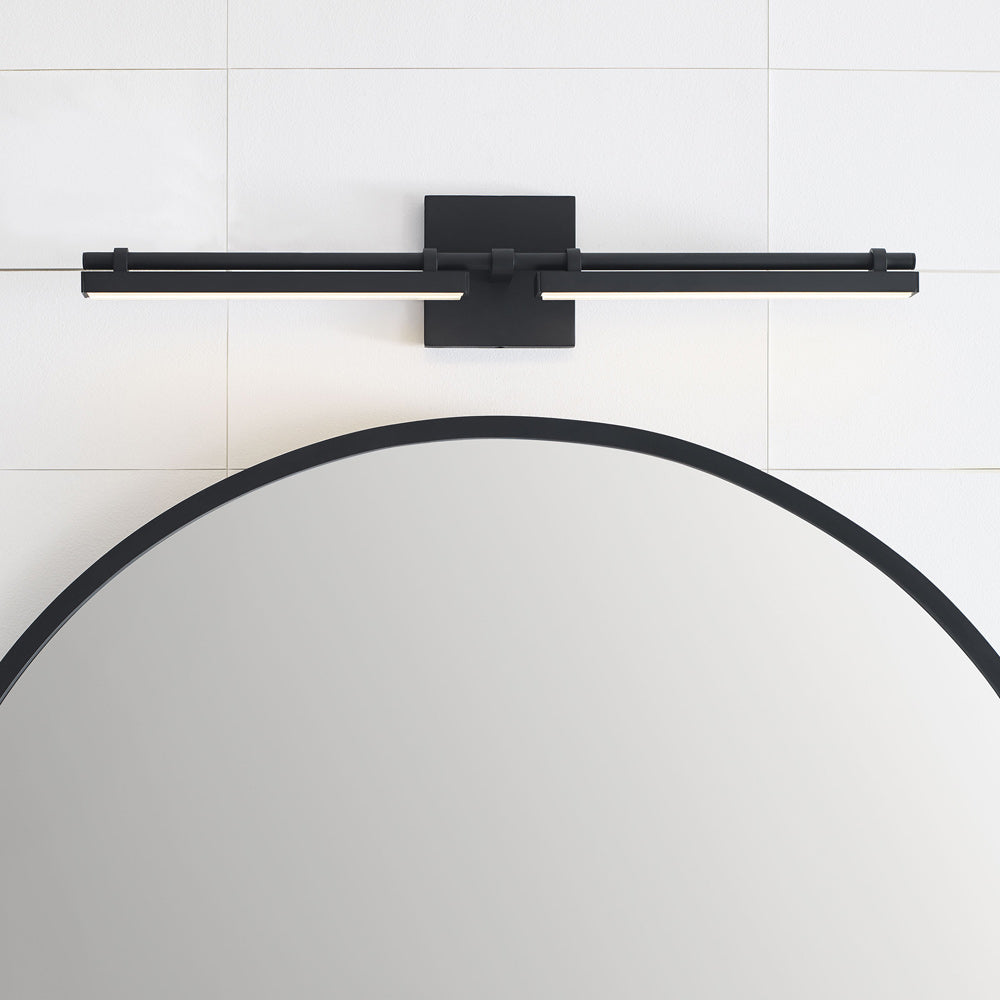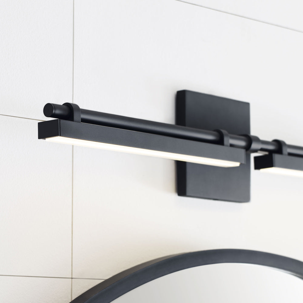 Industrial character lends subtle charm to the Kal LED Vanity Bath Light from Visual Comfort Modern. Clean lines define the design, with exposed rod and bracket details that add the perfect touch of dimensionality to energy efficient LED illumination for the vanity.