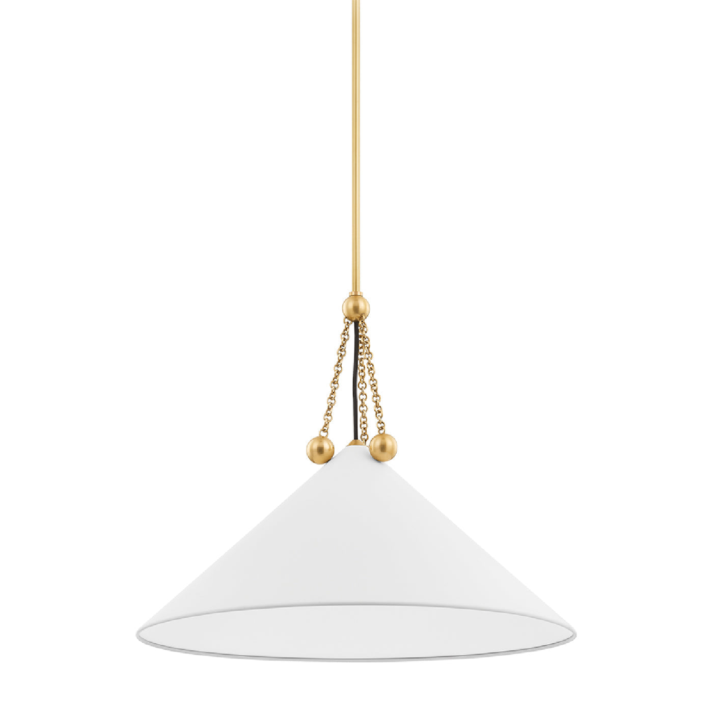 Upgrade a bistro-style kitchen or dining room with the modern Kalea Pendant Light from Mitzi. It's adorned with ball and chain details over a classic conical metal shade, delivering a warm and inviting wash of downlighting perfect for meals, homework or game night with the family.