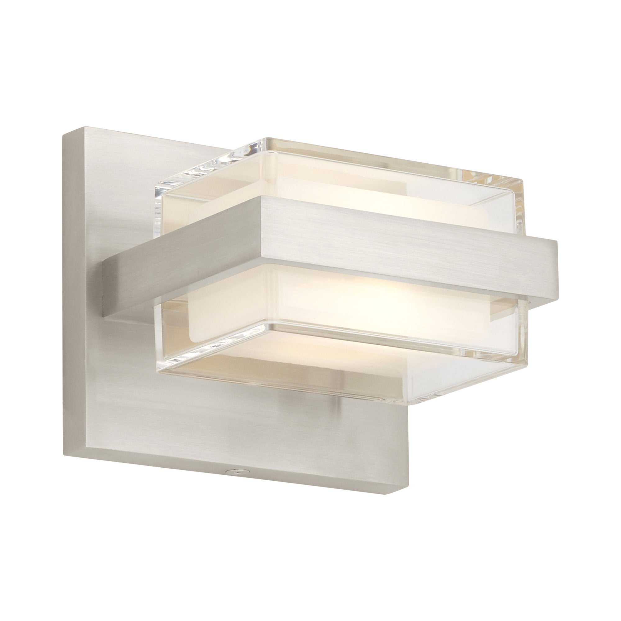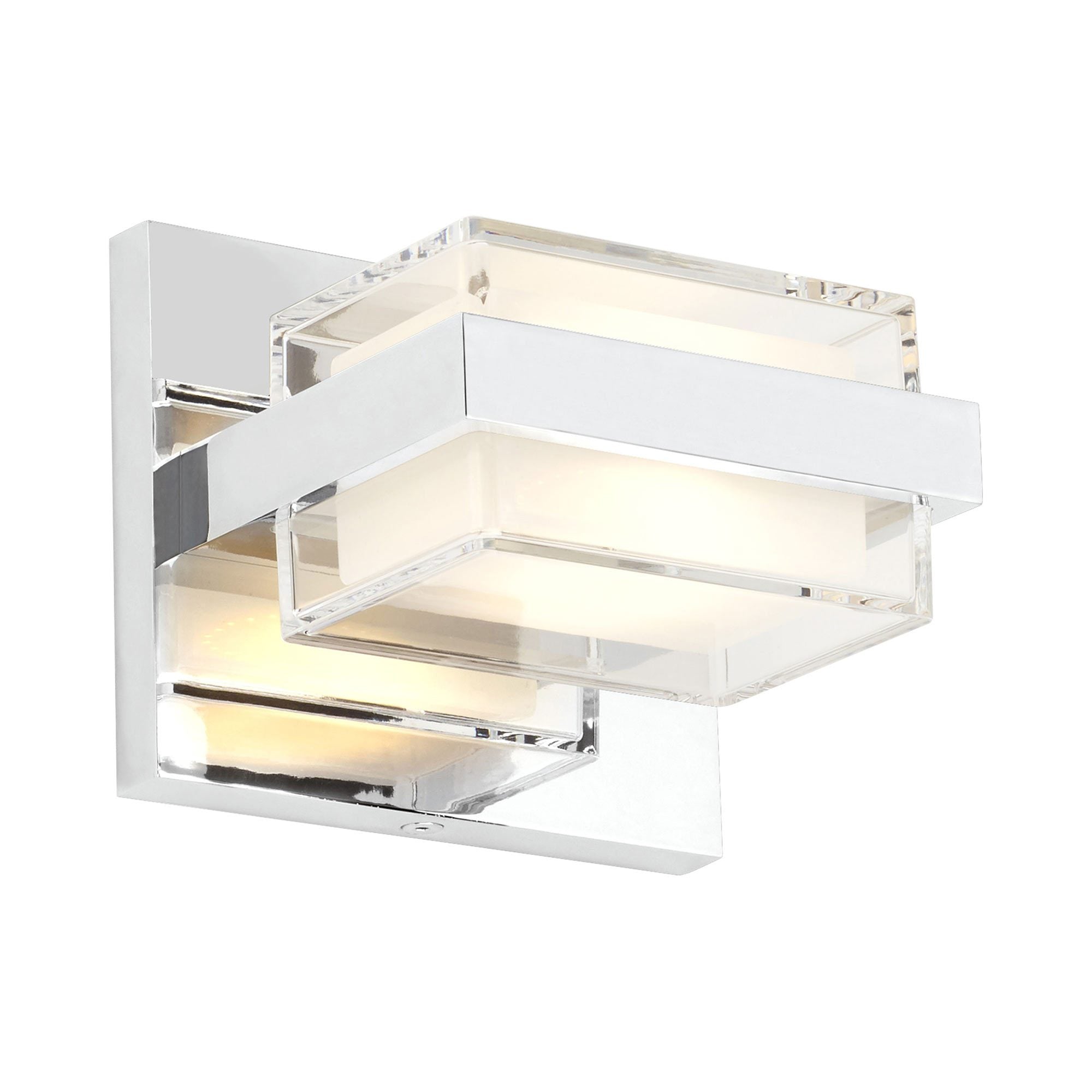The Kamden 1-Light LED Bath Wall Light features two ultra-clean, square acrylic shades are hand-polished then mounted in a die-cast metal frame. Powerful LEDs direct light through the glass in both directions. The light cubes are mounted to a carefully finished metal back plate and can be mounted vertically or horizontally making the Kamden wall ideal for hallway lighting, bathroom lighting and bedroom lighting. The Kamden 1-Light LED Bath Wall Light is available in either a sleek Satin Nickel or Chrome finish, each finish further enhances its contemporary style. The Kamden 1-Light LED Bath Wall Light ships with energy efficient integrated LED lamps, all lamp options are fully dimmable to create the desired ambiance in your special space.