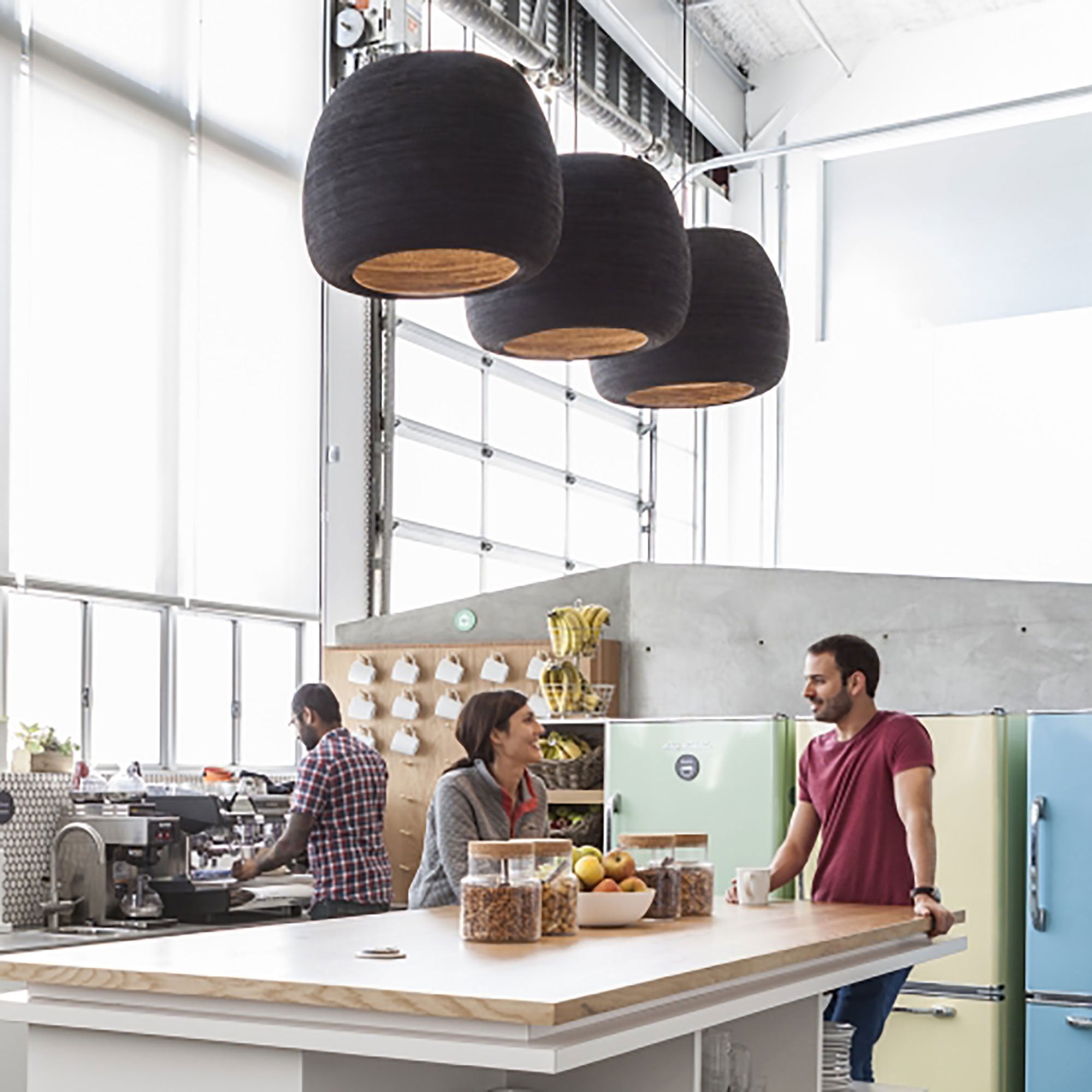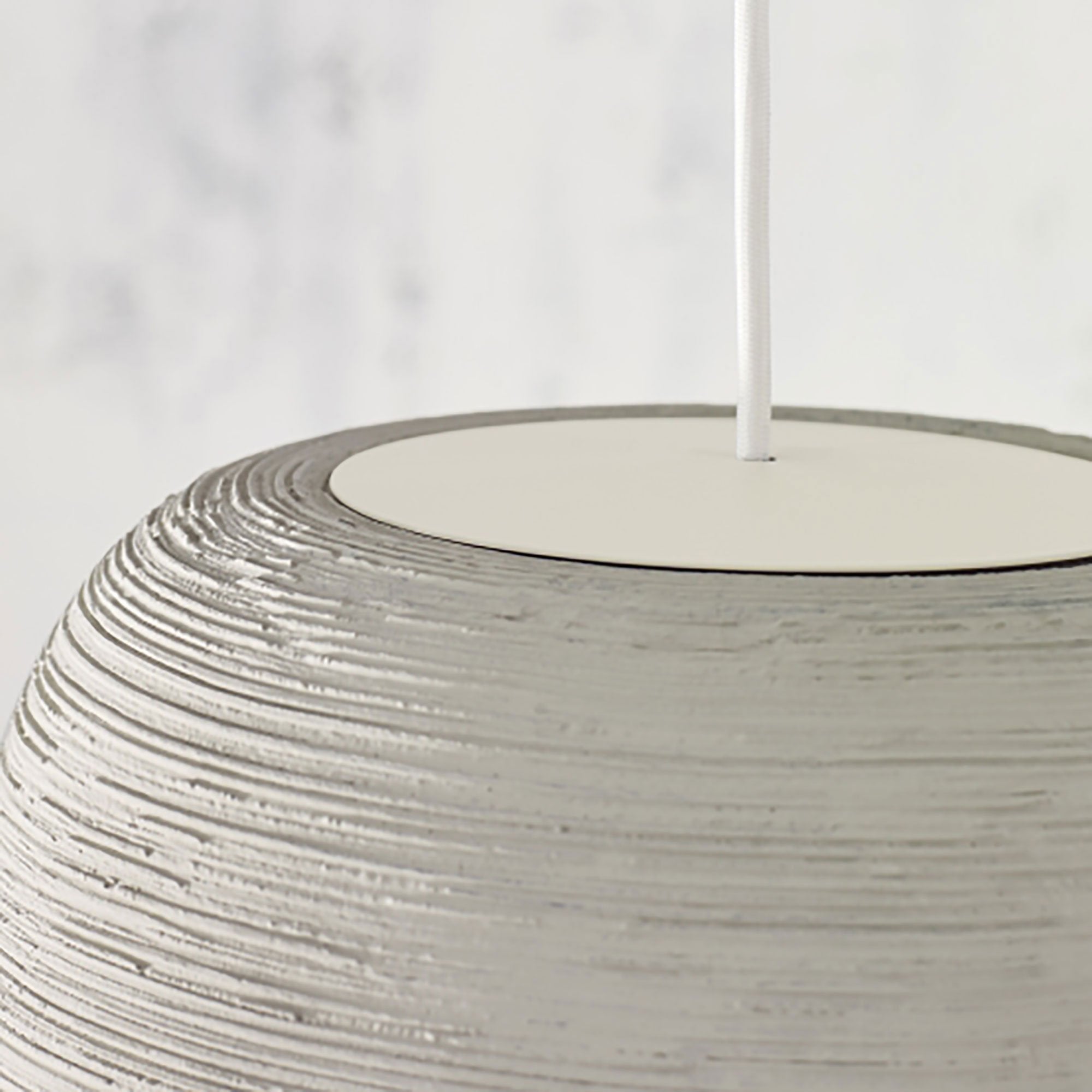 The oversized scale and eye luring texture of the Karam Pendant Light by Sean Lavin for Visual Comfort Modern is an artisanal work of class. Texture and scale join forces to define this entirely ceramic made pendant. The outer walls of each over-sized shade are textured and painted by hand to create the rough and inherently unique appearance most noted to the Karam. Available in two modern colors concrete and black, the neutral color tones further detail the raw ceramic design. Due to its unexpected scale the Karam pendant is ideal for dining room lighting, kitchen island task lighting, and family room lighting applications. Available lamping options include energy efficient LED or no-lamp, leaving you the option to light this fixture with your preferred lamping. The LED option is fully-dimmable to create the desired ambiance in you special space.