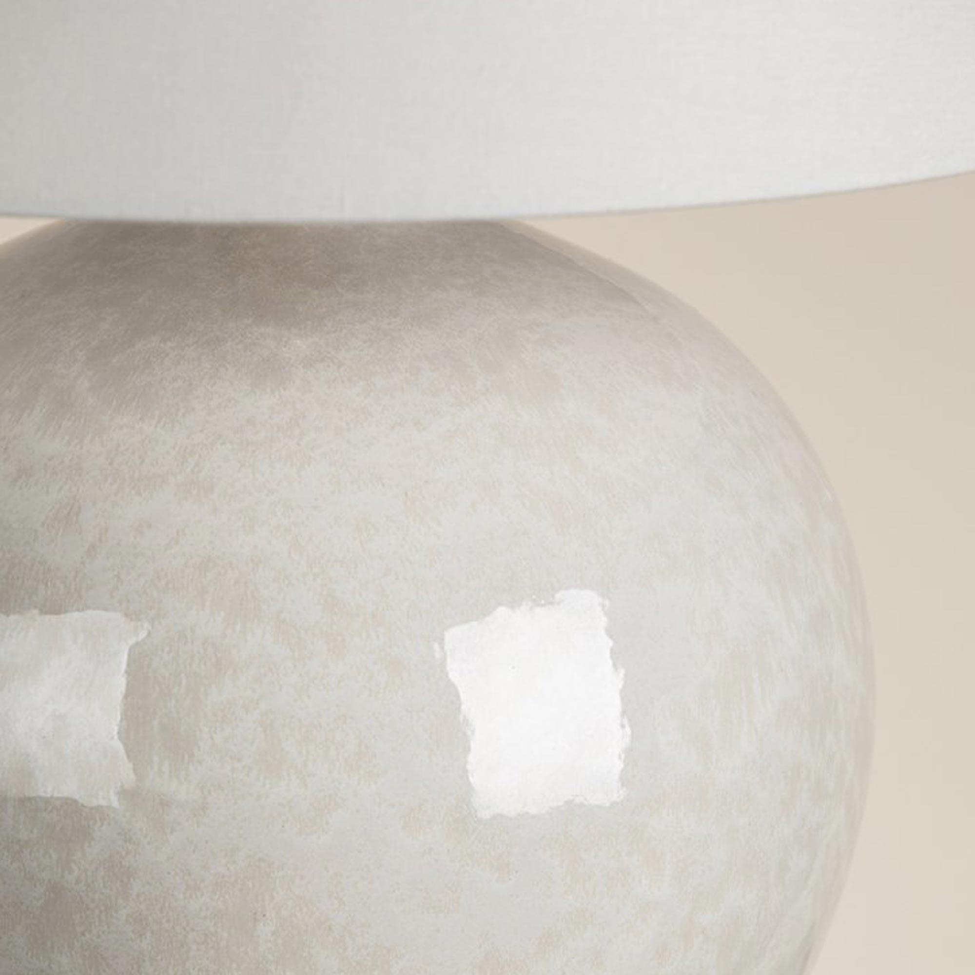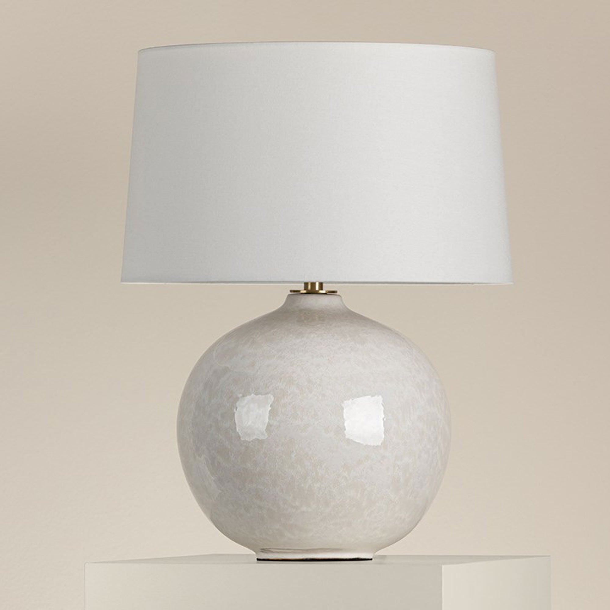When surrounding décor fulfills the level of décor elegance you’re craving, the Karina Table Lamp from Mitzi serves as a perfectly tasteful source of accent illumination, delivering beloved minimalism. A monotone palette blends a round white ceramic body with a crisp white linen shade, just decadent enough to infuse an airy style motif and tone. A reactive finish adds a shimmering effect to a chic, shapely ceramic body.