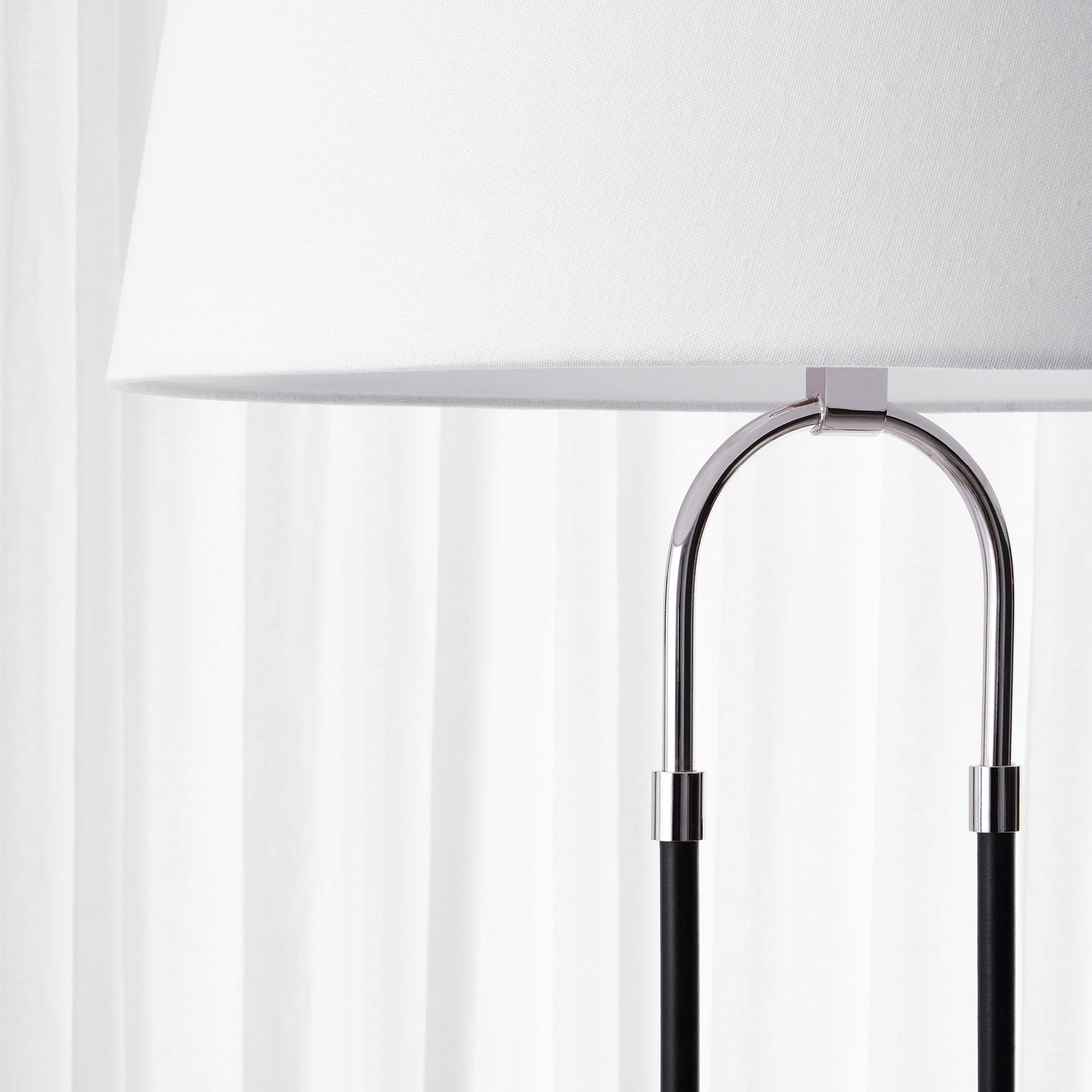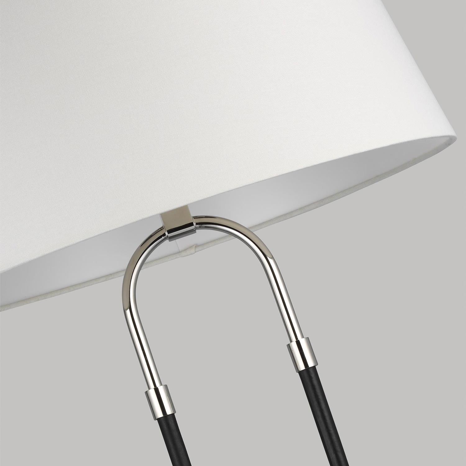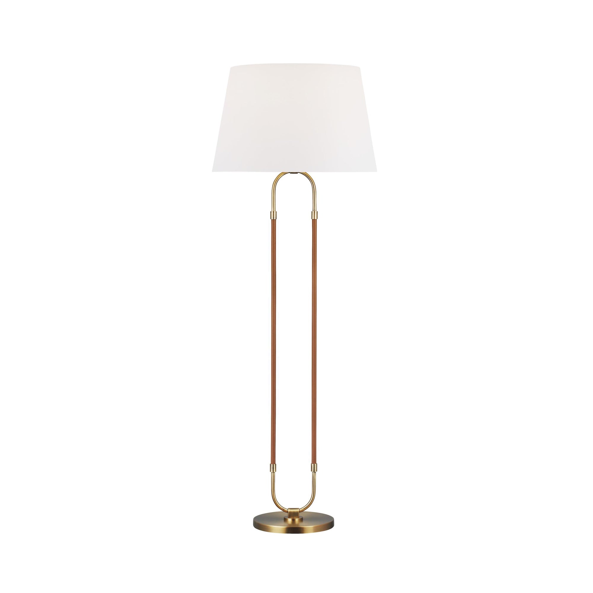 Curves define the airy, modern ambiance of the Katie Floor Lamp from Visual Comfort Studio. Its open oval framework receives a two-tone finish while a classic tapered drum shade perches on top to deliver diffused, inviting illumination. Perfect for a living room or home office.