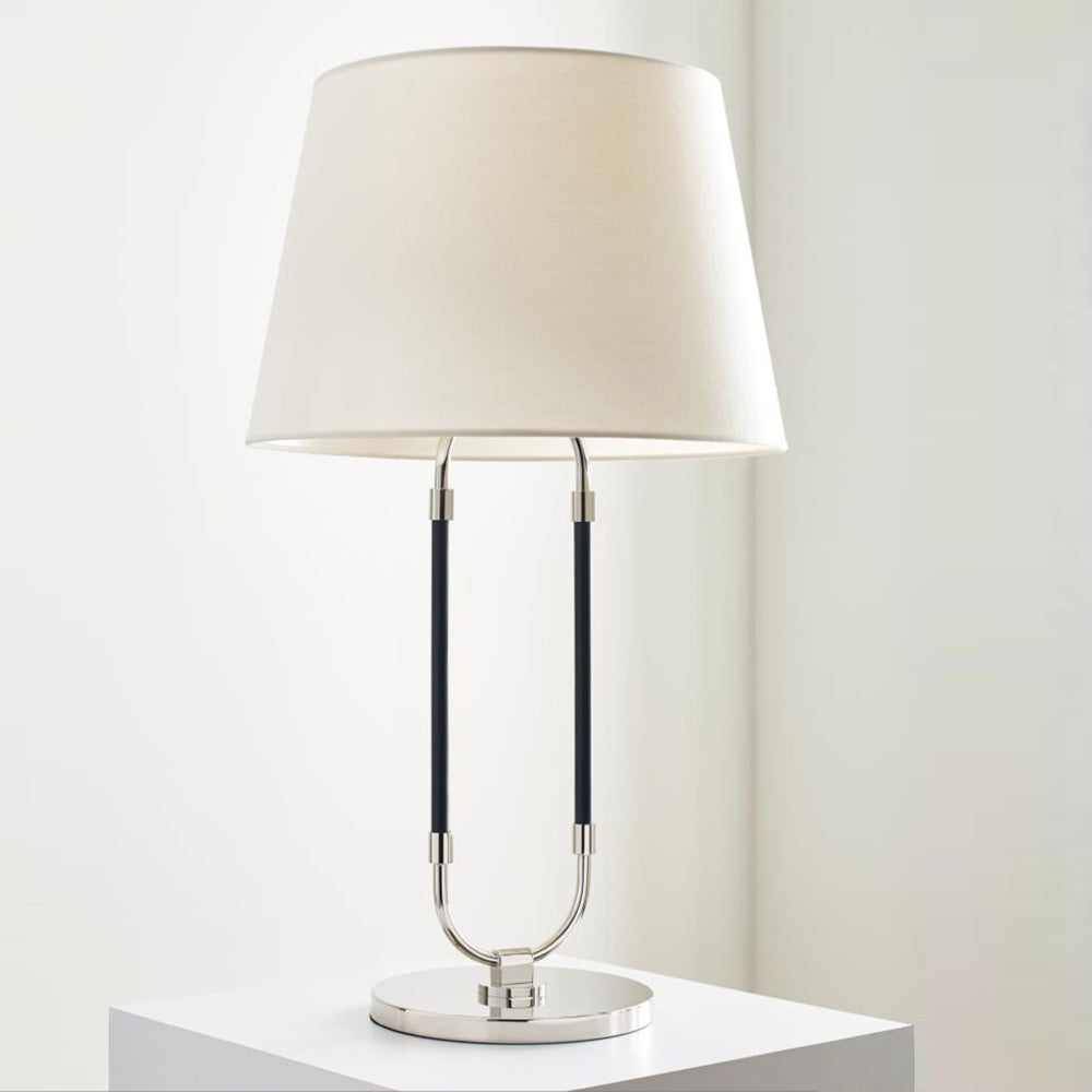 Airy and light, the Katie LED Table Lamp from Visual Comfort Studio is the perfect choice for a refined side table or credenza. A two-tone finish capture the eye while a sleek tapering drum shade offers beautiful light diffusion. An energy efficient choice for modern living.