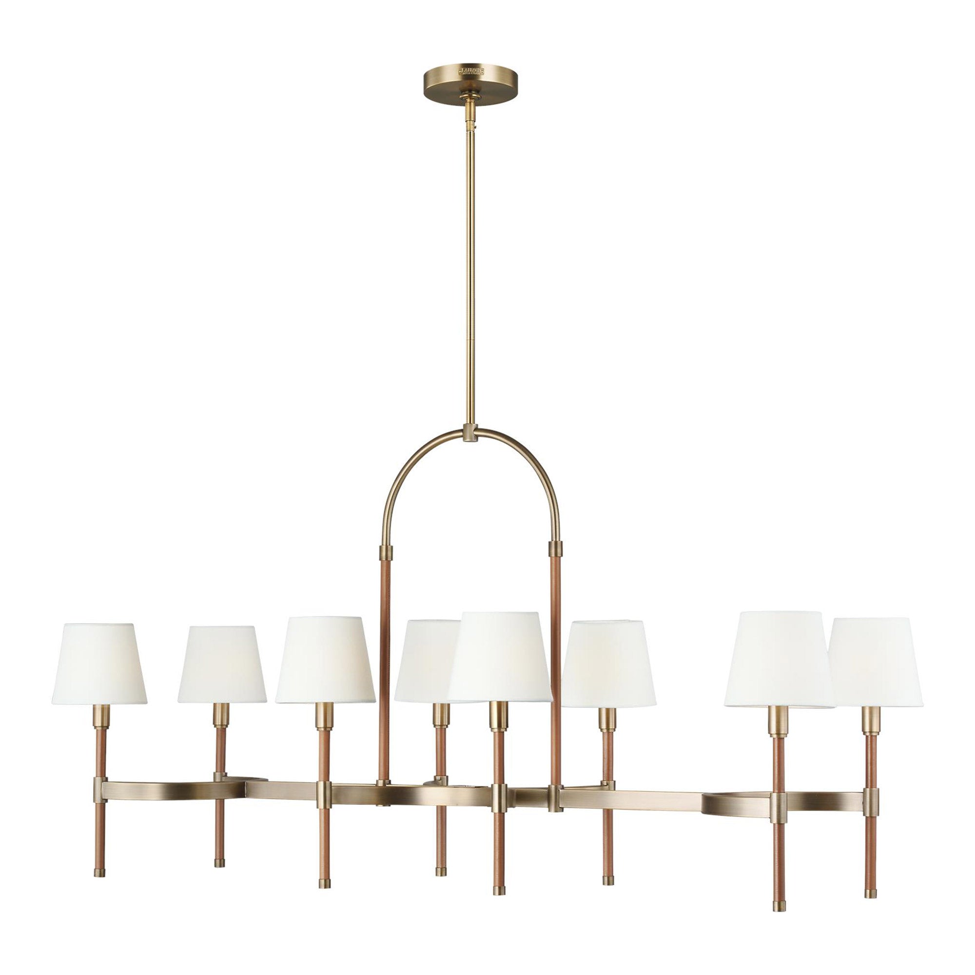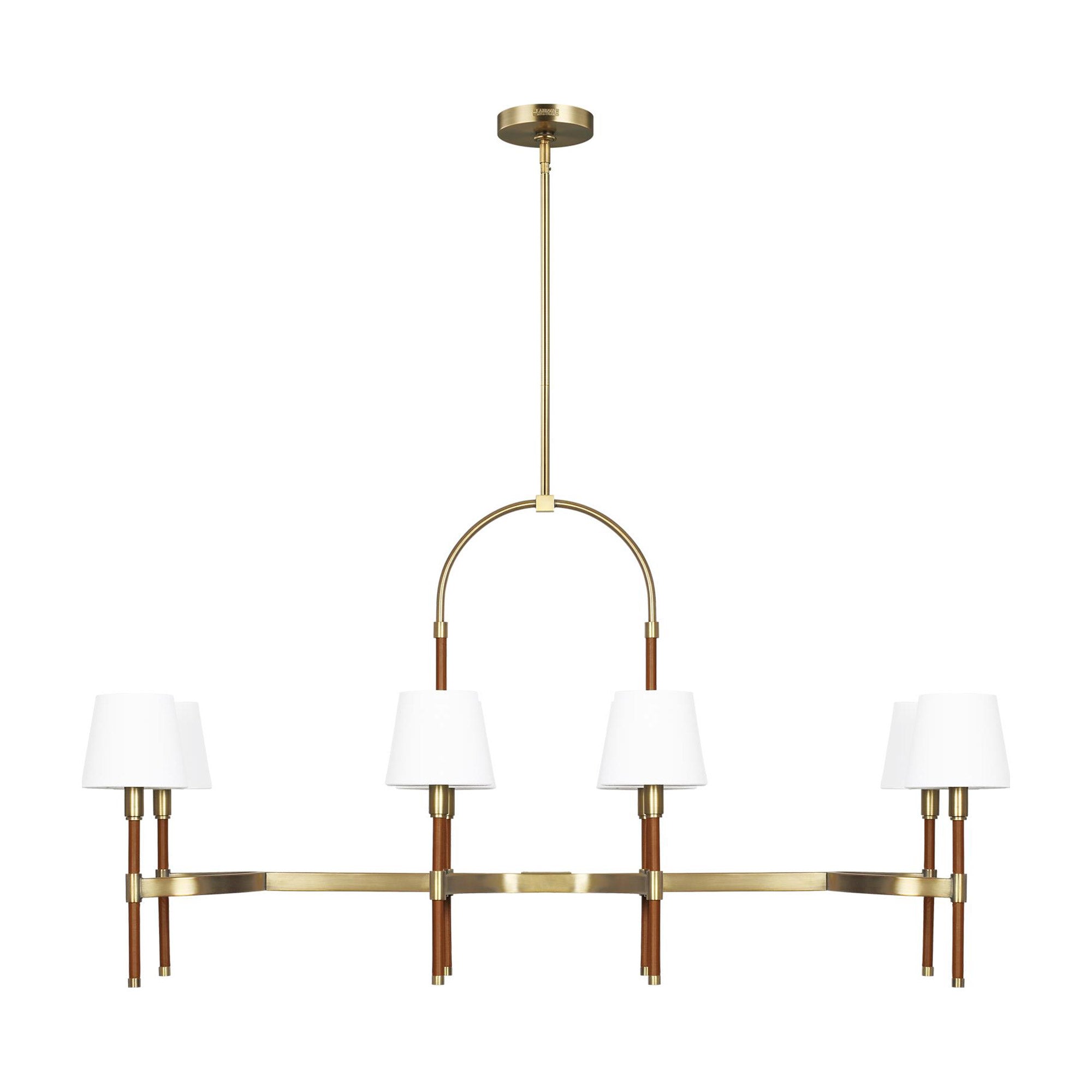 Empire shades bring a soothing, sophisticated finishing touch to the clean lines and brilliant finishes of the Katie Linear Chandelier from Visual Comfort Studio. An unexpected choice for a dining room, or a bold addition over a kitchen island, the linear design sets the tone for casual sophistication.