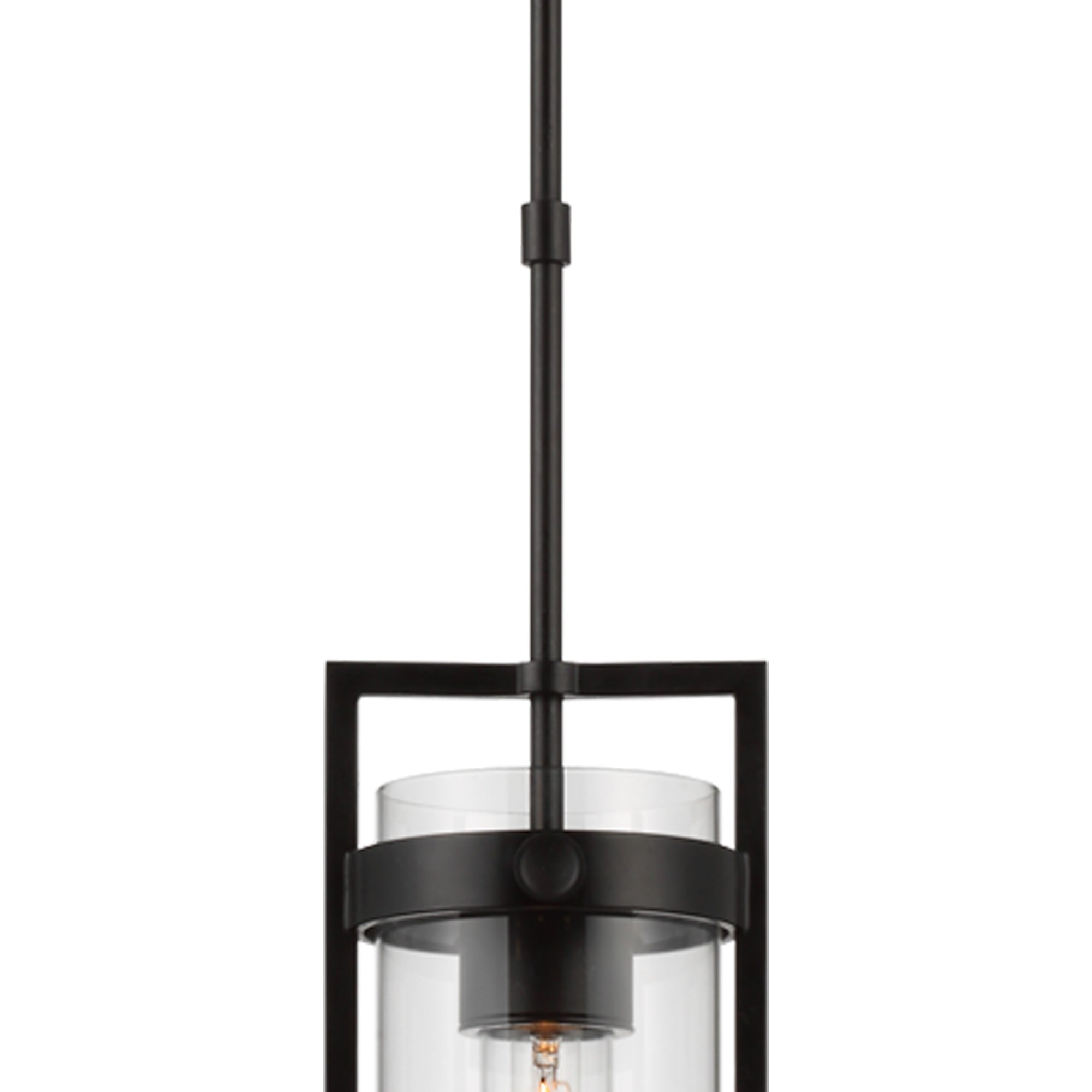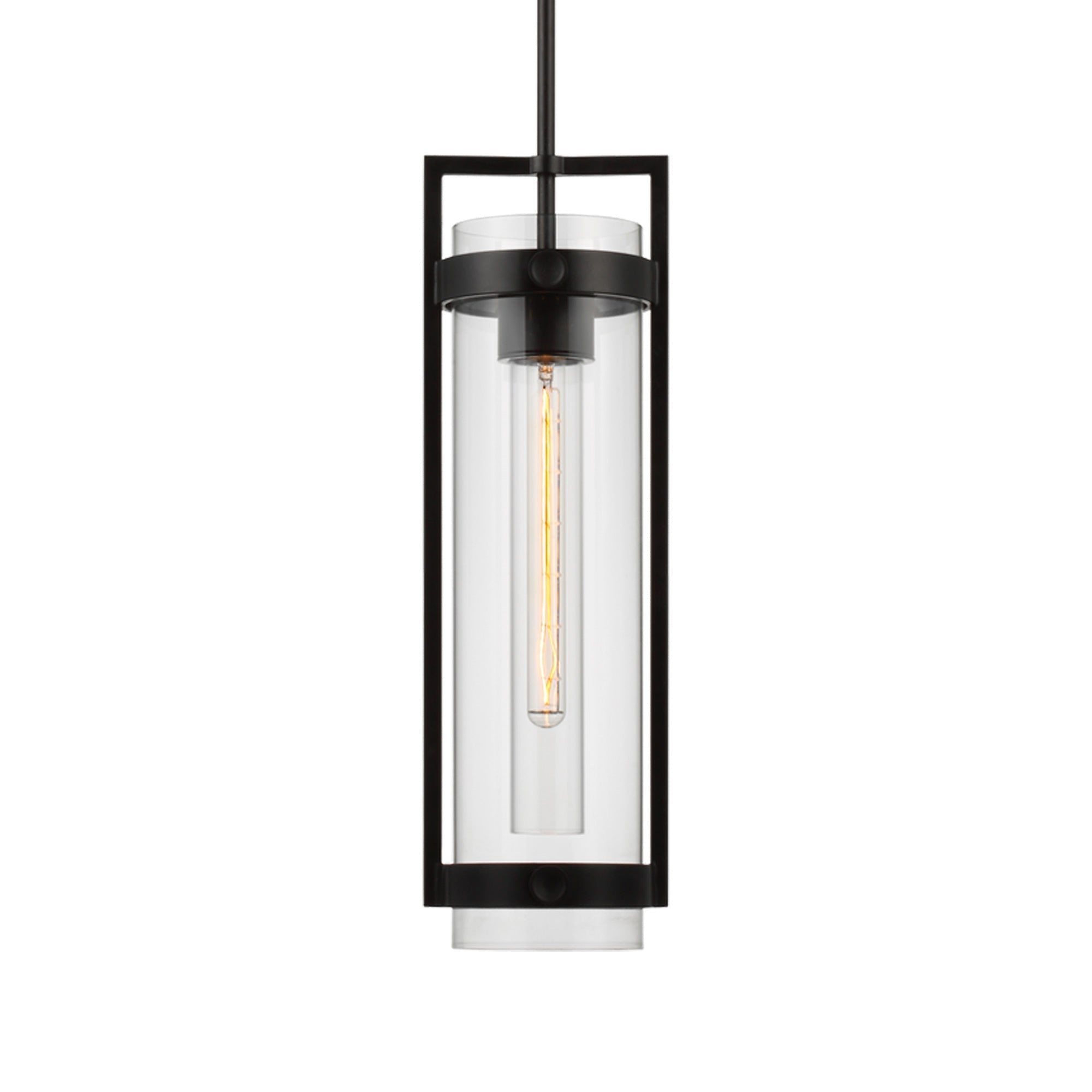 Clear glass lends delicacy to the bold metal framing that defines the Kears Outdoor Pendant Light from Visual Comfort Signature. Its lantern-inspired silhouette is updated for a modern aesthetic, perfect for your front entry.