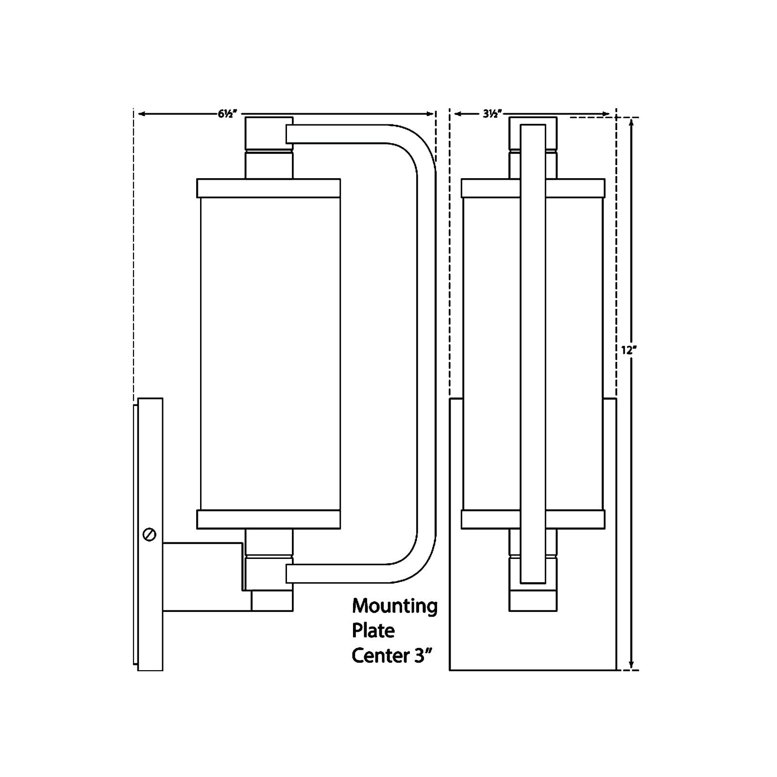 - 12-Inch: 3.5"W X 12"H; 6.5" Extension
