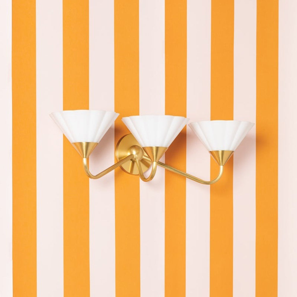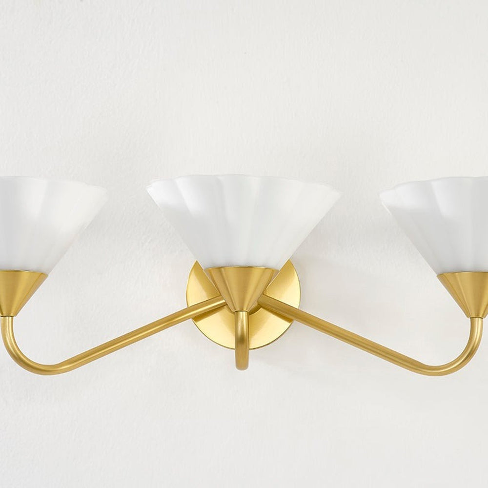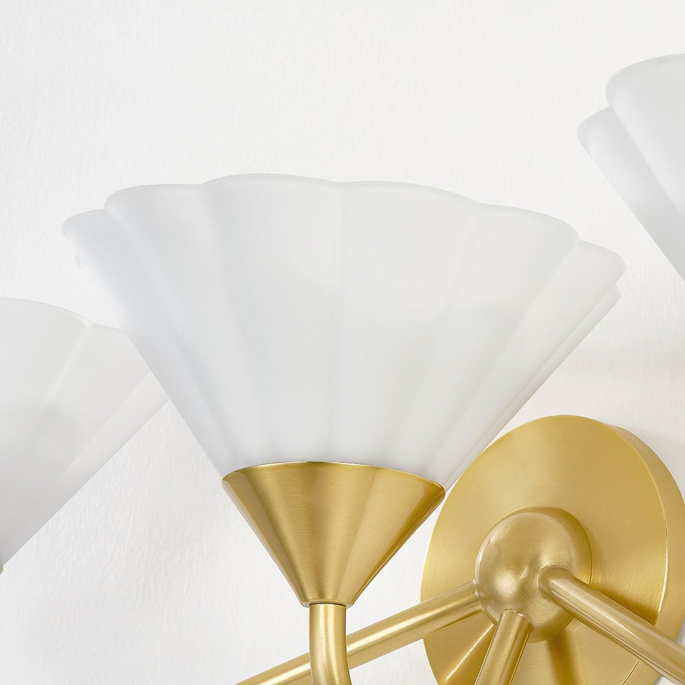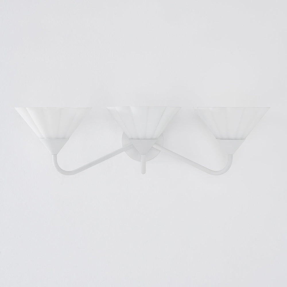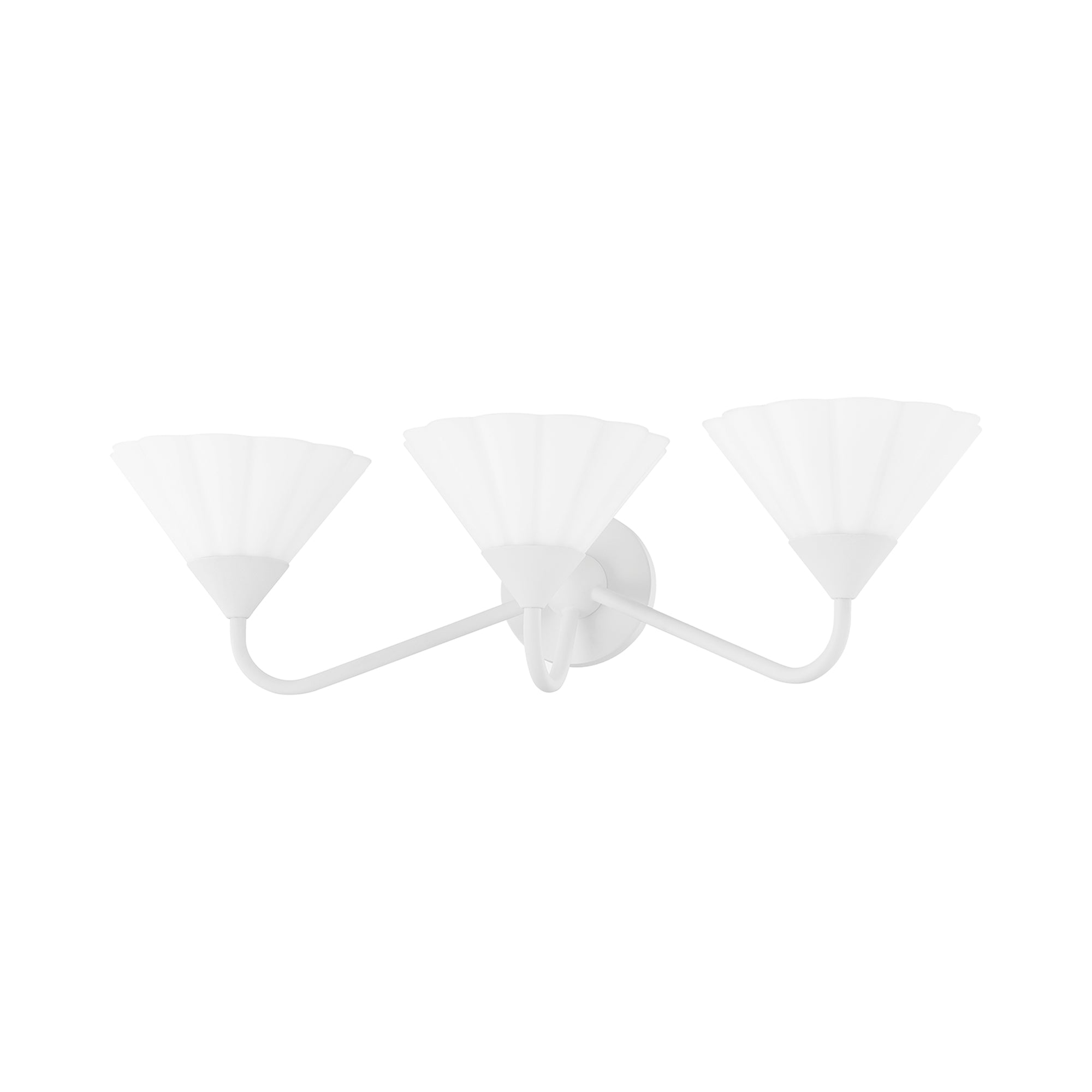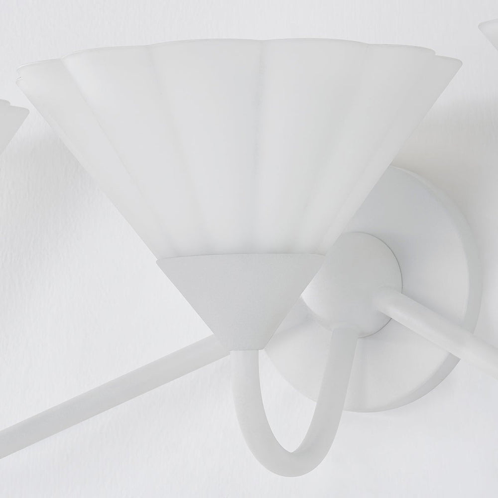 Ruffles bring texture and dimension to etched opal glass shades on the modern Kelsey Bath Vanity Light from Mitzi. Sloping, curved arms complete the look, pairing with a fresh finish to create a chic look that complements over a vanity or in a dressing room.