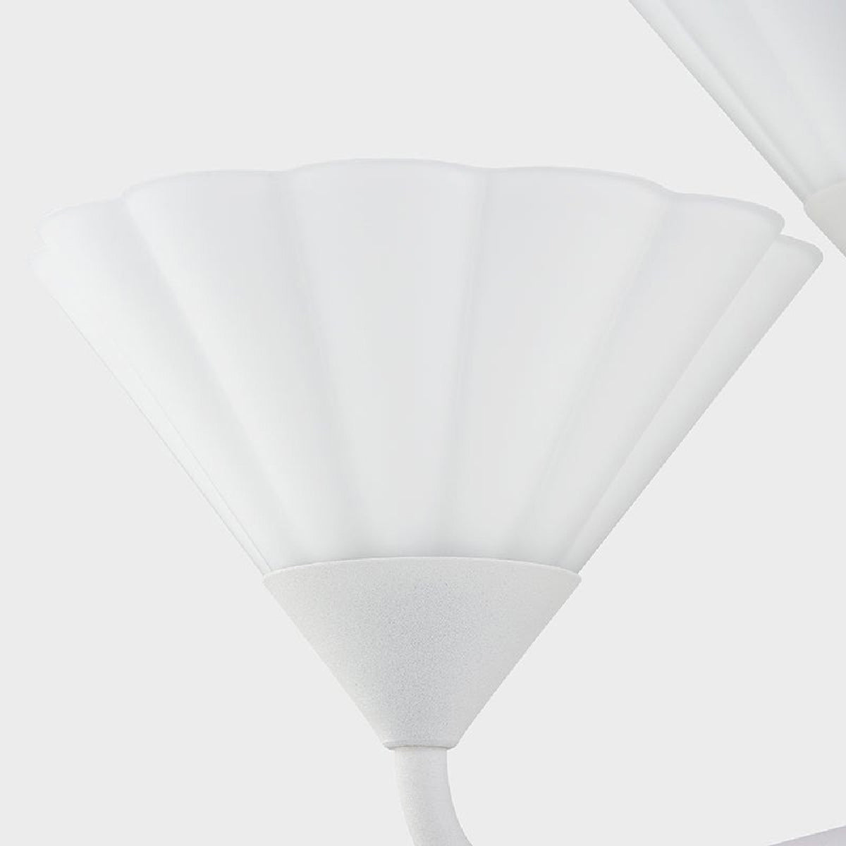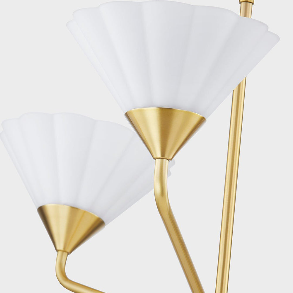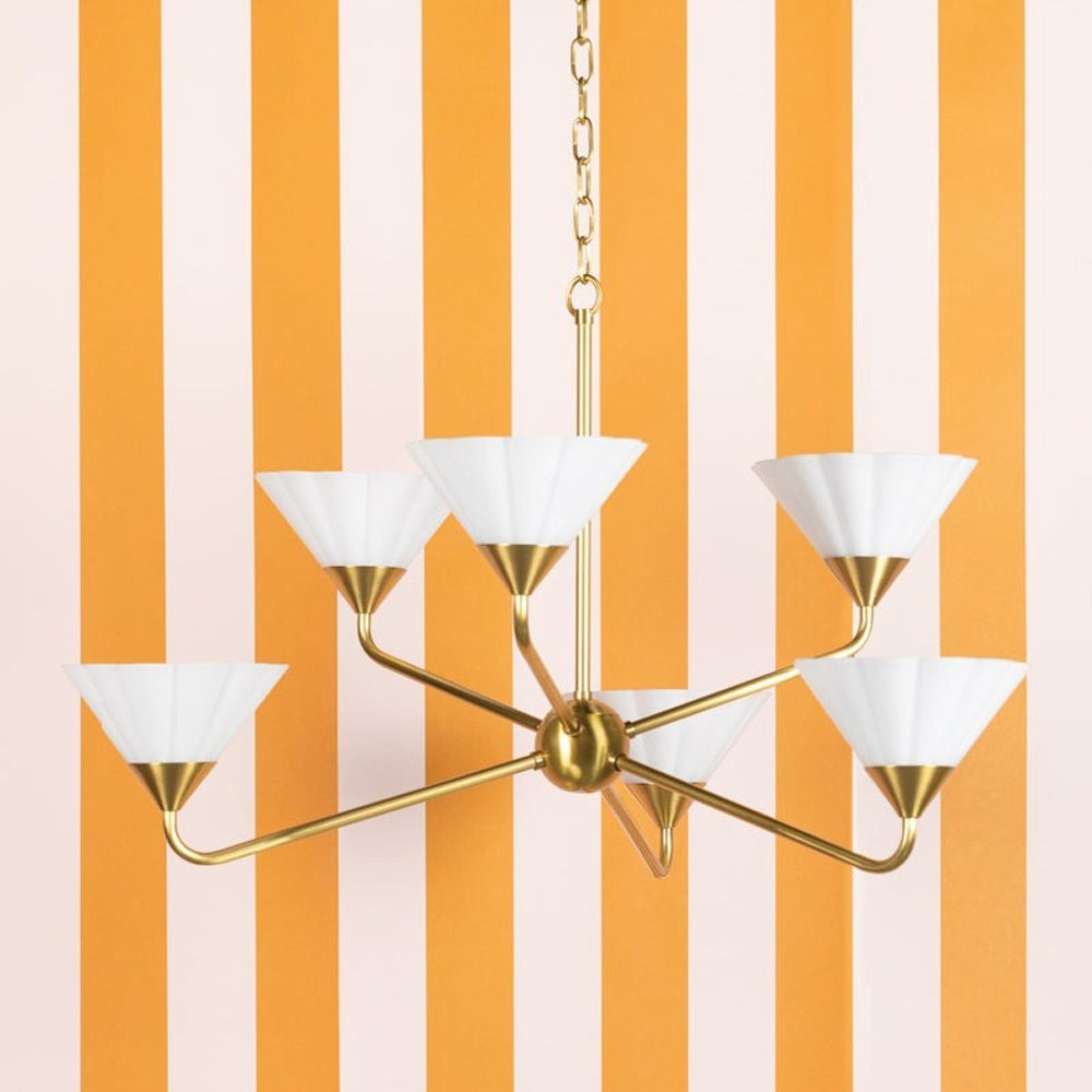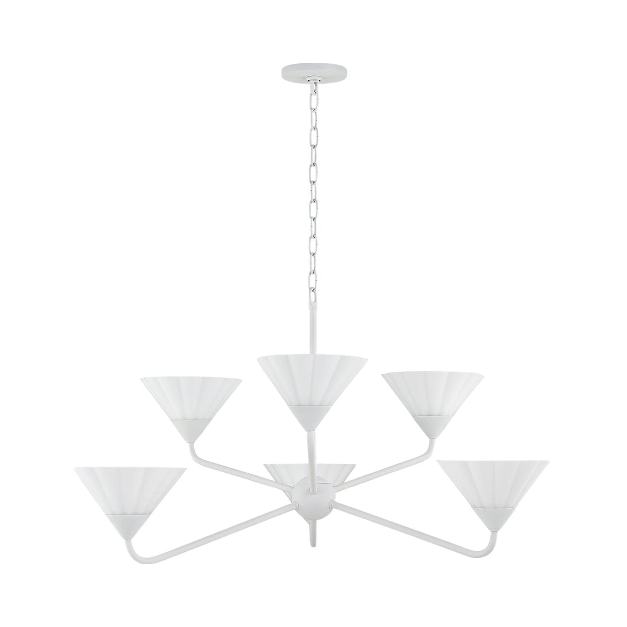 A central orb hosts six sloping, curved arms to create a bold silhouette for the Kelsey Chandelier from Mitzi. Its charming conical shades are crafted from ruffled, etched glass, delivering intriguing texture and dimension over your dining table or entryway. A fresh, refined finish complements to perfection.