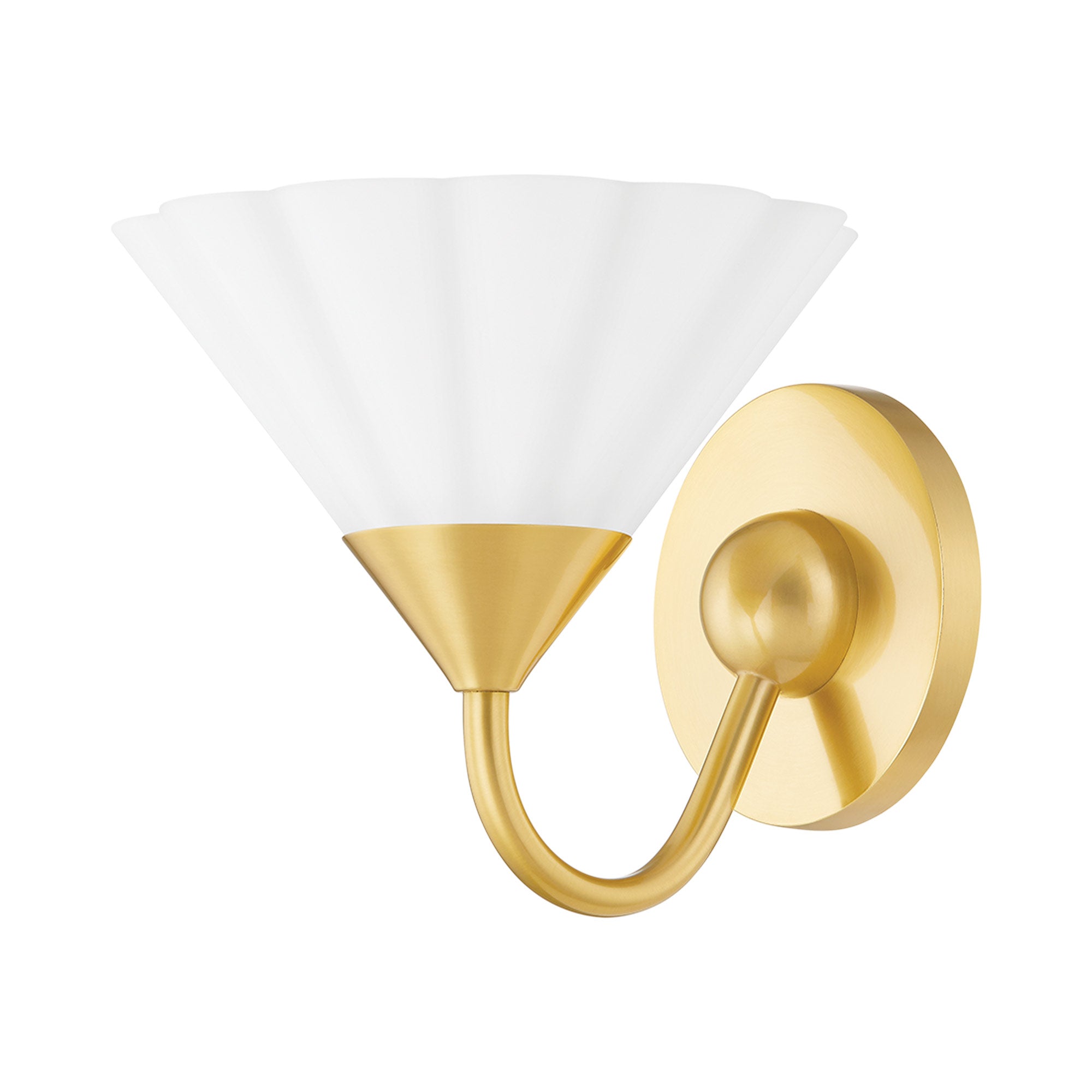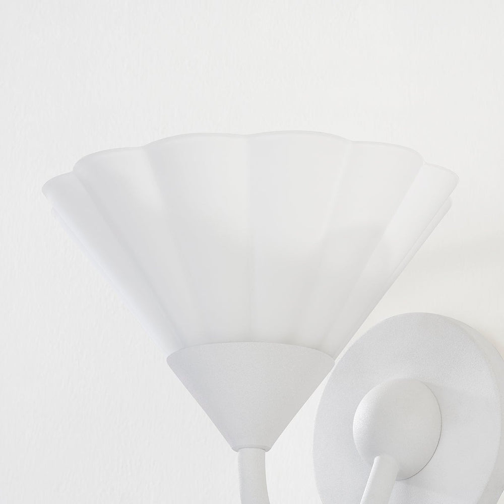 Ruffles add fluttering movement and character to a charming Kelsey Wall Light from Mitzi. Offering a fresh, refined look in living areas, bedrooms, and beyond, this sconce features a conical etched glass shade paired with a curved arm to create a sophisticated silhouette that sets the tone for surrounding decor.