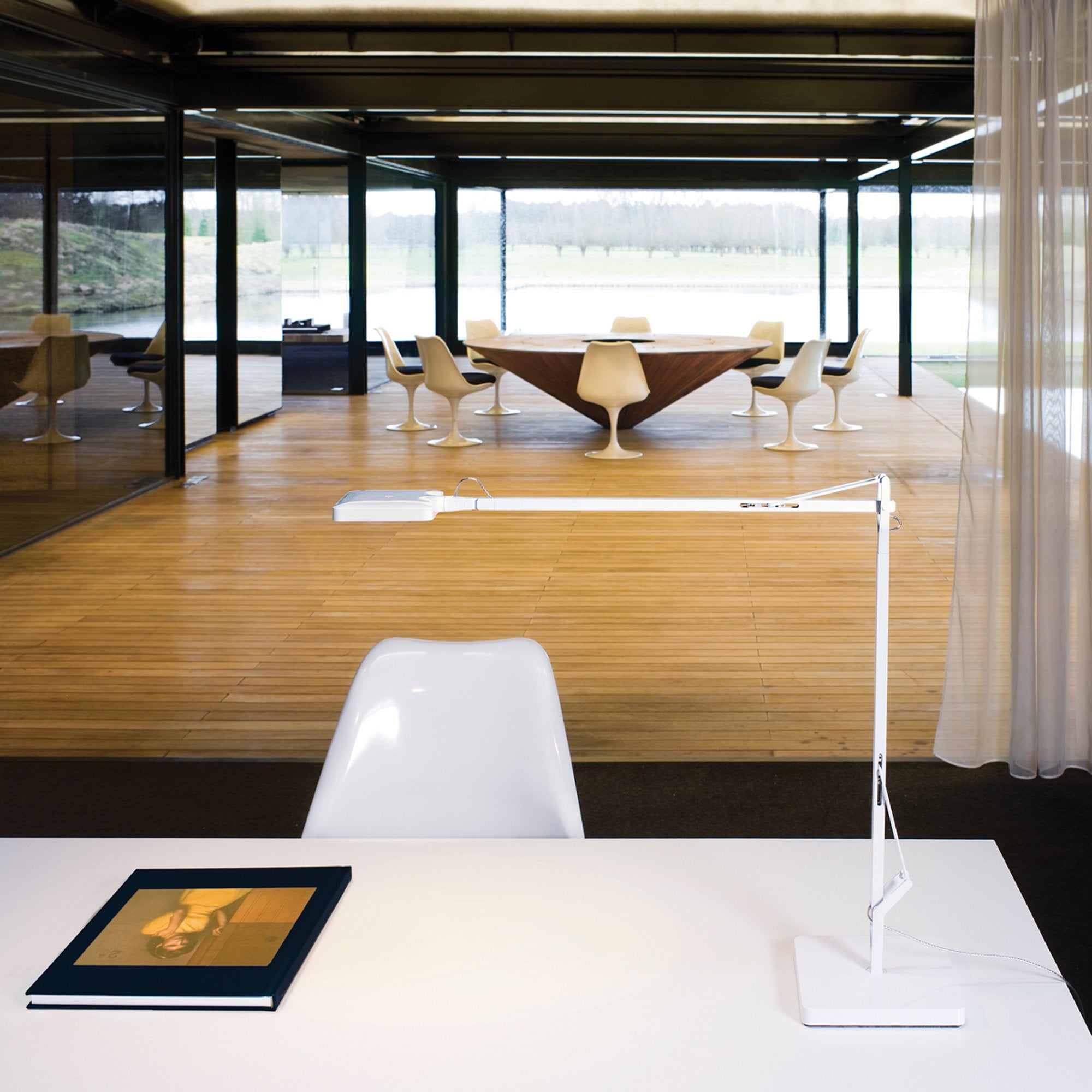 Add a modern edge to a minimalist décor scheme with the Kelvin LED Table Lamp from FLOS.