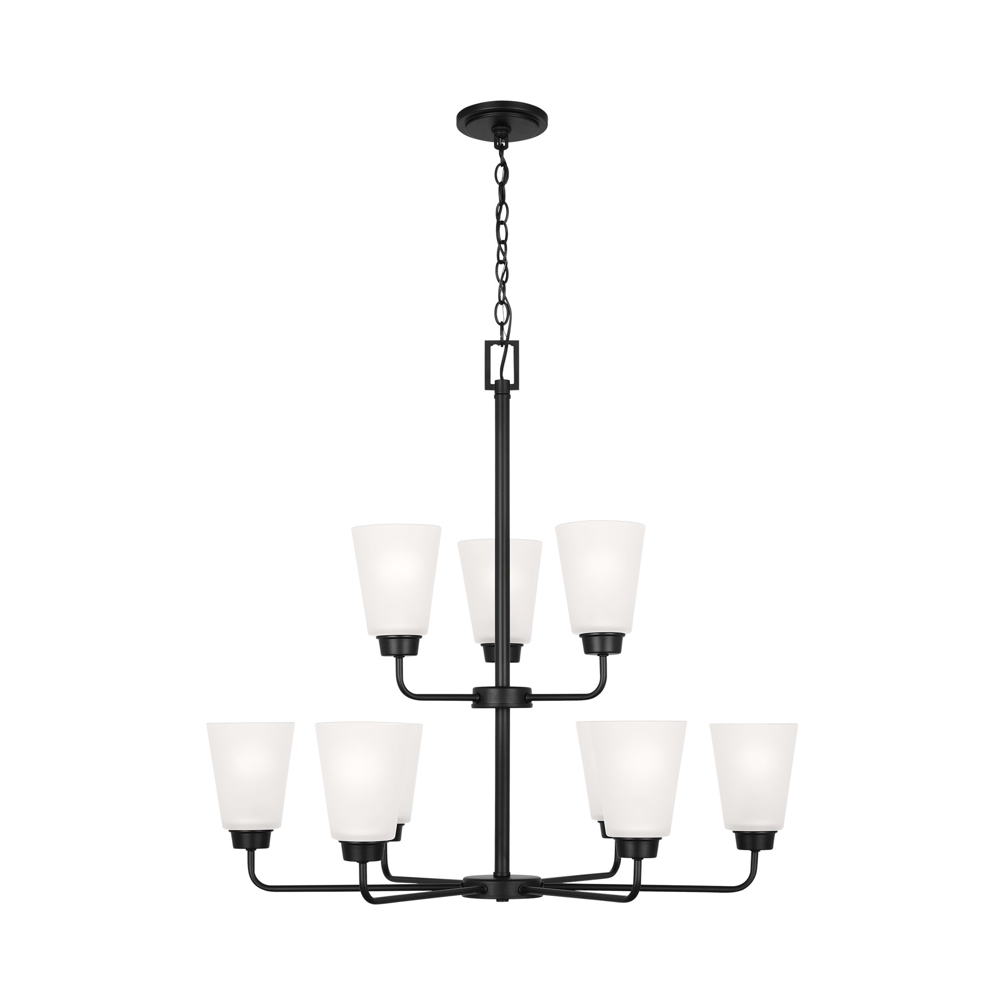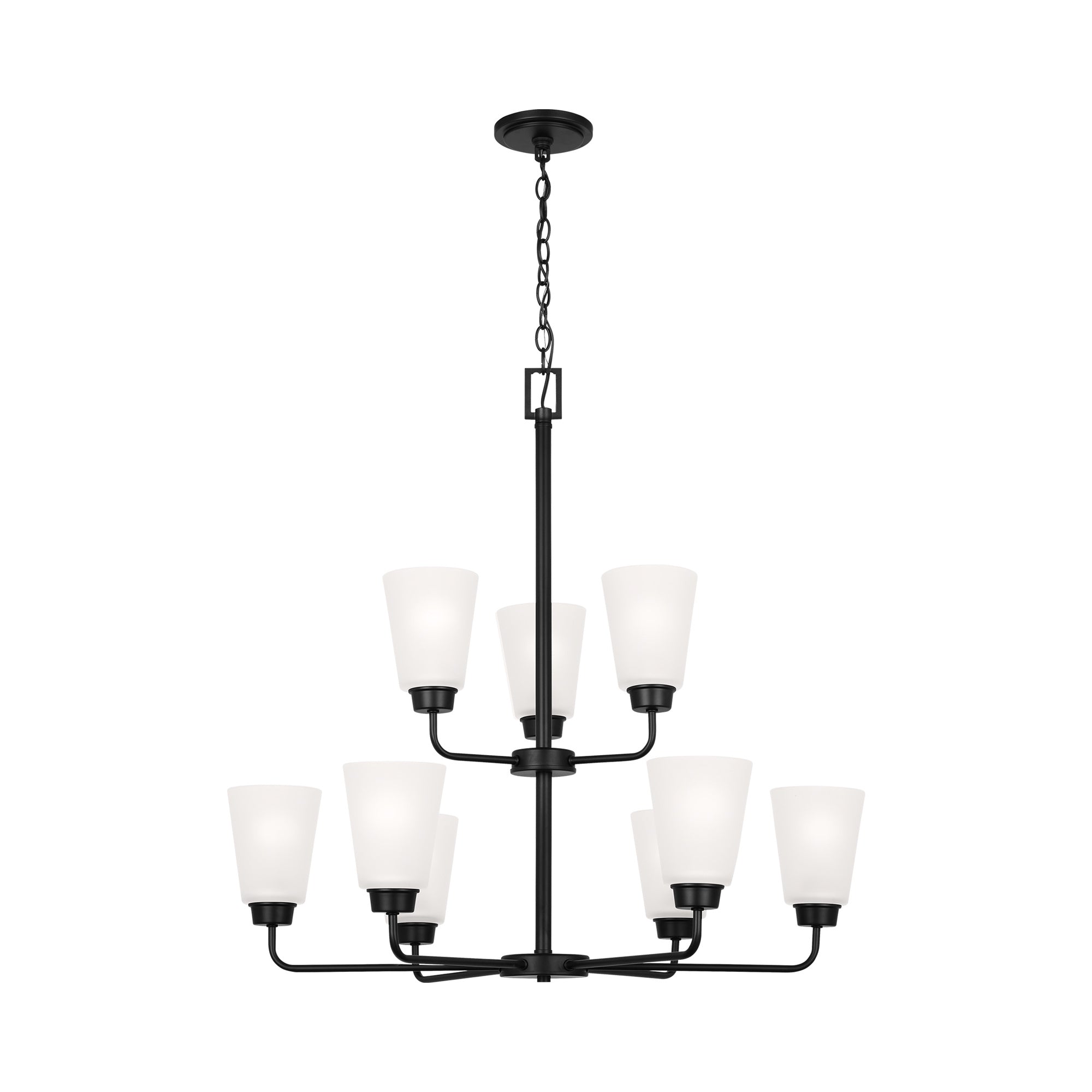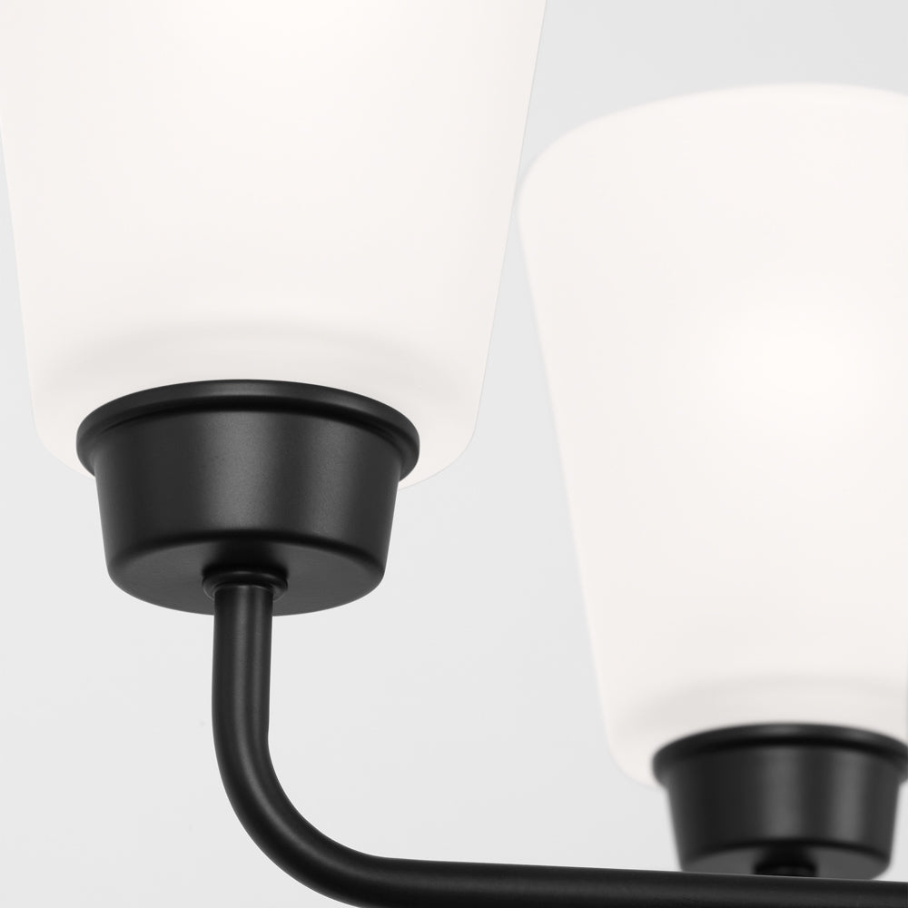 The multi-light design of a timeless fixture offers bold energy to a foyer or dining space. The Kerrville Chandelier from Generation Lighting blends dramatic dark metal framing with milky white shades, making a statement of impact and adding plenty of illumination.