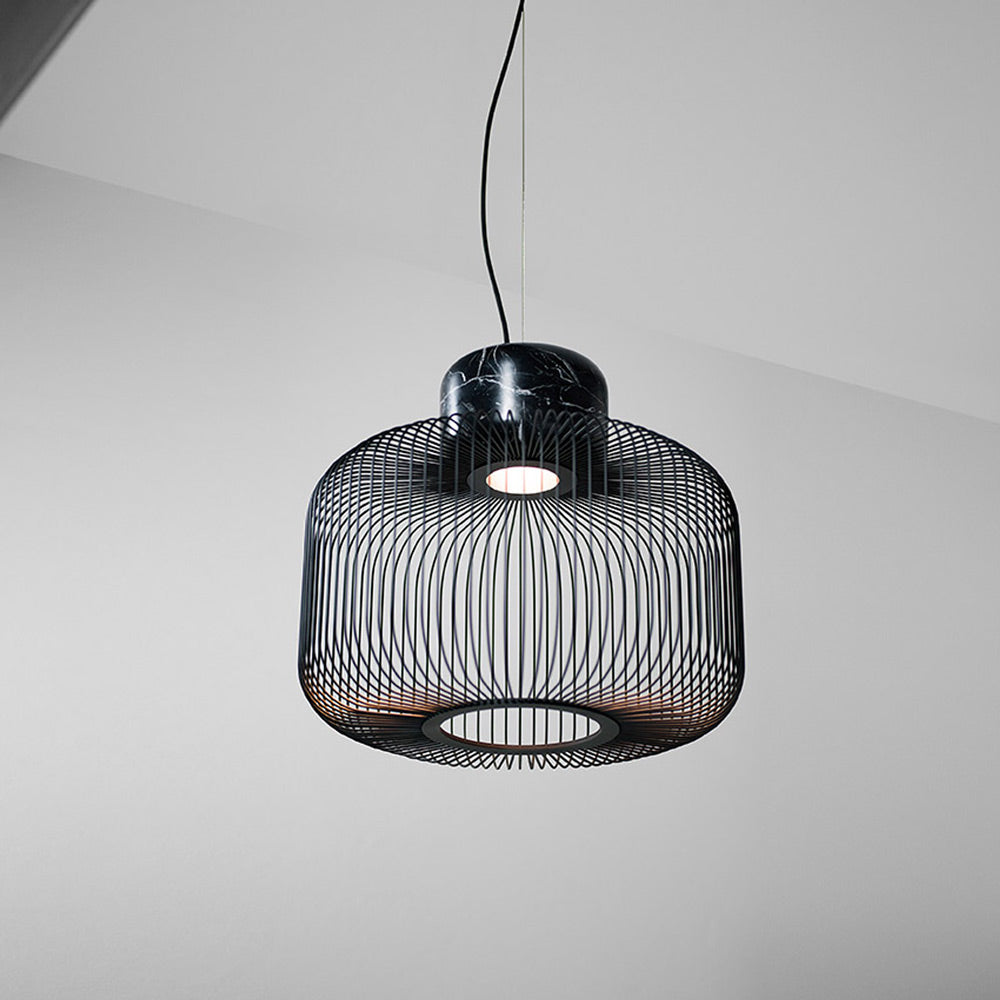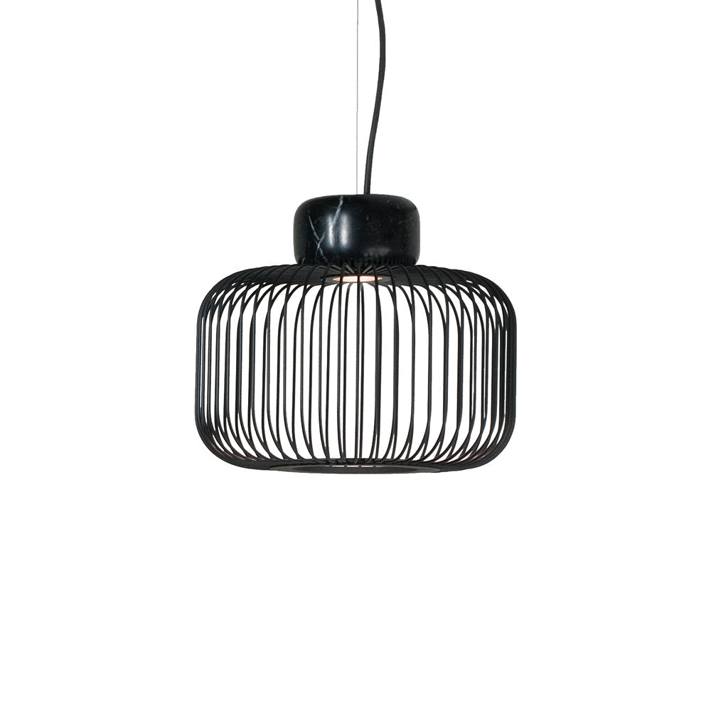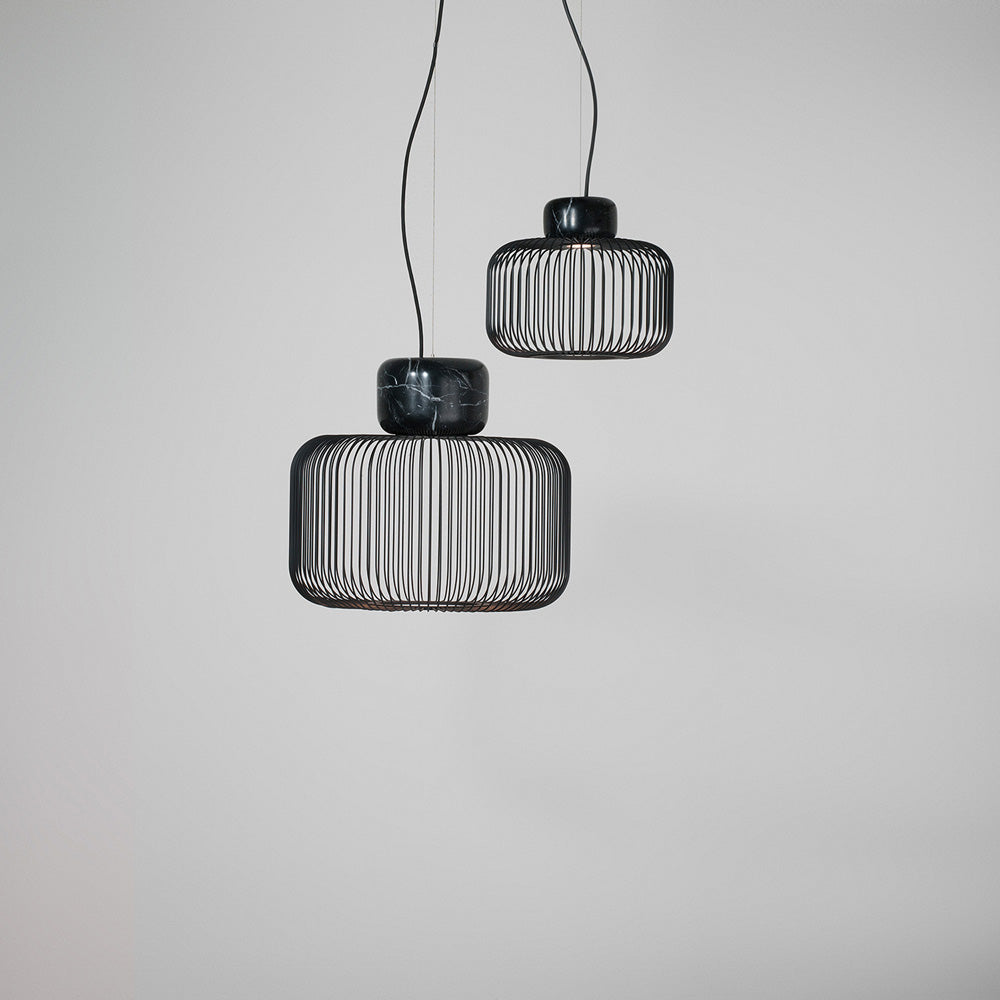 Suspend the Keshi S Pendant Light from B.Lux over dining tables and more, presenting a breezy open and airy feel demonstrated in the cage-inspired lantern shade made up of slim metal bars. Adding weight to this charming suspension style pendant light is a classic and dramatic hunk of black marble. Timeless elements and a utilitarian aesthetic mingle together to offer a bohemian-like look and feel.