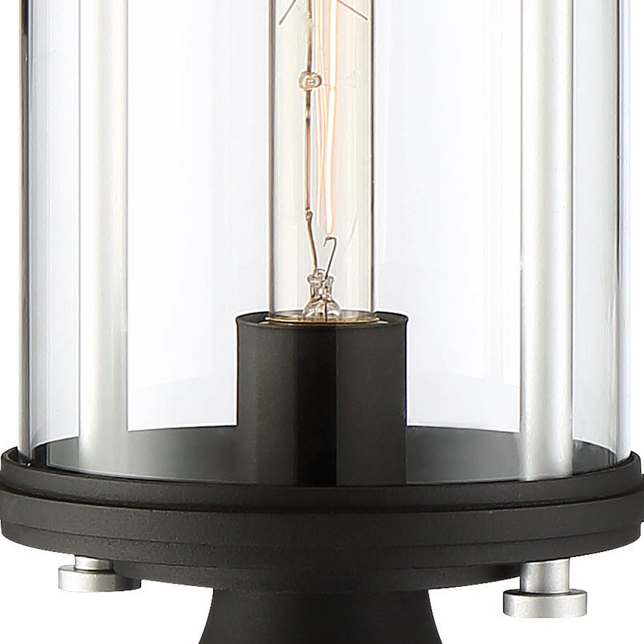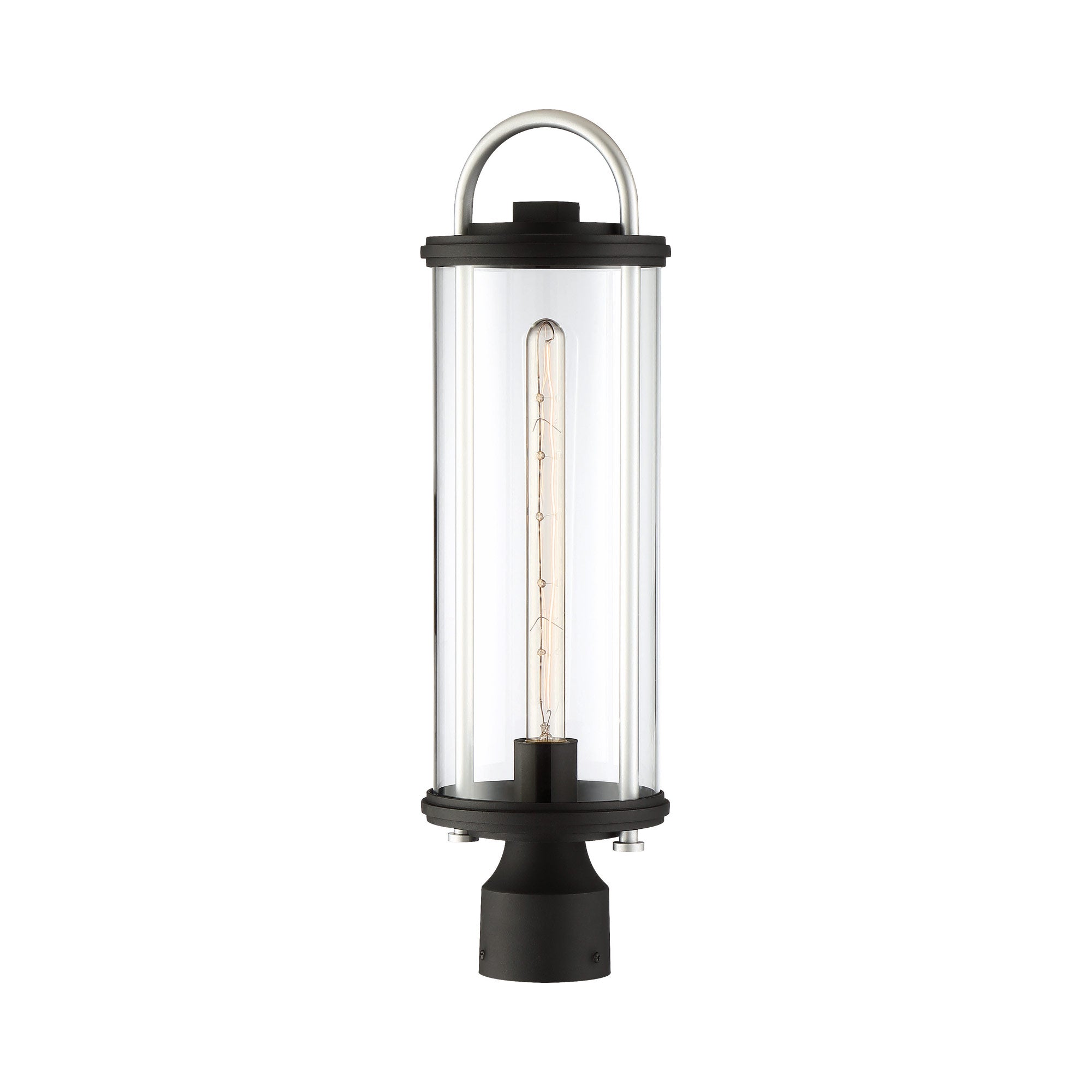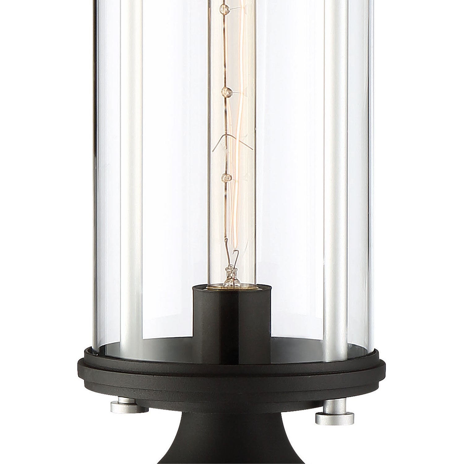 A focus on clear, sparkling glass begins a contemporary boost to the Keyser Outdoor Post Light from The Great Outdoors, a fixture that stylizes and illuminates a custom landscaped space or pathway. A clear glass cylinder shade joins traditional metal elements with a black finish and silver accents. Practicality and beauty combine to offer an eloquent fixture embellishing any outdoor space.