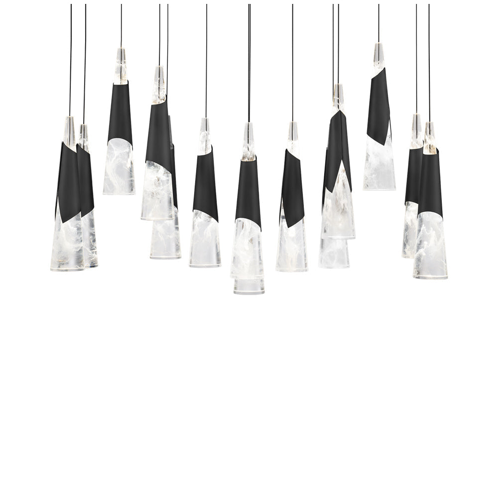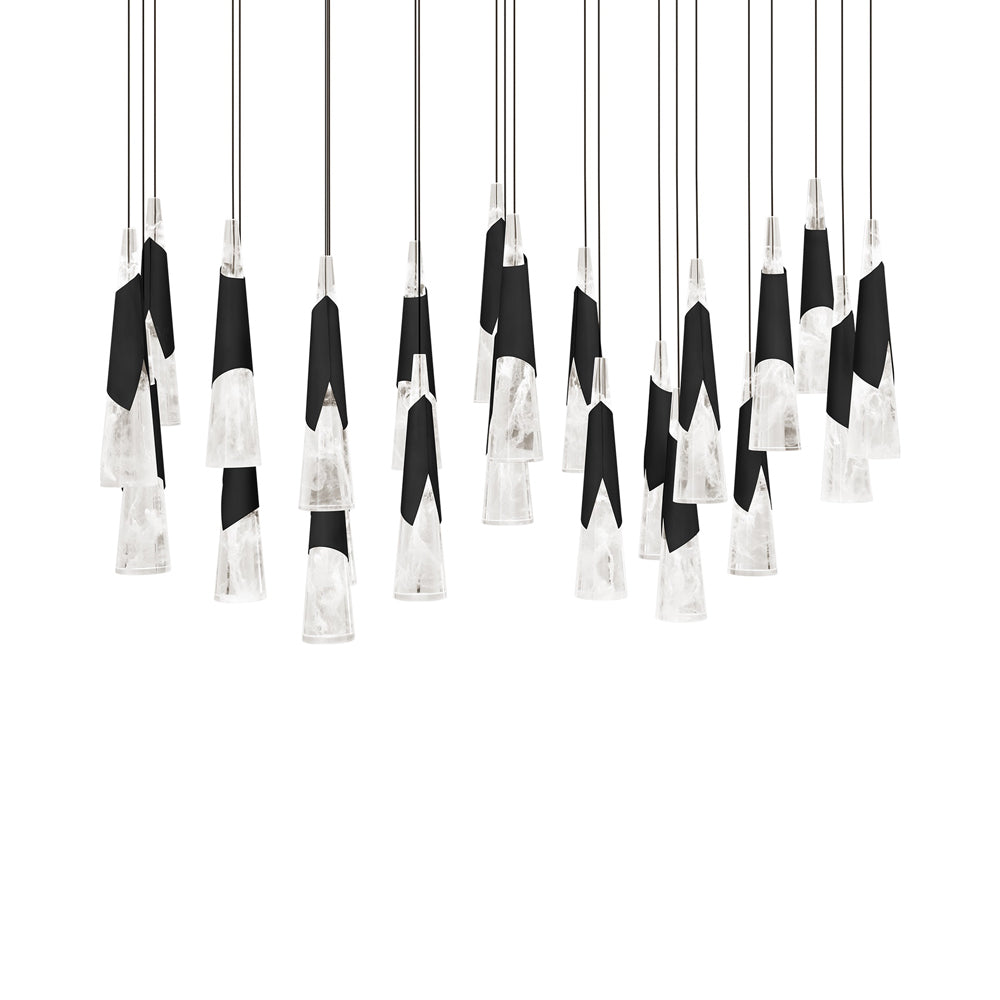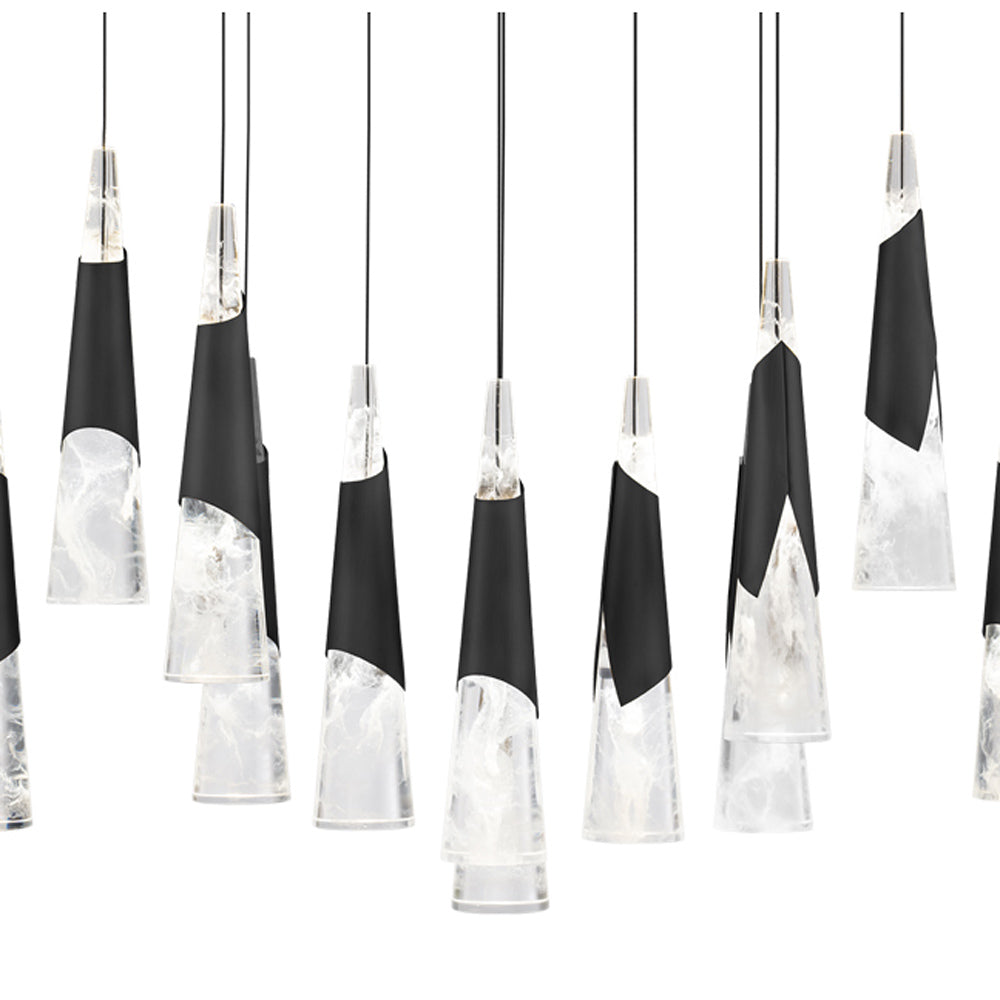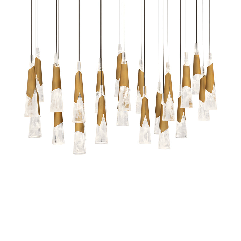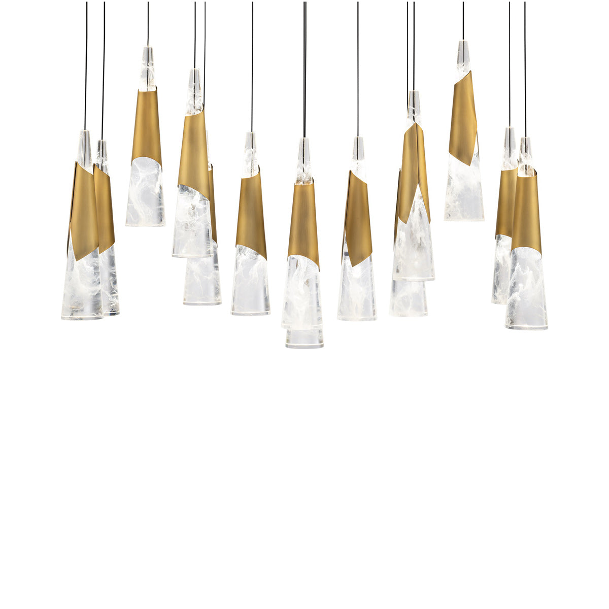 A cheeky play on the Scottish garment, the Kilt LED Linear Pendant Light from Modern Forms pairs a metallic skirt with hazy acrylic to diffuse illumination and create an inviting ambiance. The conical silhouette of each light lends a sense of movement and energy, beautiful over a living or dining room.