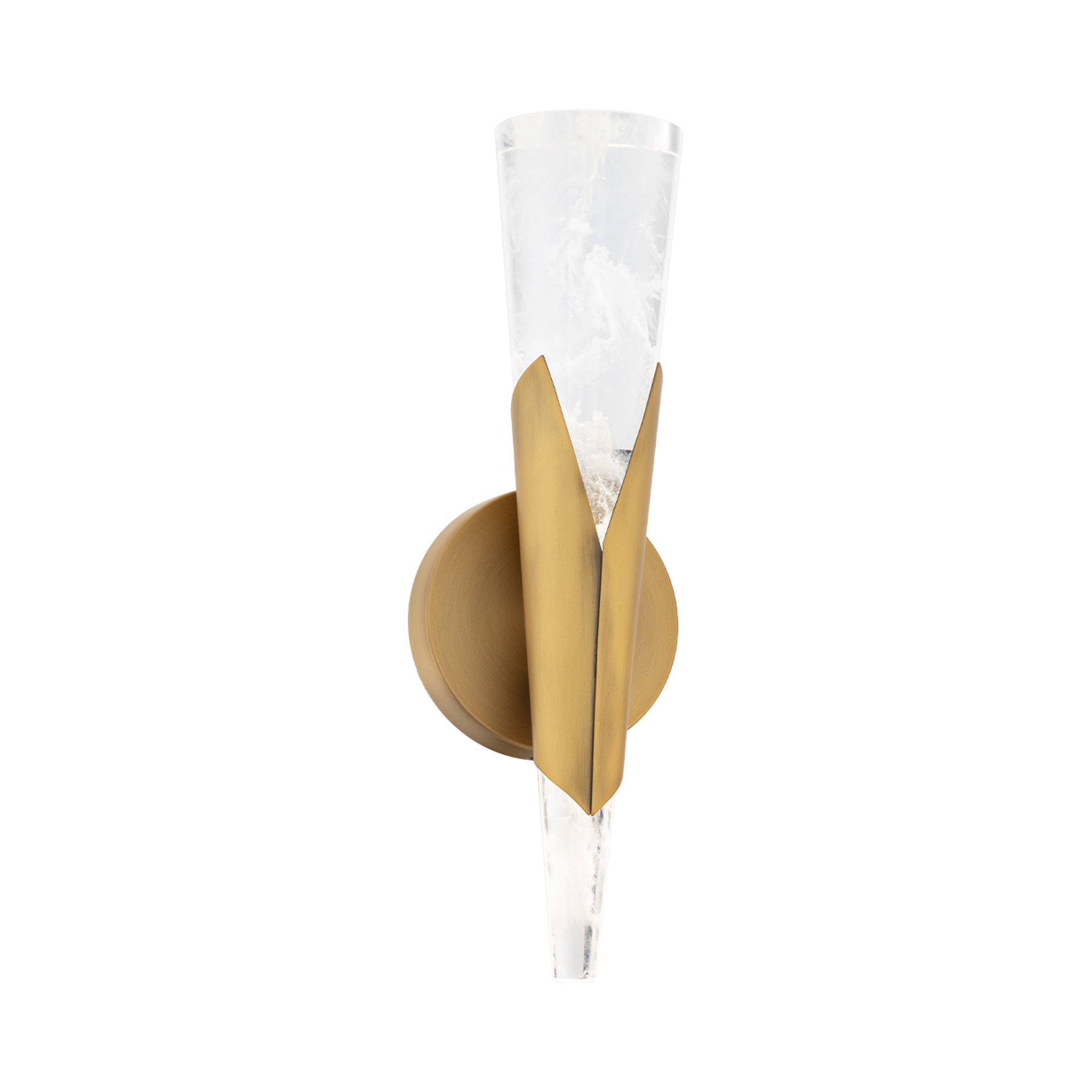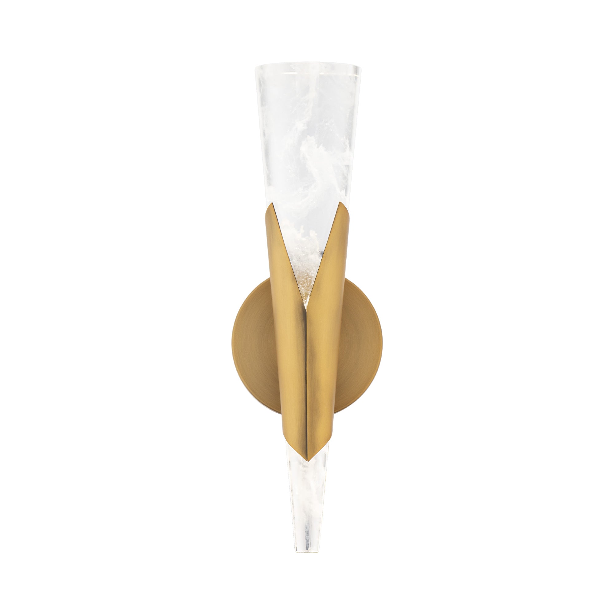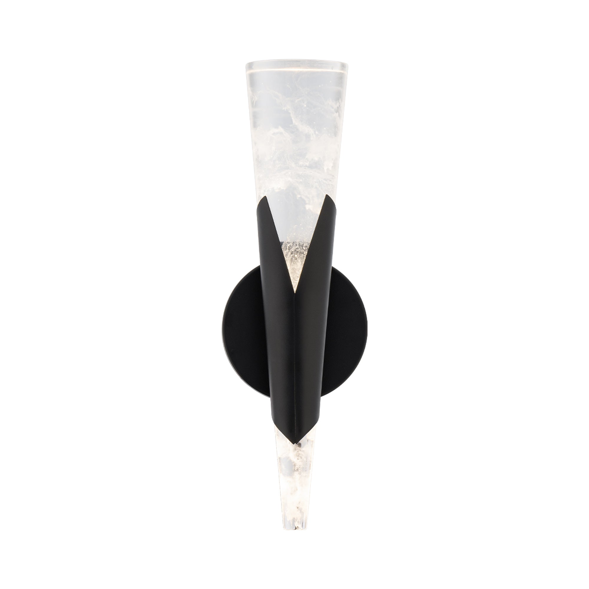 Up and down lighting emanate through hazy cloud acrylic in the impressive Kilt LED Wall Light from Modern Forms. Its intriguing conical silhouette evokes an elegant torch, with a gleaming wrapped band of metal that creates a sense of timeless sophistication. Add a pair flanking an entry or mantel, or choose this energy efficient fixture for your elegant living room.