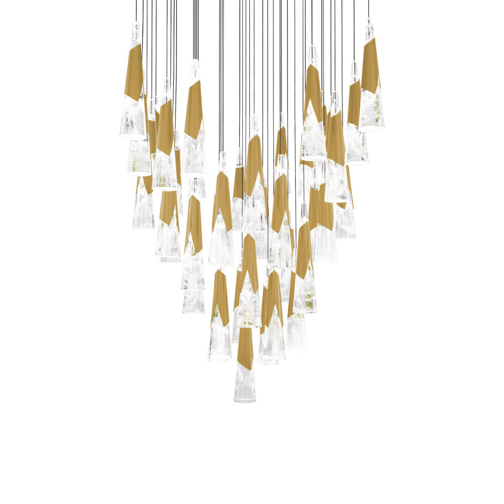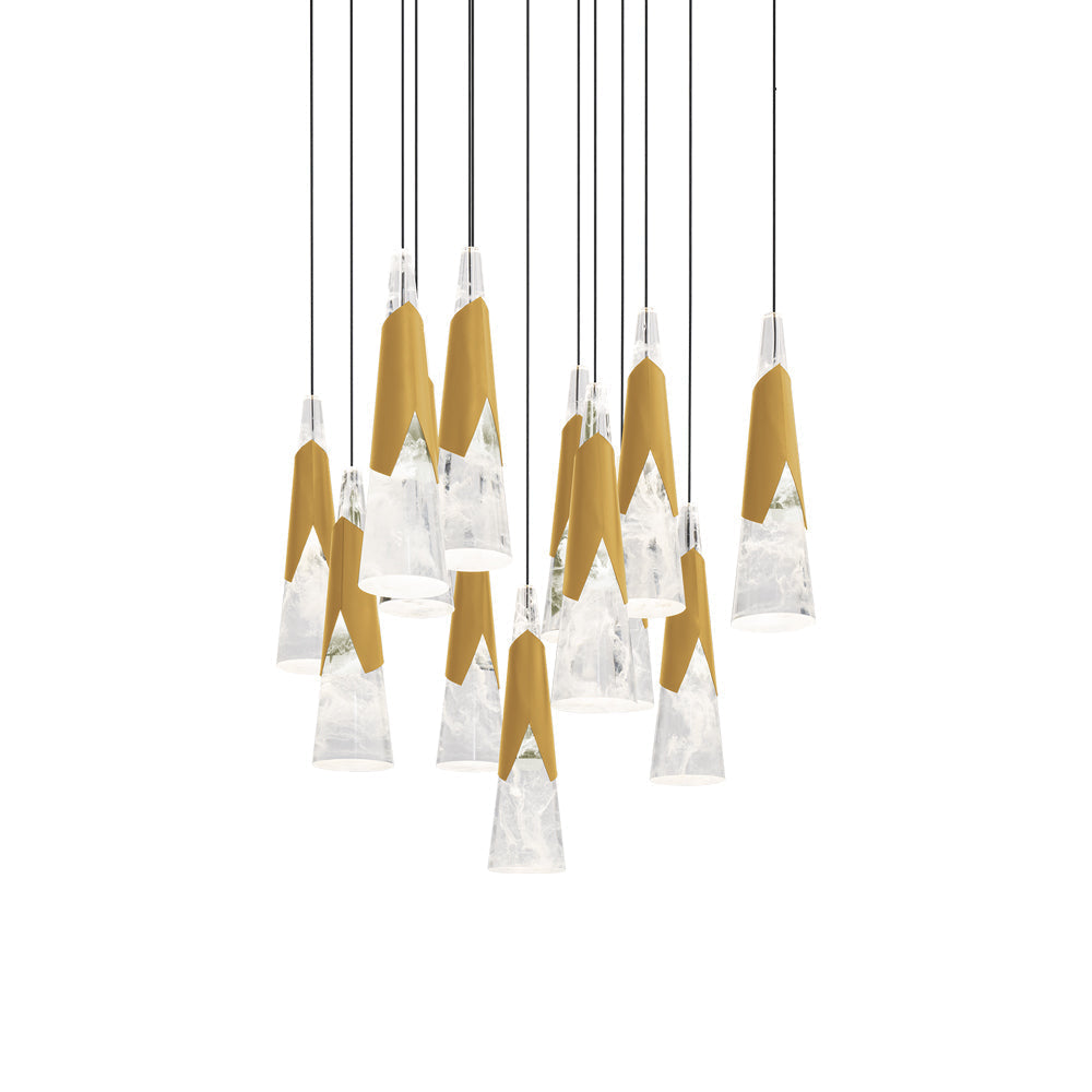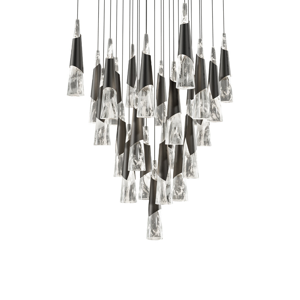 Radiant illumination glows beautifully from cones of hazy acrylic in the Kilt Square LED Pendant Light from Modern Forms. Metallic skirts add polished precision to the look, creating a fresh, sophisticated presentation over your living or dining room.