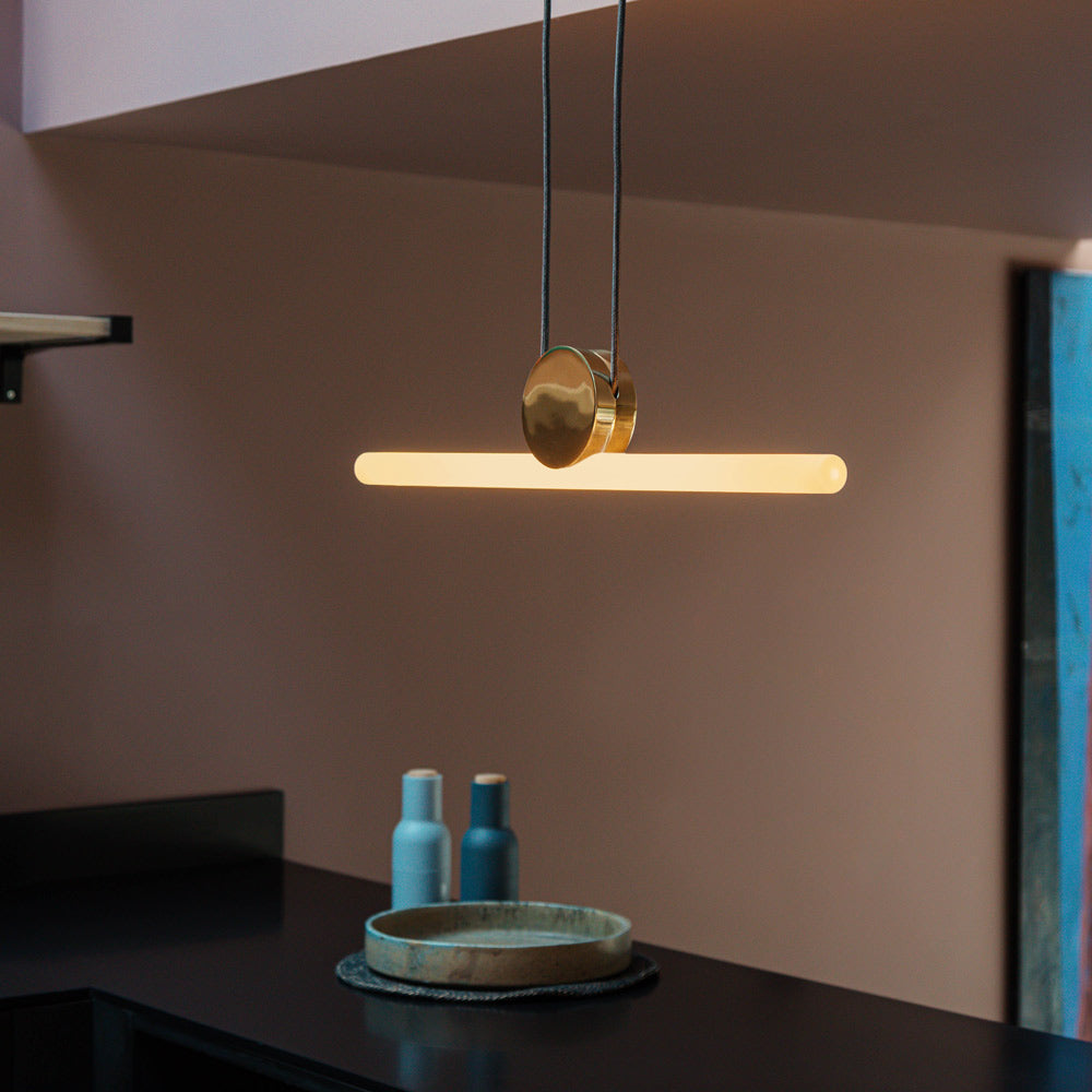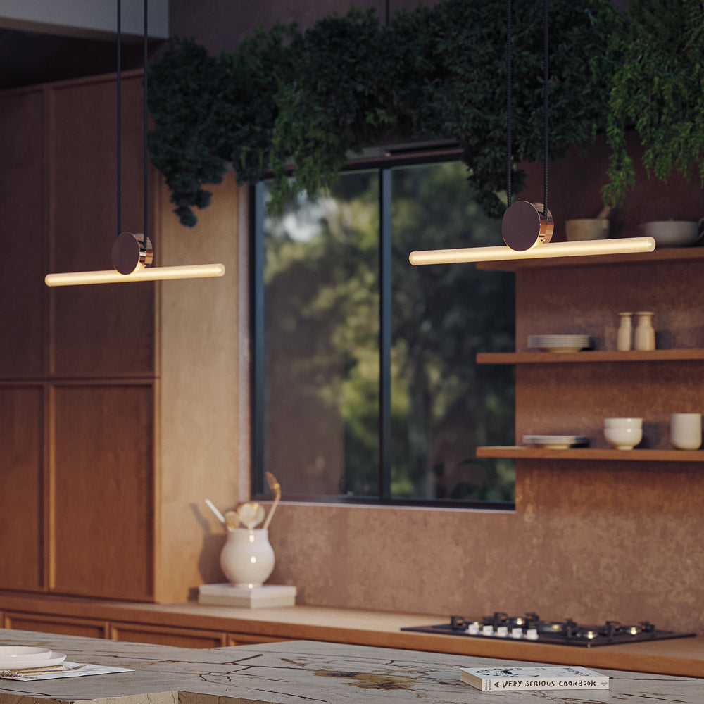Ingenious design meets adjustable cabling to create the balanced perspective of the Kilter LED Pendant Light from Tala. It adds intriguing spatial flair, with a linear silhouette that's particularly appealing over a kitchen island or dining table. It even blends in a contemporary game room, offering bright illumination perfect for play.