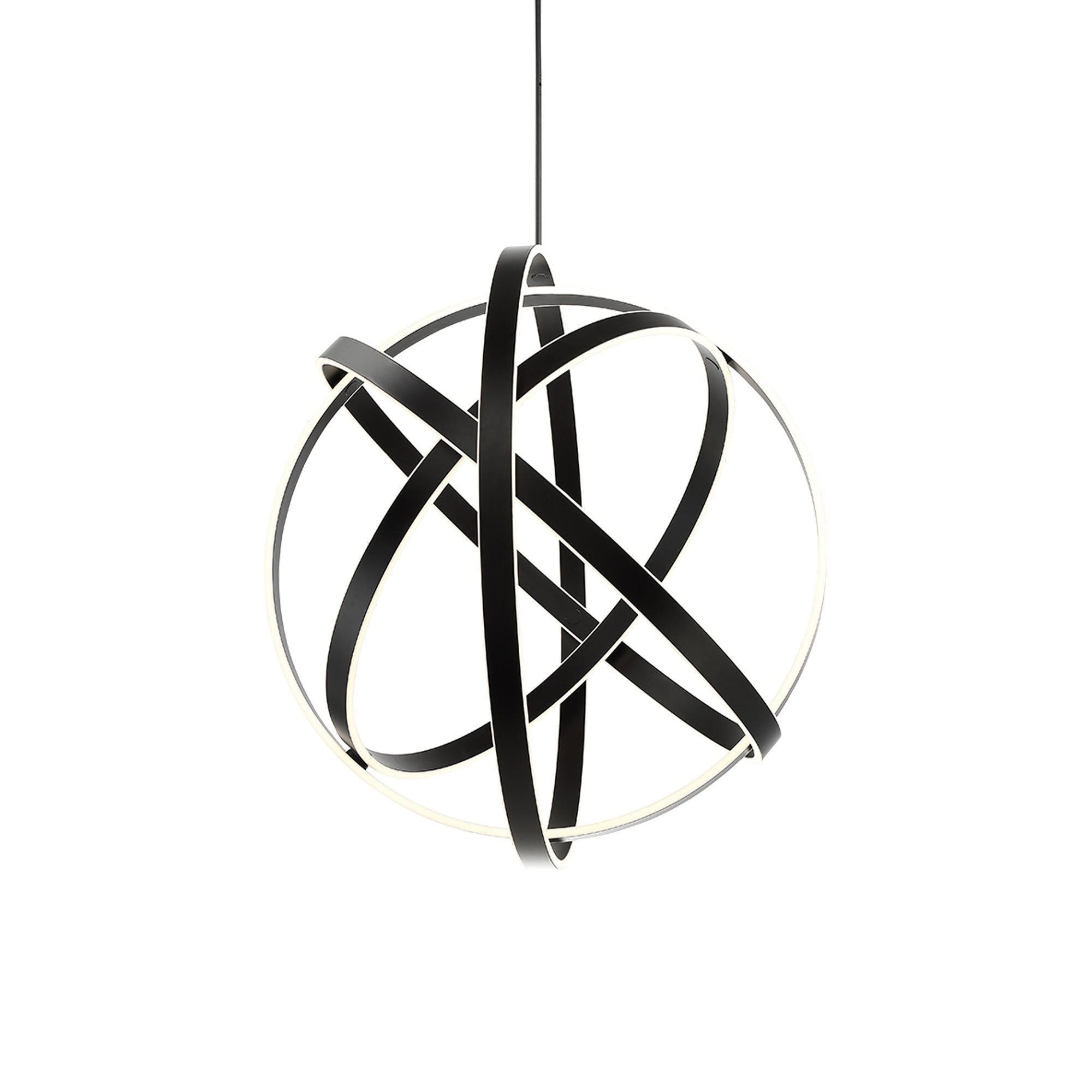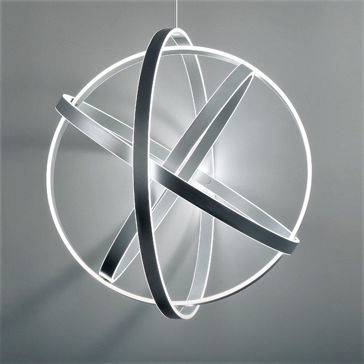 Whether you think of gyroscopes, the atomic structure or da Vinci’s “L’Uomo Vitruviano,” Kinetic has deep roots in science, exemplified by brilliant edge-lit LED panels that broadcast 360-degrees of seamless, even light. Even better, those rings are adjustable for a personalized look. New and noteworthy here is the smaller 28” size and a matte black finish but you can still get the 38” and the original titanium too.