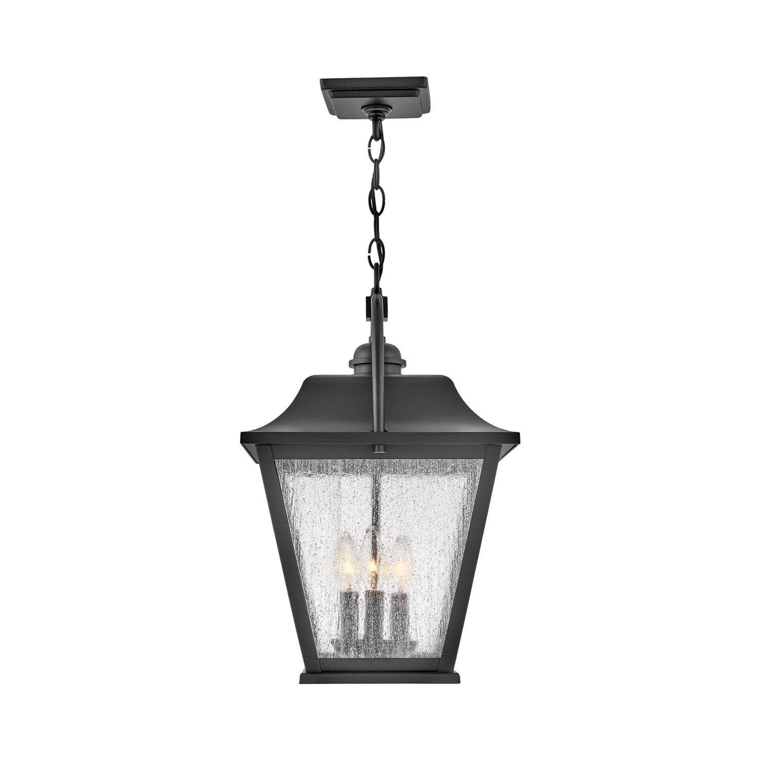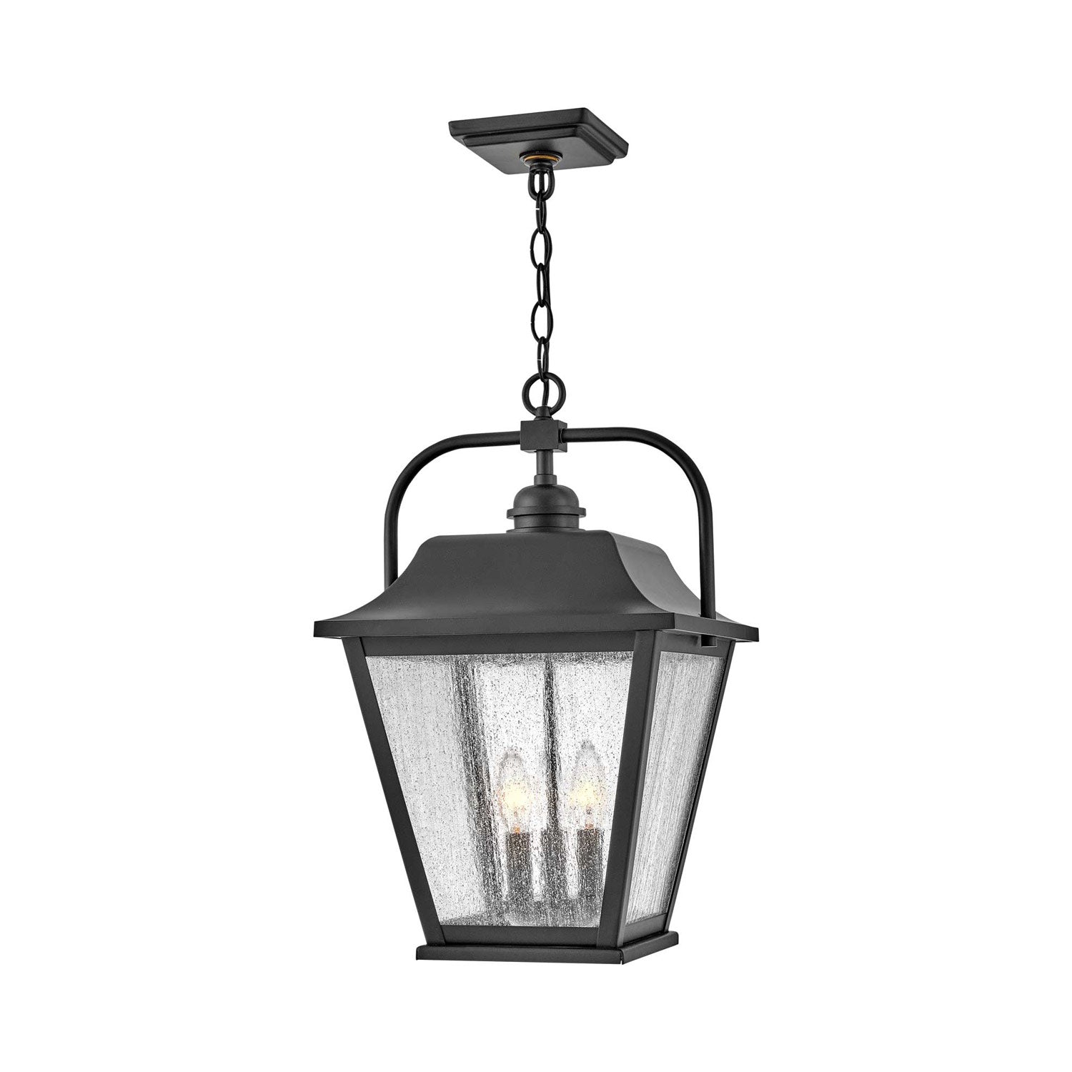 Marrying traditional design elements with updated sensibilities, the Kingston Outdoor Pendant Light from Hinkley is elegant and effortless over an entry or porch. Its oversized lantern profile is defined with a sweeping roof design paired with tapering panes of clear seedy glass that create a soft rainfall effect no matter the weather. In crisp black, this pendant is a stellar addition dotting a porch or covered patio.