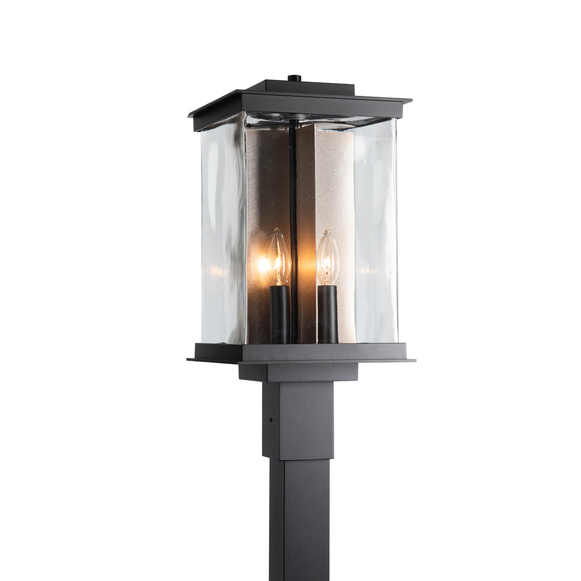 Highlighted the subtle variation of blown glass, the Kingston Outdoor Post Light from Hubbardton Forge creates a structured but earthy aura for any pathway.