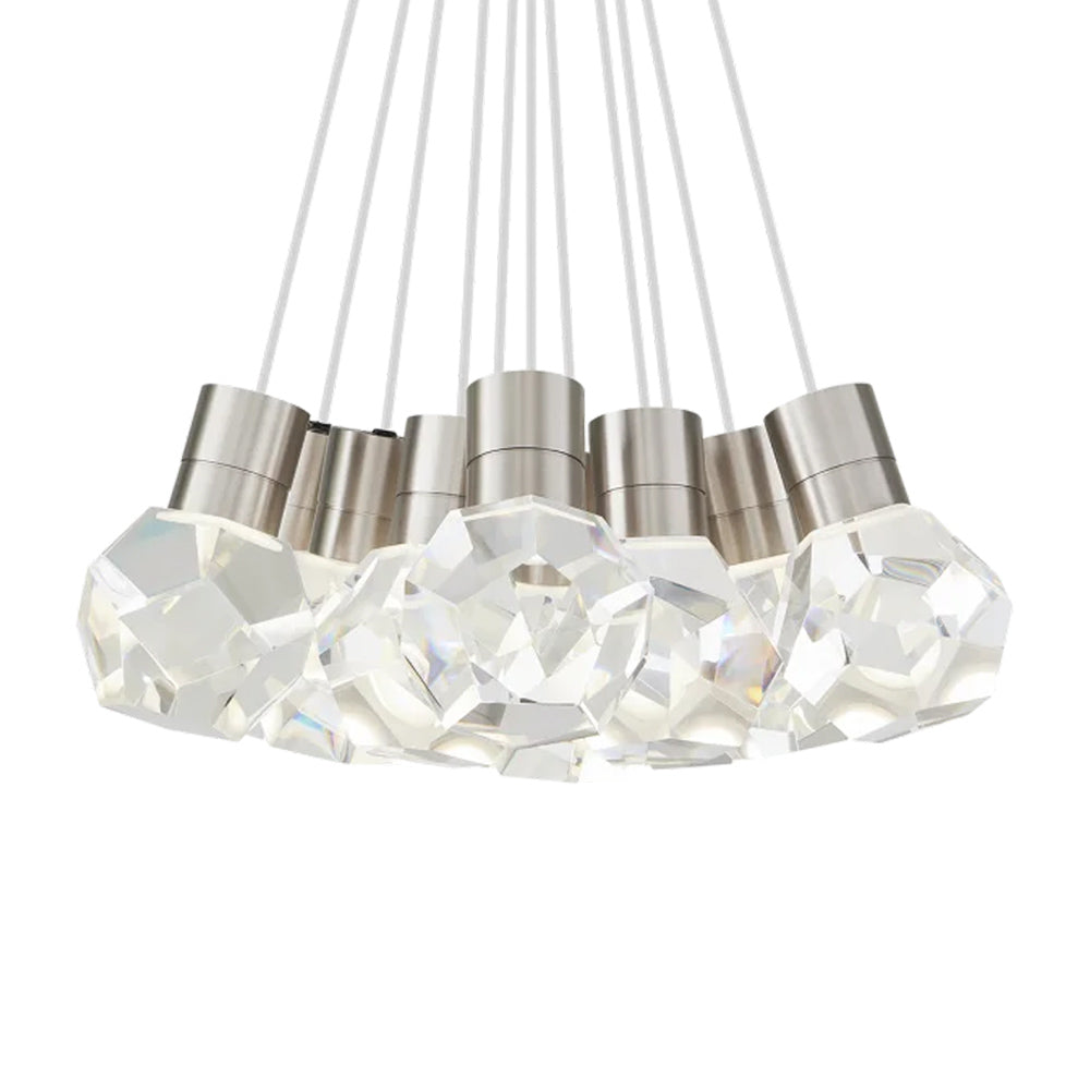 An effervescent cluster of faceted crystal shades create sparkling, prismatic flair for the Kira LED Multi Light Pendant Light from Visual Comfort Modern. Inspired by gorgeous gemstones, the glittering effect is simple and sleek with maximum visual impact in a refined living or dining space. Elegant hardware and concealed LEDs complete the look and ensure energy efficiency.