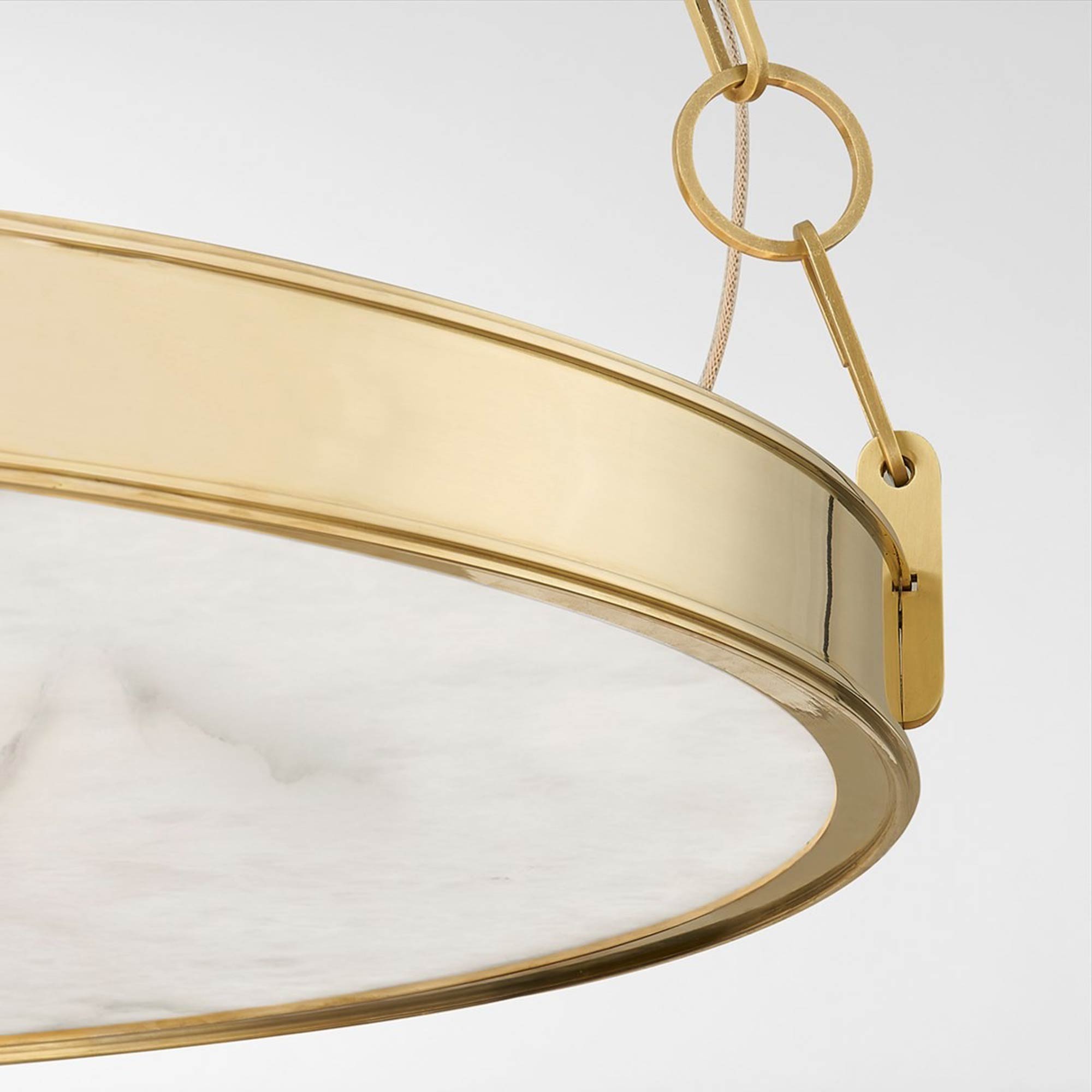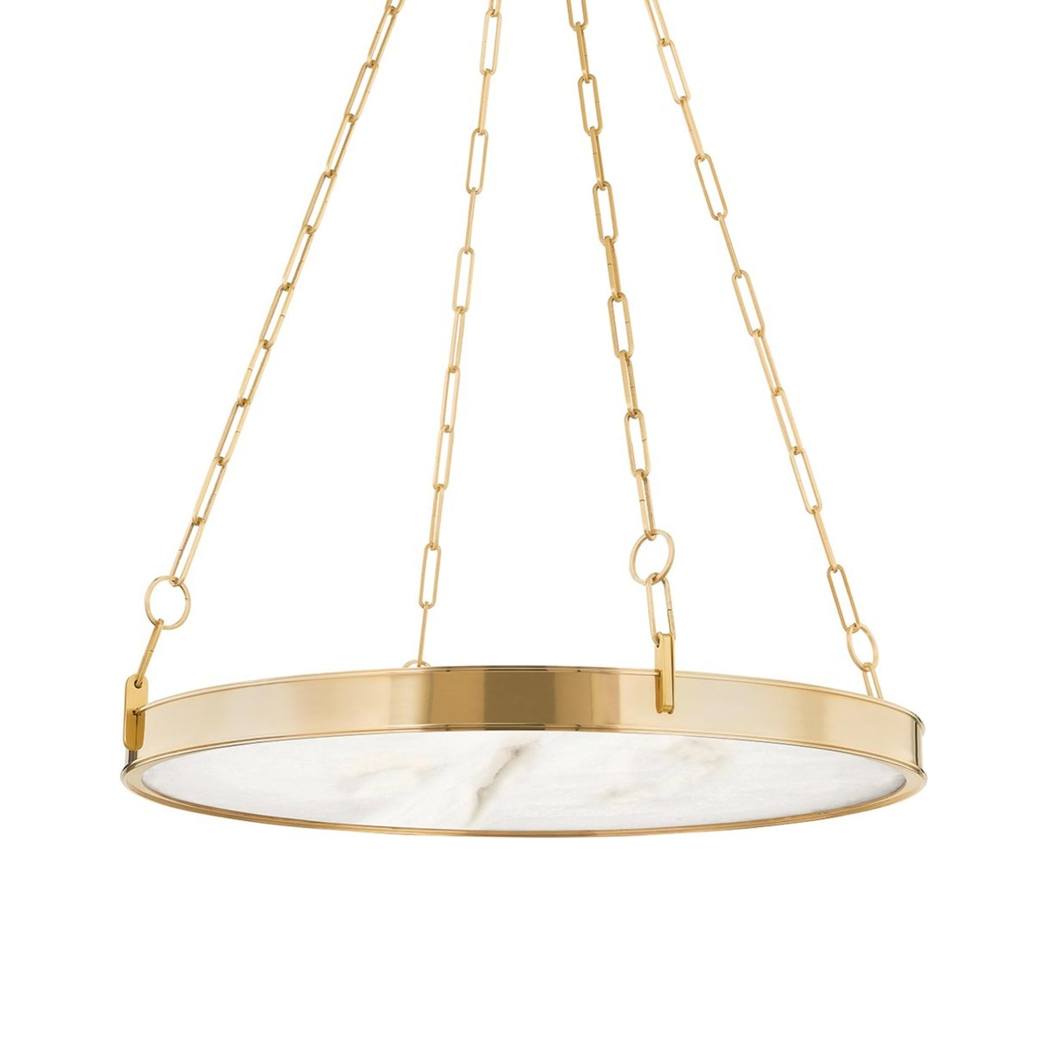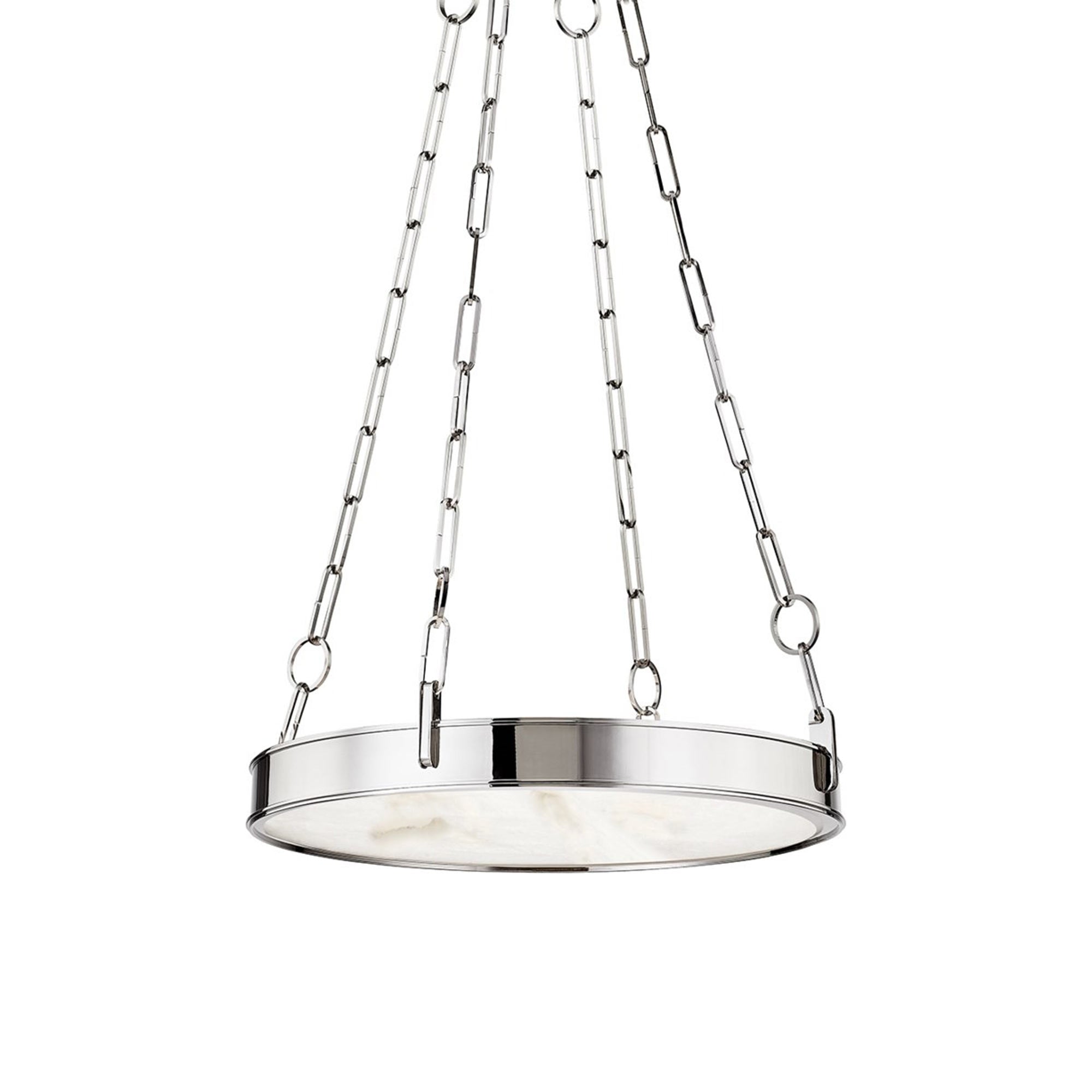 Explore a blend of old and new in lighting with the Kirby LED Chandelier from Hudson Valley Lighting. Simple design elements make good use of gleaming metal framing with bold cable chain suspension. Chic white Spanish alabaster forms a diffuser that softens output of energy-efficient integrated LED lighting.