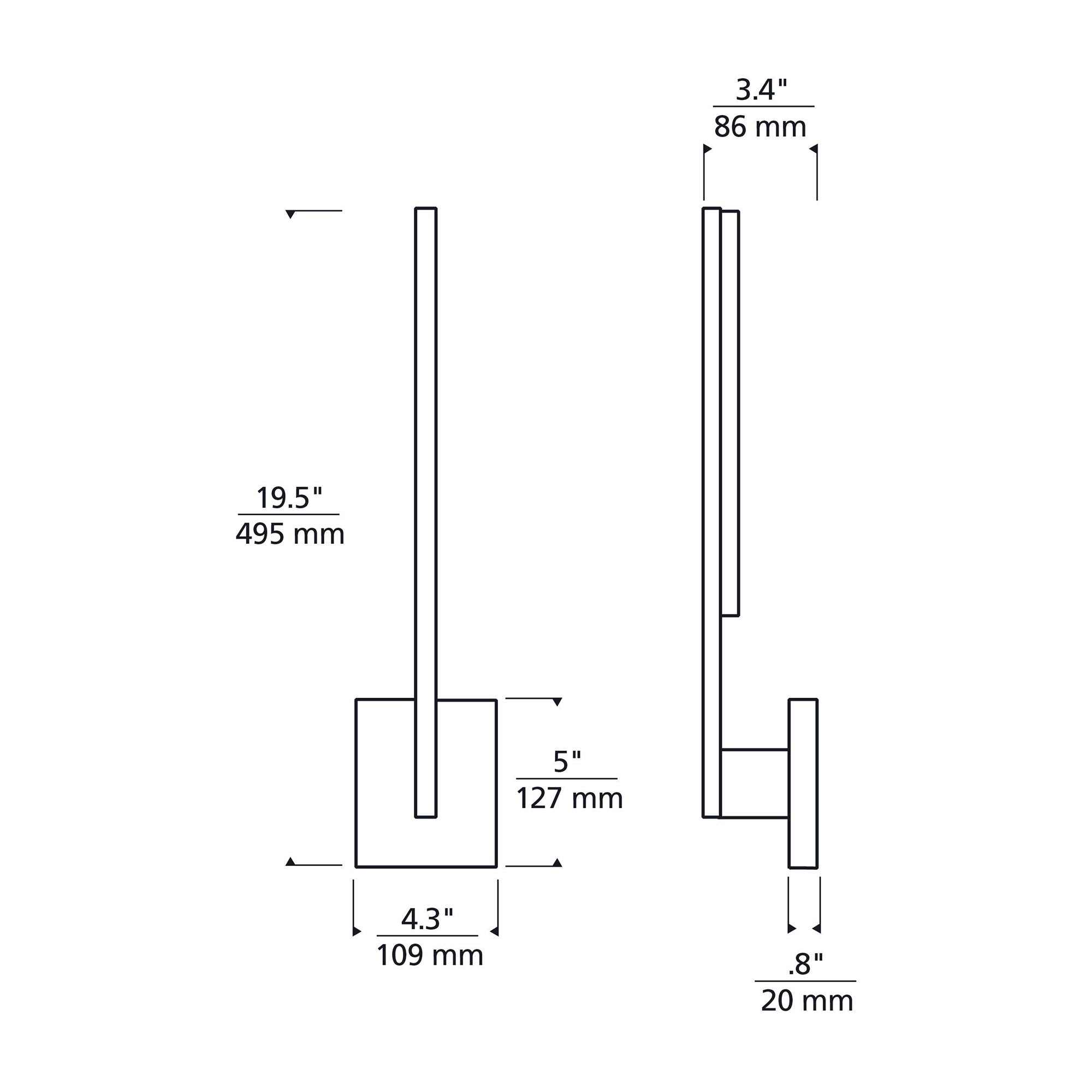 - Small: 4.3"W X 19.5"H; 3.4" Extension