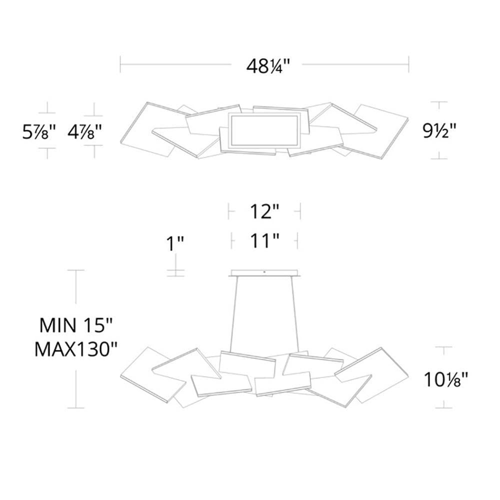 - Dimensions: 48.25"W X 10.13"H; 130" max height