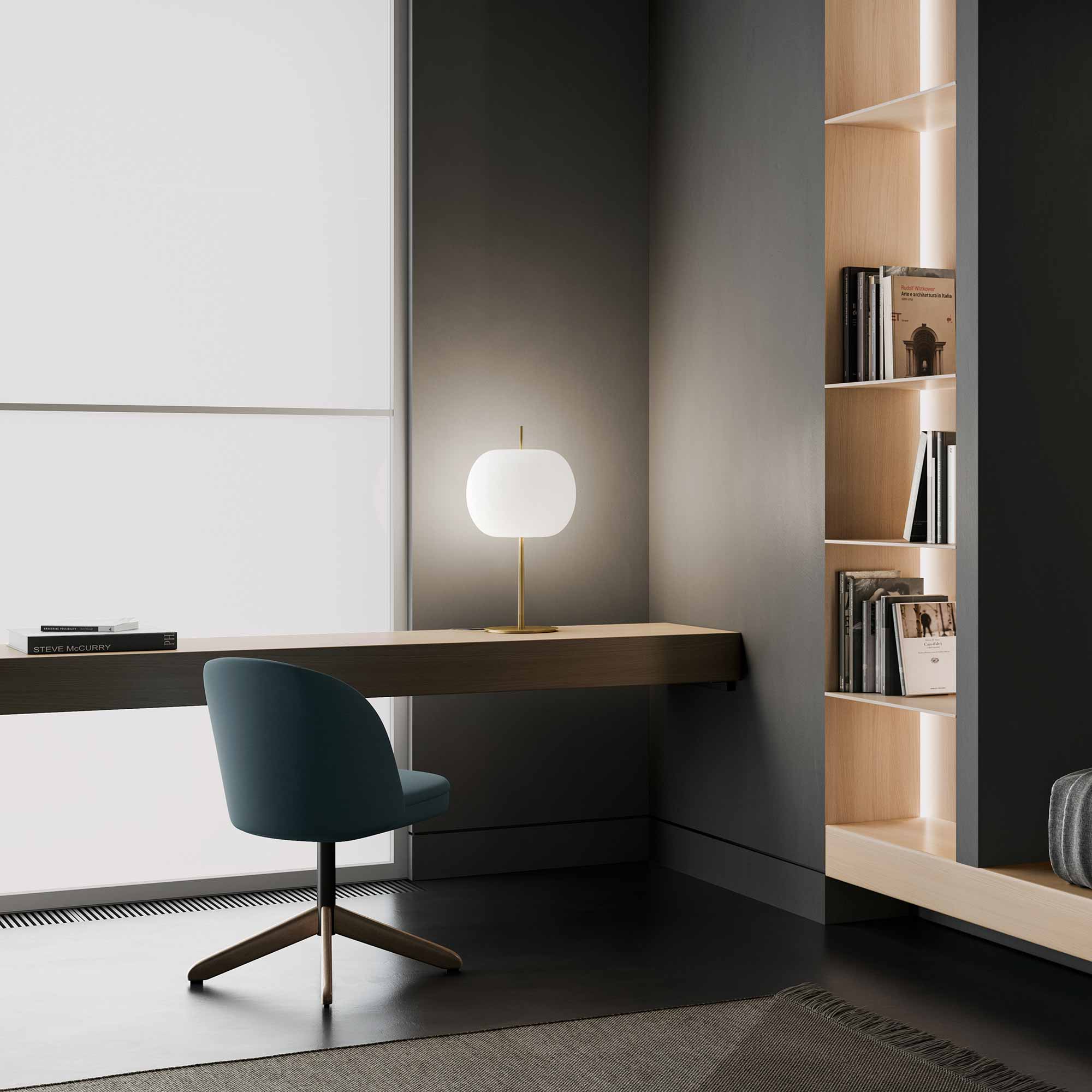 Easy, casual style embellishes a few notches when the Kushi XL Table Lamp from KDLN takes full advantage of delicate glass. This rounded lamp embraces simplicity with a jacketed opal glass diffuser is enhanced only with a linear metal stem that adds an apple-inspired motif.