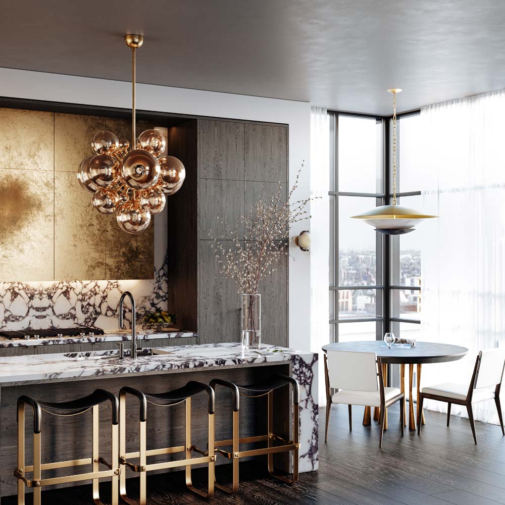 Corbett's intricate designs and hand-applied finishes set its lighting fixtures apart. Whether you choose a Corbett wall sconce or chandelier, these unexpected pieces command attention and look captivating from every angle. The City Lights team will collaborate with you to determine the best style and placement to optimize your lighting functionally and to showcase Corbett's designs in your space. | ![]() |