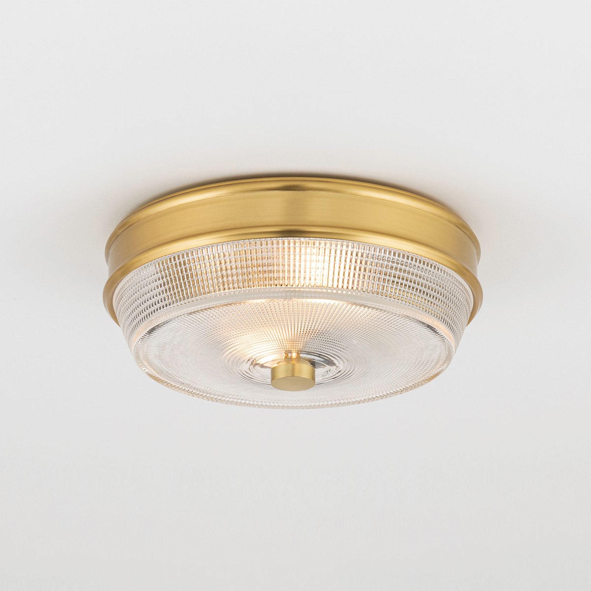 Designed with a tastefully vintage style, the Lacey Flush Mount Ceiling Light from Mitzi rests against the ceiling, scattering light elegantly across the room with its textural glass shade. Metallic accents lend an industrial flair, accented by a stout matching finial.