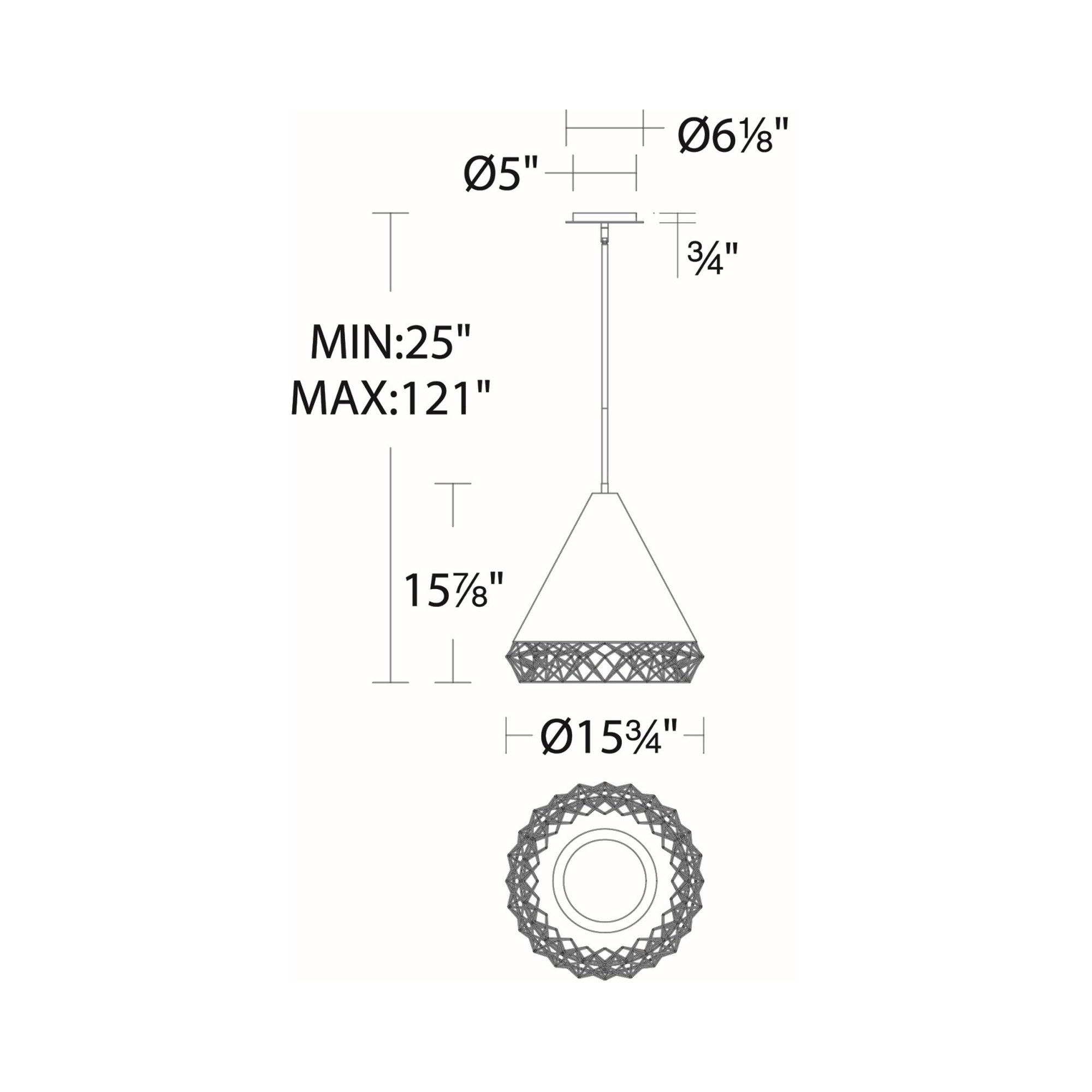 - 16-Inch: 15.75"D X 15.88"H; 121" max height