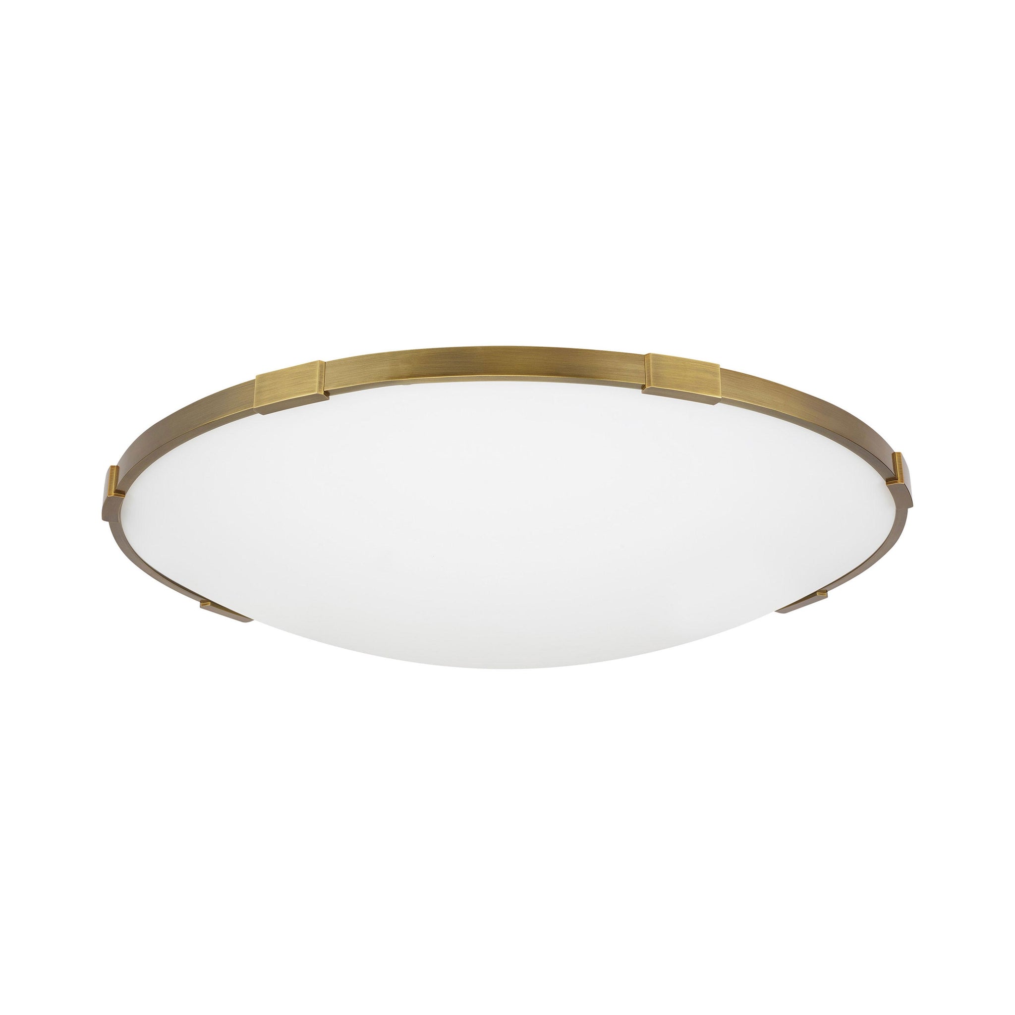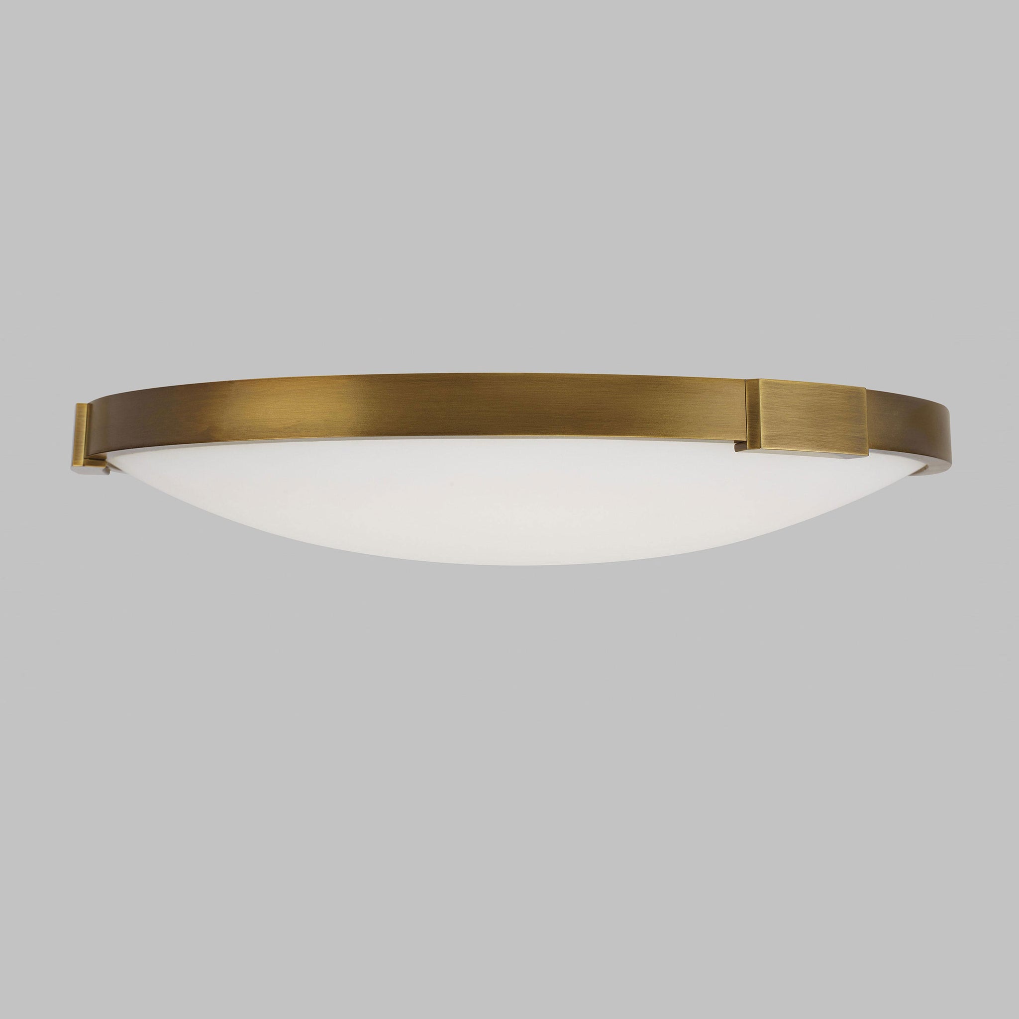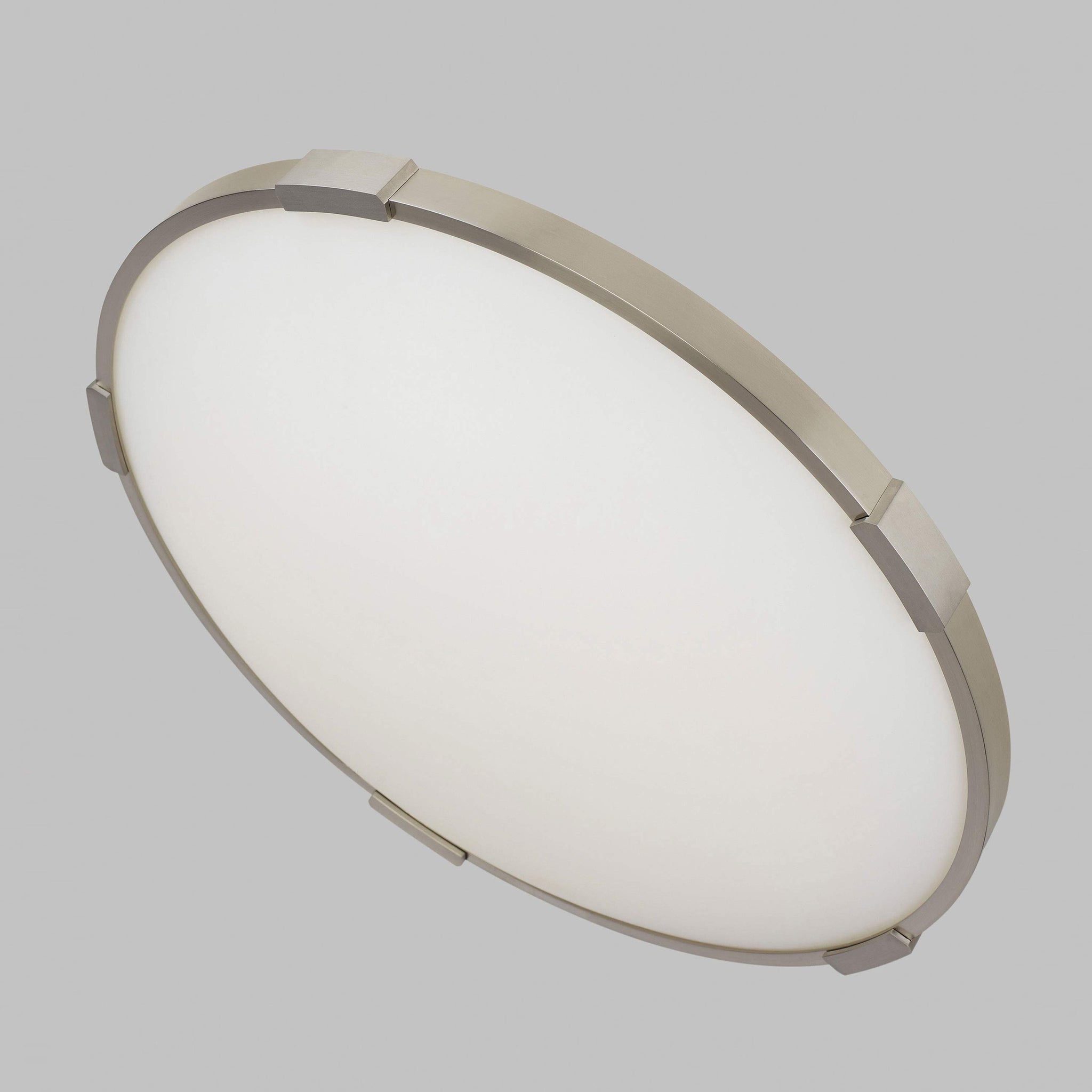 The universally appealing Lance LED Flush Mount Ceiling Light from Visual Comfort Modern exudes a warm yet contemporary style. This ceiling light fixture features a thin, direct-mount metal body in your choice of on-trend finishes such as warm aged brass, smooth satin nickel and crisp polished chrome and includes removable coordinating decorative trim accessories. These accessories attach via high-powered magnets built into the metal body at evenly spaced increments to ensure a flawlessly symmetrical appearance. A frosted glass diffuser effectively controls the highly capable LED light source within, which is fully dimmable to help you create the desired ambiance in suitable applications such as bedroom lighting, bathroom lighting, hallway lighting and foyer lighting.